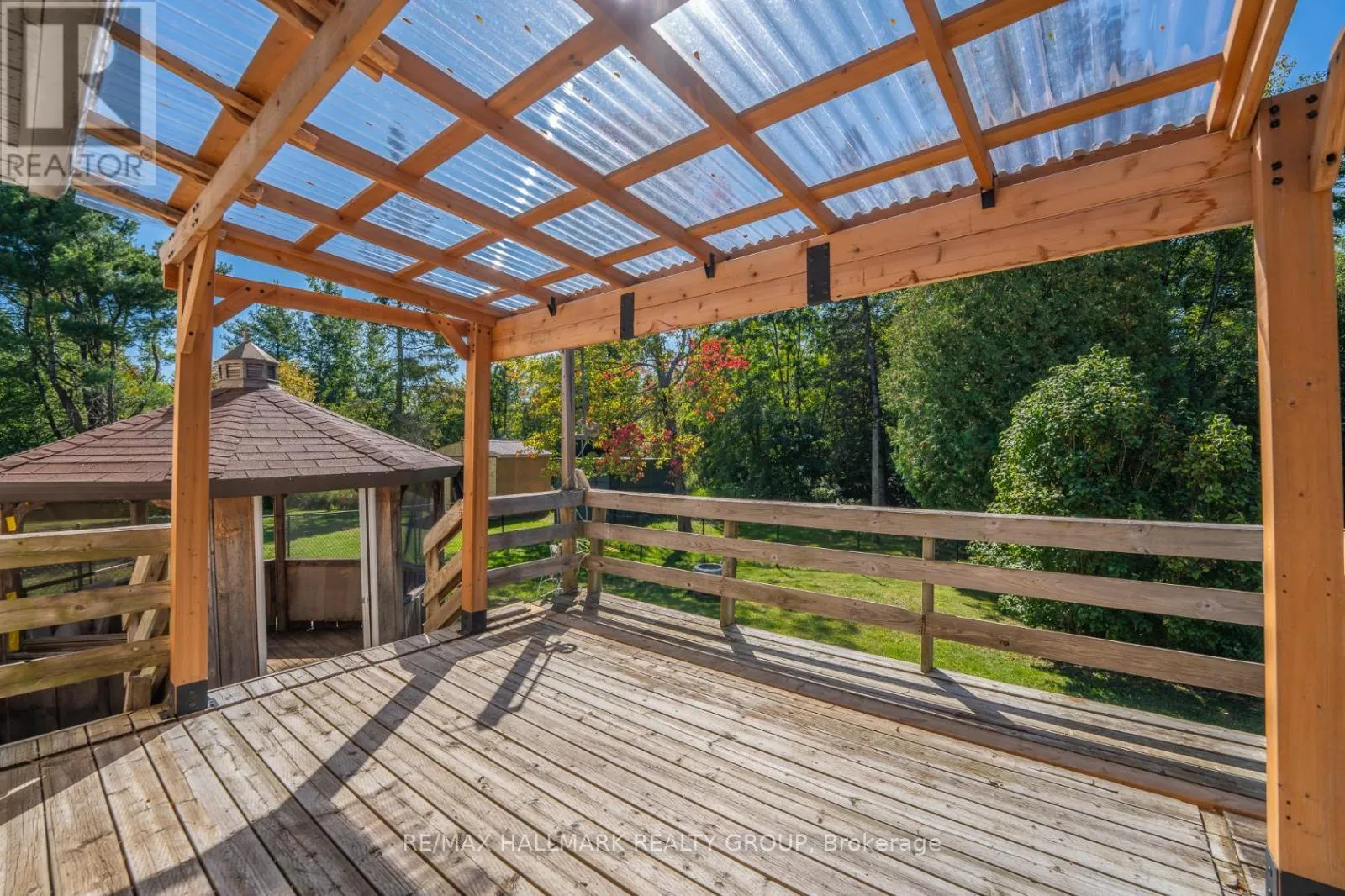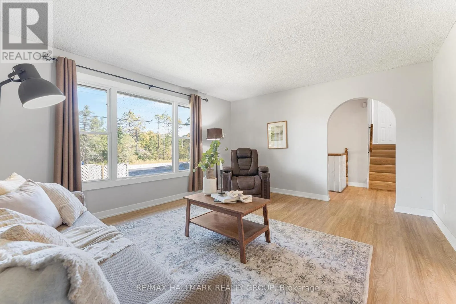 Cross Streets: Leitrim Road. ** Directions: Hwy 417 exit Anderson Road, left on Leitrim Road, right on Farmers Way. Welcome to Carlsbad Springs a family-oriented community nestled in a rural setting with urban conveniences within only 15 minutes - best of both worlds! This high-ranch style home boasts many recent upgrades, set on over half an acre and features a convenient in-law suite. Enjoy peaceful rural living and the privacy of no rear neighbours. Inside, you are welcomed by a spacious and inviting living room with large picture window, while the expansive sun-filled kitchen offers a generous dining area and beautiful views of the backyard. The upper level features three well-sized bedrooms and a renovated 4-piece bathroom. The finished lower level, brightened by the high-ranch design, features large windows, an entertainment-sized rec room with a wood-burning fireplace, a full bathroom, laundry, and plenty of storage. The versatile in-law suite provides endless possibilities - ideal for multigenerational living, hosting guests, or a private teenage retreat. The south-facing backyard surrounded by mature trees offers both beauty and function. A spacious deck with pergola and a gazebo provides spots to relax, while the fenced yard is perfect for pets. For hobbyists or those needing extra space, the oversized detached garage, hydro-connected C-can (great for a workshop, tools, or equipment), and additional reconstructed storage shed deliver plenty of options. Front roof re-shingled 2019, back roof re-shingled 2017, Windows (except in-law space) 2009. Full list of upgrades available. Enjoy the tranquility of country-style living without sacrificing convenience, only minutes to shopping, dining, and everyday amenities! (id:27476)
