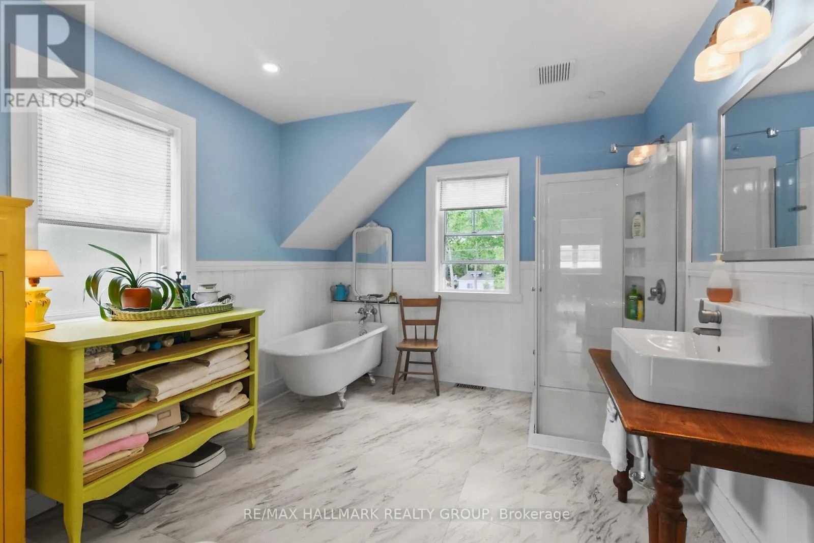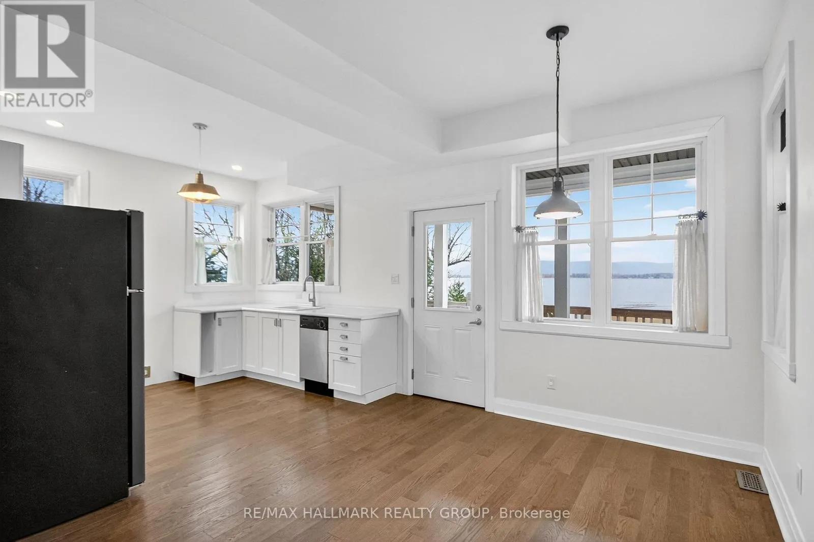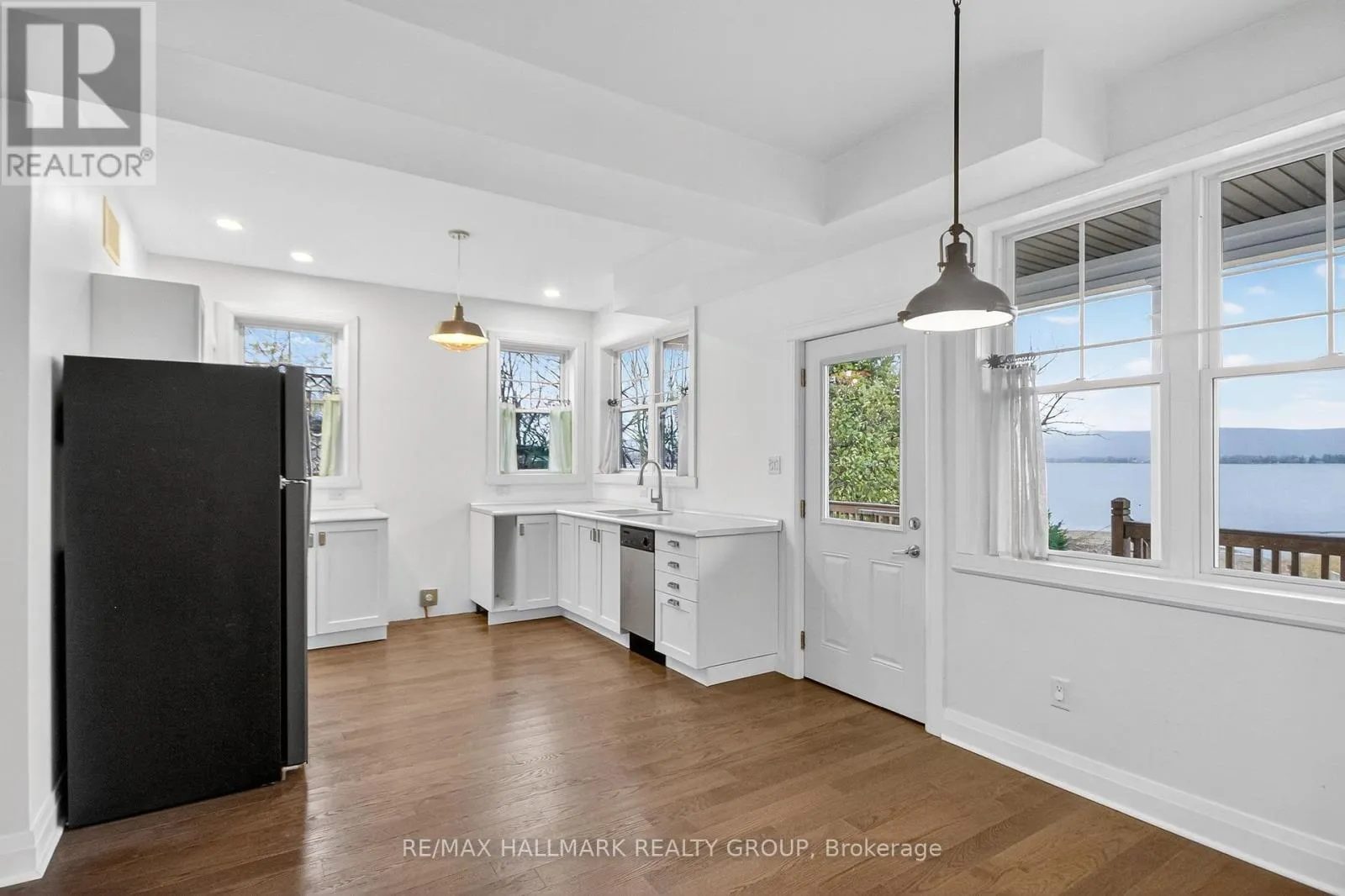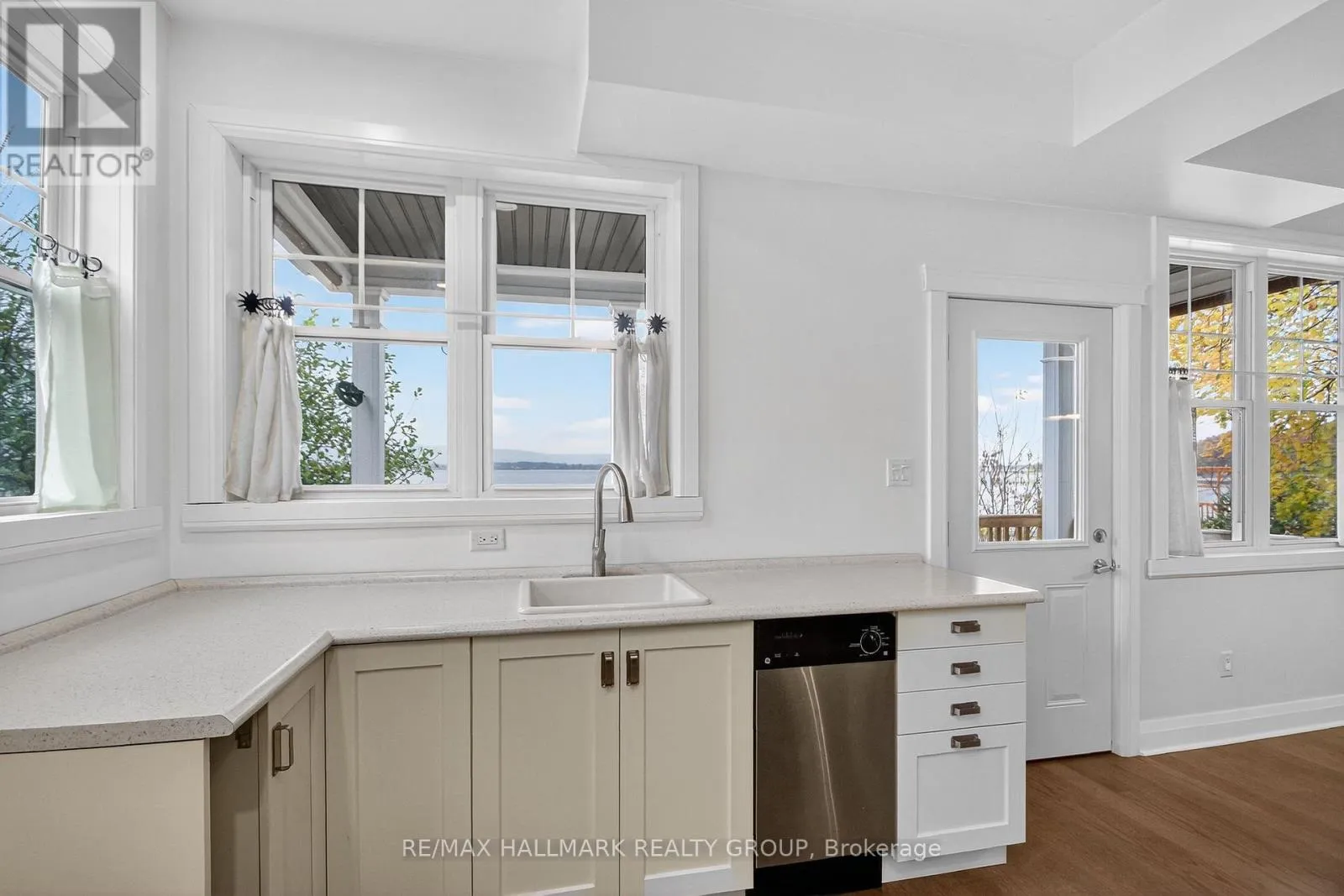 Cross Streets: Len Purcell Dr. & MacRostie Lane. ** Directions: Dunrobin to Constance Bay to Bayview. Discover the ultimate blend of comfort, charm, and waterfront living in the heart of Constance Bay, just a scenic 20-minute drive from Ottawa. Built in 2016, this charming 3-bedroom, 2-bathroom home offers 70 feet of pristine shoreline along the Ottawa River, complete with a sandy beach perfect for swimming, paddling, or simply relaxing in the sun. From your private deck, you'll take in sweeping views that change beautifully with the seasons, making every day feel like a getaway. Step inside and be greeted by a spacious foyer that opens to a sun-filled, open-concept living space where walls of windows showcase the river beyond. The new kitchen exudes warmth with hardwood floors, and a cozy breakfast nook with direct access to the deck ideal for gatherings or quiet evenings watching the sunset. The living room is anchored by a wood stove, adding character and inviting warmth. A versatile main floor bedroom, can be used as an office and flex space, plus a stylish 2-piece bathroom complete this level.Upstairs, a hardwood staircase leads to the serene primary suite, a second generously sized bedroom, and a 4-piece bathroom with a vintage clawfoot tub a perfect spot to unwind. Additional highlights include a double detached garage, generator plug-in, owned hot water tank, and an efficient Waterloo Biofilter septic system (2016). The home boasts impressively low utility costs, with natural gas averaging just $60/month thanks to the cozy wood stove. Home was not affected by 2017 & 2019 floods. (id:27476)
