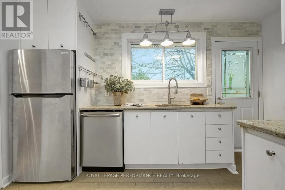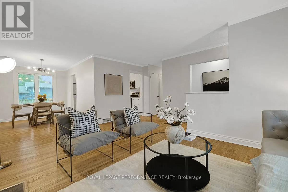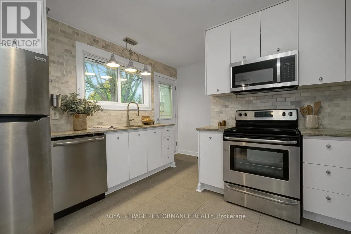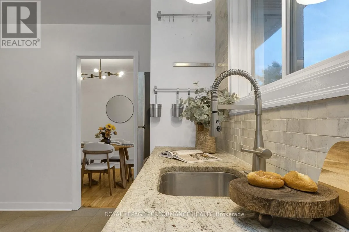 Cross Streets: Eastvale Drive & Casey Avenue. ** Directions: 417 to 174, North on Montreal Road, North on Shefford Road, West on Casey Avenue, South on Eastvale Drive. Ideally located in the highly-coveted community of Beacon Hill North on the quieter portion of Eastvale Drive, this 1147 sq.ft move-in ready 3+1bedroom/2 bath bungalow is the perfect fit for the savvy buyer who wants a turn-key detached home with a great backyard in a well-established neighbourhood with parks, community centre, and some of the best schools in the City all within walking distance. Warm and inviting stamped concrete front walkway. Bright and airy freshly painted open-concept main living area with recently sanded hardwood floors, cozy wood-burning fireplace, and large windows allowing tons of natural light. Timeless white kitchen with brand-new stainless steel appliances, granite countertops, sleek marble backsplash, and convenient pantry. Spacious primary bedroom with generously sized closet. Two additional well-proportioned bedrooms. Updated full-bath with oversized vanity and soaker tub. Convenient backdoor which leads directly to the basement where you'll find a rec-room with an industrial flare due to the exposed beams, white brick, recessed lighting and freshly painted concrete floor perfect if you like the look, or ready if you want to install your own flooring. Bonus 4th bedroom, 3-piece bathroom, and versatile den which provides extra living space. Oversized and practical utility room features laundry and tons of room for all of your storage needs. Fully-fenced backyard with deck, mature trees, natural gas line for BBQ, two storage sheds and tons of room to entertain or for the kids to play. Come see what all the fuss is about in family-friendly Beacon Hill North thanks its short commute to the downtown core, easy access to the 174, LRT station, Sensplex, Ottawa River and expansive network of bicycle paths all at your doorstep. Owned Hot Water Tank. All vinyl windows. Roof - 2011; Furnace - 2014; Wood-burning fireplace - 2015; A/C - 2024; Painted throughout - 2025; Hardwood floors resanded - 2025. Move-in and enjoy! (id:27476)