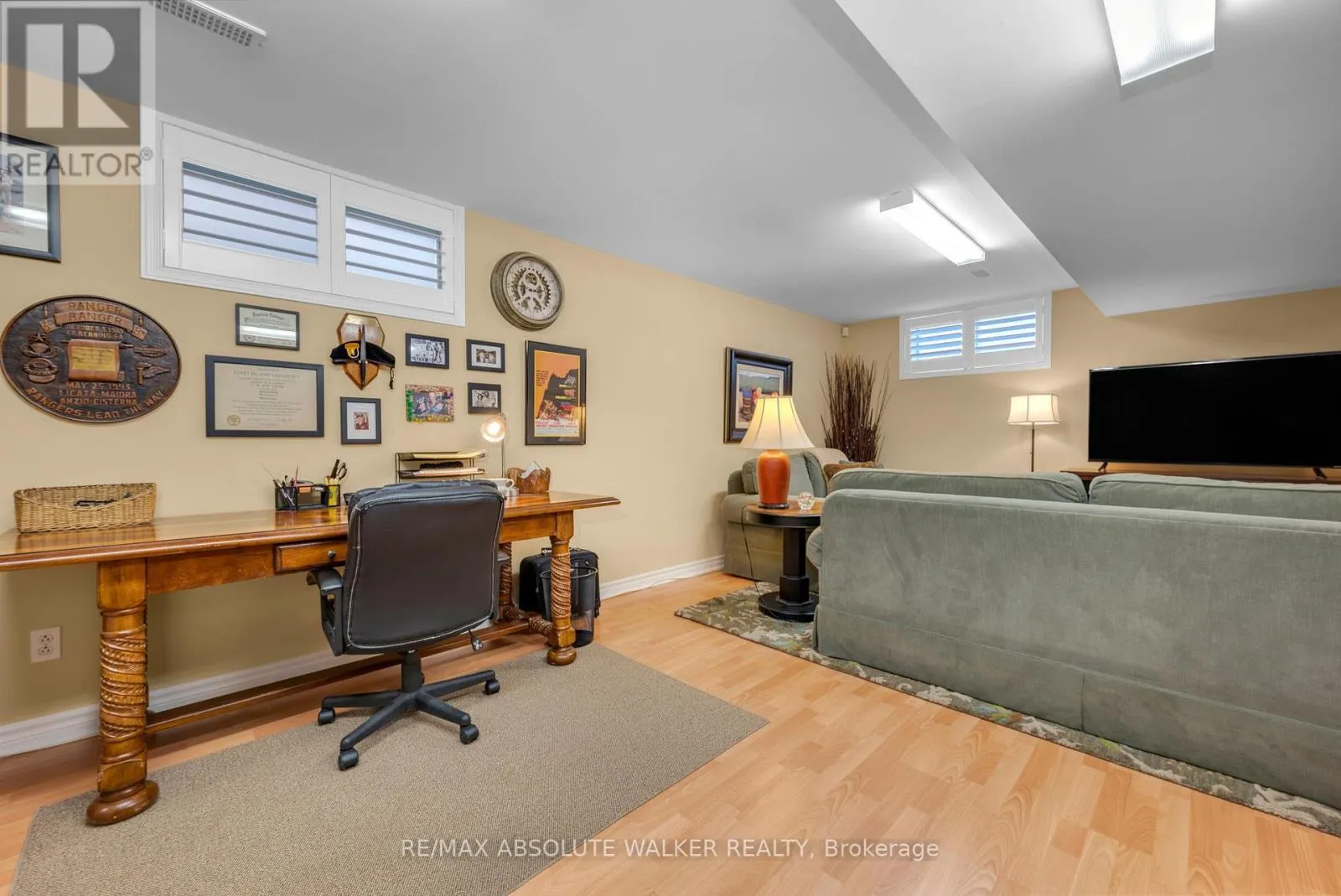 Cross Streets: Portobello. ** Directions: Innes, turn to Portobello to Scala. Welcome to 841 Scala Avenue! This beautiful bungalow, situated on a premium lot, features a rarely found double garage and exquisite mature landscaping that highlights its curb appeal. Step inside to discover approximately 1800+ sqft of living space over both level with an inviting open-concept layout, perfect for modern and functional living. The updated kitchen is a chefs dream, complete with a gas stove, a spacious center island, and plenty of counter space for meal preparation. The main level offers two bedrooms and conveniently located laundry room. You will also find elegant hardwood floors, classic crown molding, stylish designer lighting, and custom window treatments that add a touch of sophistication. Relax in the cozy living room, featuring a warm fireplace, ideal for those chilly evenings and entertaining friends and family. The fully finished lower level offers a spacious L- shaped family room which provides flexibility for an office area and relaxed tv viewing, an additional bedroom, and a full bathroom perfect for guests or a growing family. The lower level can also easily be converted for multi-generational living. Step outside to your private, fully fenced yard, complete with a charming patio and an awning that provides shade, making it an excellent spot for outdoor gatherings, barbecues, or simply enjoying a quiet morning with a cup of coffee. Premium pool-sized lot. Conveniently located near all amenities, this home provides easy access to shopping, dining, parks, and more, making it perfect for your active lifestyle. Don't miss the opportunity to make this meticulously maintained bungalow your own! This bungalow was designed to be wheelchair accessible. Recent updates include: Furnace, Air Conditioning and Roof, Gutters and covers. (id:27476)