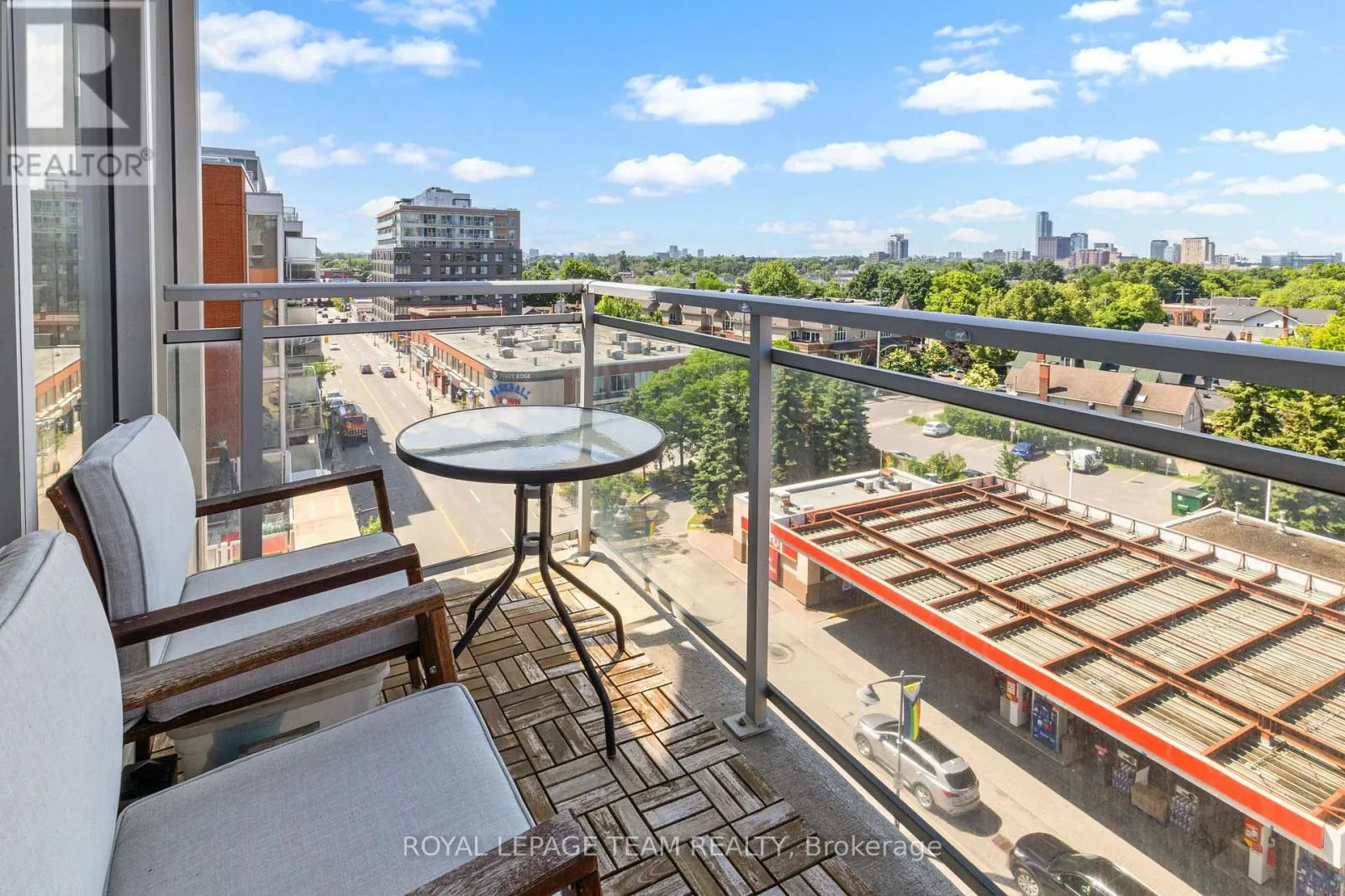 Cross Streets: Bank St and Gladstone Ave. ** Directions: Head north on Bank St and take a right onto Gladstone Ave. First time offered by the original owners! This rare Madrid layout in Central 1 offers one of the most unique and desirable floor plans in the building. This stunning 1 bed + den condo features sweeping southwest-facing views, floor-to-ceiling windows, and a sun-soaked private balcony perfect for morning coffee or evening unwind. The industrial-chic aesthetic includes exposed concrete ceilings, ductwork, and columns, paired with warm hardwood floors and sleek finishes. The modern kitchen boasts stainless steel appliances, flat-panel cabinetry, tile backsplash, and breakfast bar seating. A bright den offers ideal WFH potential, while the spacious bedroom includes generous closet space. The bathroom is fresh and contemporary with a deep soaker tub and stylish vanity. Private storage locker included and parking is available for additional price. Enjoy top-tier amenities: concierge, gym, party room, theatre, and courtyard. Exceptional value in one of Ottawas most walkable neighbourhoods. Plan to visit soon! (id:27476)
