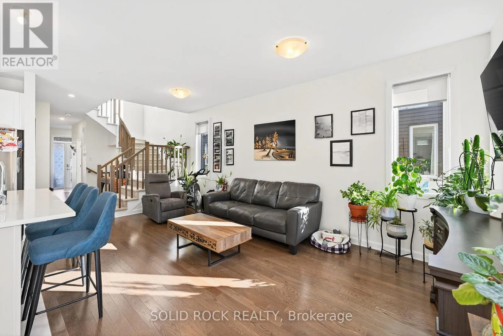 Cross Streets: Tenth Line & Wall. ** Directions: 174 East to Tenth Line, left onto Little Lk Ln Drive, Left onto Idyllic, Left onto Shallow Pond and Right onto Blossom Pass. Welcome to this stunning 2-year-old Minto Tahoe end-unit 4 bed 4 baths(2 full + 2 half) townhouse, the largest model offers 2084 sqf of finished living space, perfect for families seeking style, space, and convenience. A fully open-concept main floor with bright living and dining areas. Upstairs, there are 4 spacious bedrooms, a laundry, and 2 full bathrooms. Fully finished basement with an additional 2-piece bathroom, large window, and family room space. Upgraded quartz counter in the kitchen and bathrooms. High-end custom blinds from Blinds To Go with child-safe pull cords on every window. Gleaming hardwood floors throughout the main level. Elegant 12"x24" tiles in all wet areas for easy maintenance. The mud room is extremely useful. Backyard features a gazebo and mat, plus underneath artificial grass for a clean, low-maintenance outdoor retreat. Beautifully maintained front lawn and exterior design give this home a standout curb appeal. Just 600 meters to Lakeridge Park, where you can enjoy scenic trails and local wildlife, close to Farm Boy, Real Canadian Superstore, the François Dupuis Recreation Centre, several restaurants, cafés, and parks. It's a roughly 2-4 mins walk to Route 35 bus stop, which takes you to the LRT. Families will appreciate being within the catchment for excellent local schools, including Summerside Public School, Fallingbrook Elementary, St. Peter Catholic High School, and Sir Wilfrid Laurier Secondary School, offering both English and French programs. This luxury-sized home is IMPECCABLY MAINTAINED, and THOUGHTFULLY DESIGNED for comfortable living in a sought-after family neighborhood. Available for the end of December. (id:27476)