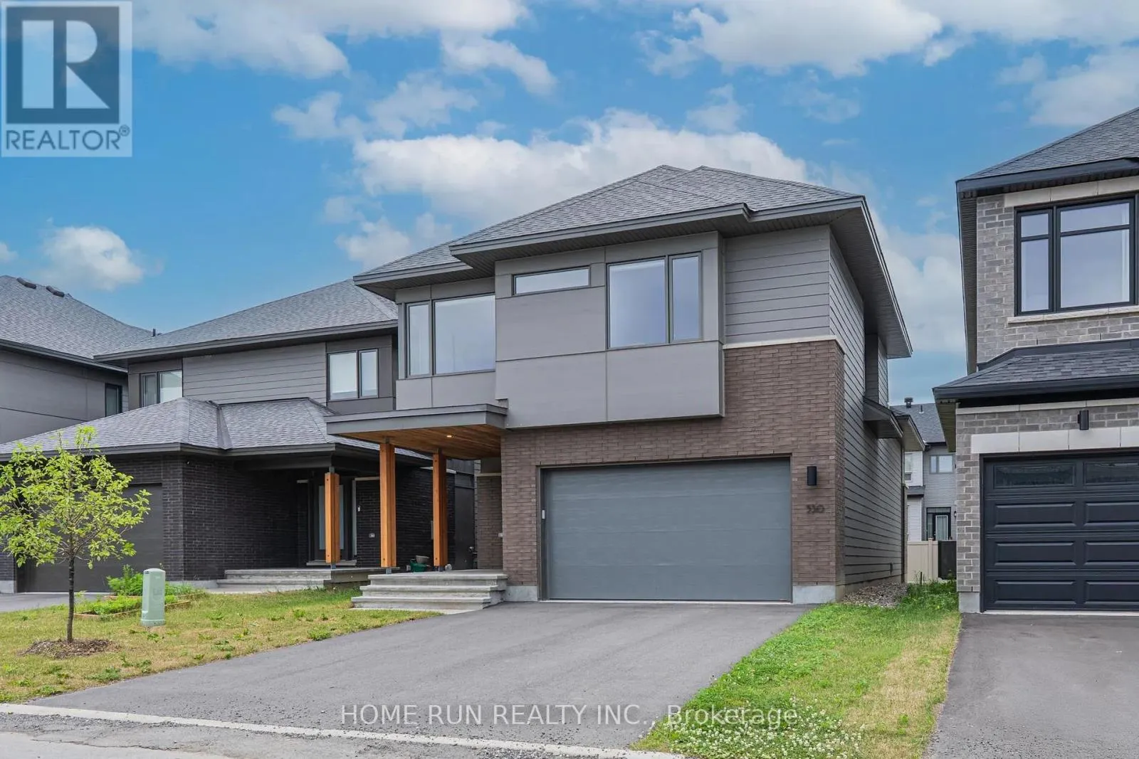 Cross Streets: Brian Good Avenue. ** Directions: Earl Armstrong to River Rd south, left onto Solarium Ave, right onto Brian Good Ave, right onto Tenor Ridge, home is on the left. Stunning HN Mayfair model in Riverside South! One-of-a-kind luxury modern single home designed by local architect Christopher Simmonds! This homes luxury quality starts right from the exterior - ft. a stunning materials palette of Hardie Siding & Brick along with HUGE windows. Step inside to find BEAUTIFUL interior features: premium floor tile, 8-ft doors w/ lever handles, and natural-tone oak HW that extends throughout the main floor & upper floor loft. The homes interior layout is SURE to impress, w/ massive open-concept living & dining spaces anchored by a central fireplace column & gas FP. The chef's kitchen includes dual tone slab cabinetry & quartz counters, SS appliances for entertaining, and great views of the backyard via the oversized windows. Step upstairs to find 3 spacious bedrooms, a main bath, oversized laundry, and MASSIVE loft overlooking the modern stairwell w/ GLASS railings. The primary includes coffered ceilings and a stunning 5-pc ensuite with dual sinks, soaker tub & walk-in shower. Downstairs, the fully-finished basement includes a full bed and bath, along with large egress windows for natural light. Fantastic location steps from amenities in Barrhaven and the Trillium Line LRT. Come see it today. (id:27476)