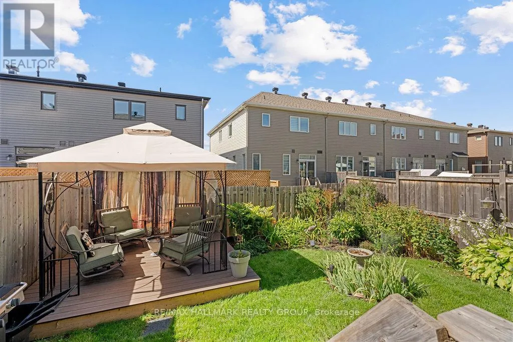 Cross Streets: Yellowcress Way & Aubépines Drive. ** Directions: From ON-417, take Innes Rd exit, turn on Innes Rd, turn right on Navan Rd, next 3 roundabouts take 2nd exit, continue onto Brian Coburn Blvd, at 4th roundabout take the 1st exit on Des Aubepines Dr, & turn left on Yellowcress Way. Property on right. Beautiful Minto END UNIT townhome with no rear neighbours! Ideally situated on a quiet street, and surrounded by parks, schools, shops, and public transit. This stylish home features an open-concept main floor with a bright and spacious living and dining area, perfect for entertaining. The modern kitchen includesstainless steel appliances, a breakfast bar, and ample counter space. Upstairs, you'll find three generous bedrooms, including a primary suite with a walk-in closet and a 3-piece ensuite complete with a glass shower. The convenient second-level laundry adds to the home's functionality.The fully finished basement provides additional living space - ideal for a family room, home office, or gym. Step outside to a beautifully landscaped backyard featuring interlock patio and a gazebo, perfect for relaxing or hosting gatherings. (id:27476)
