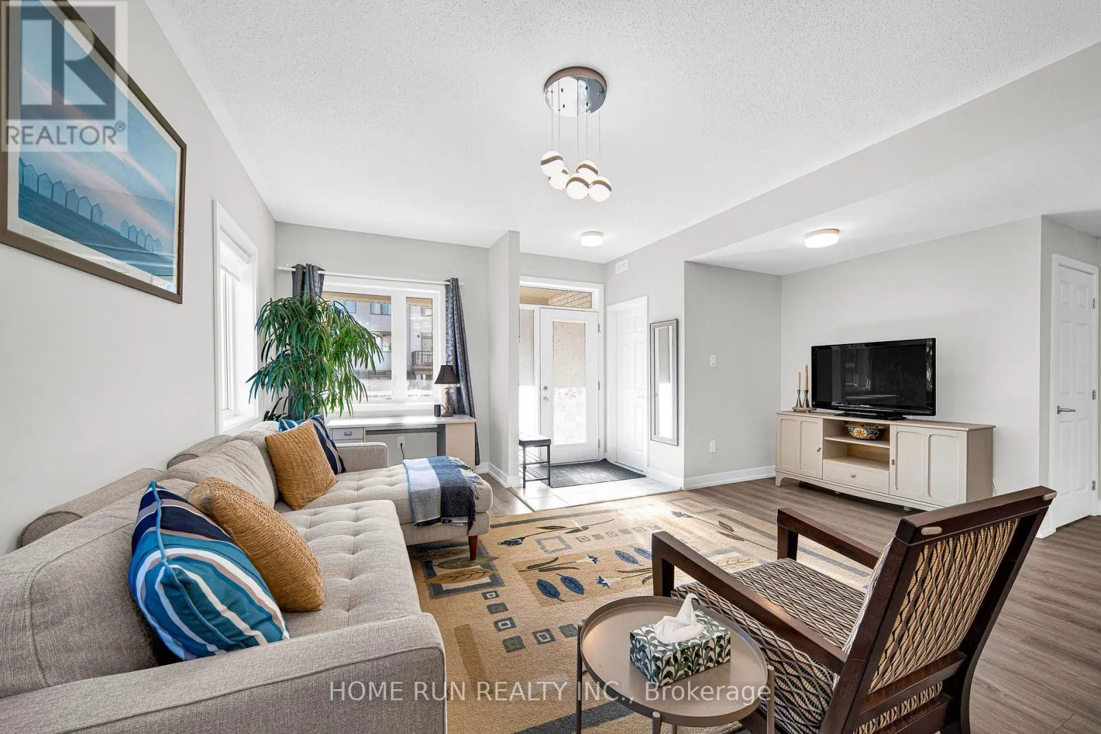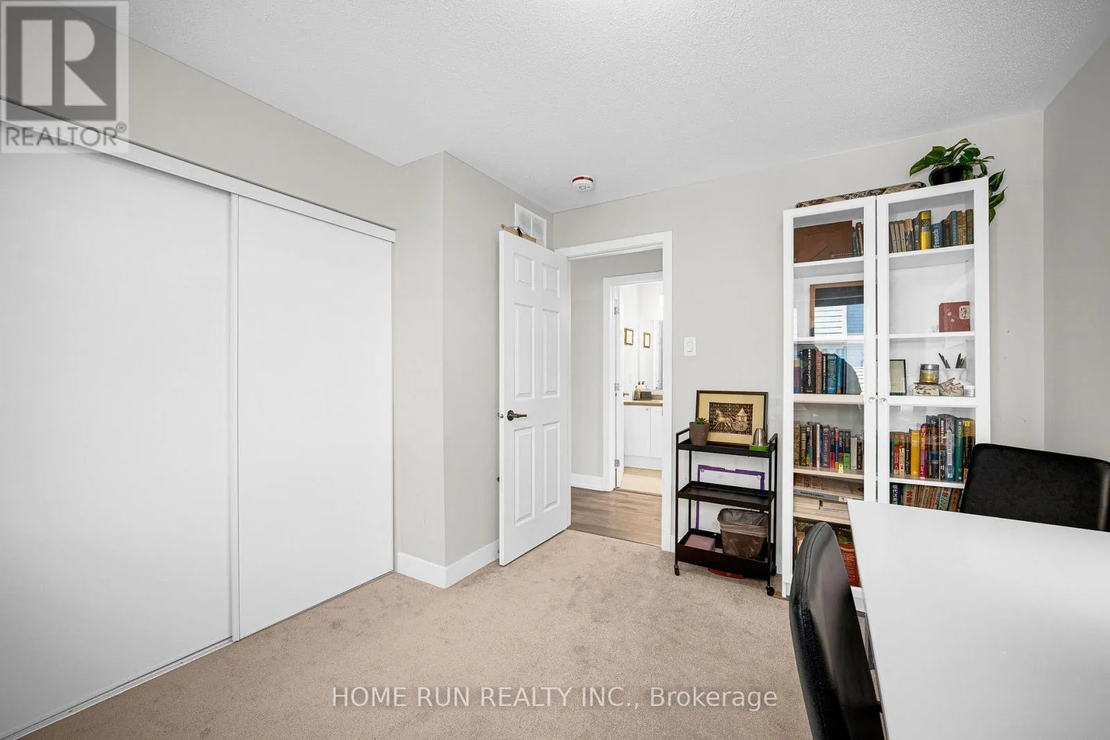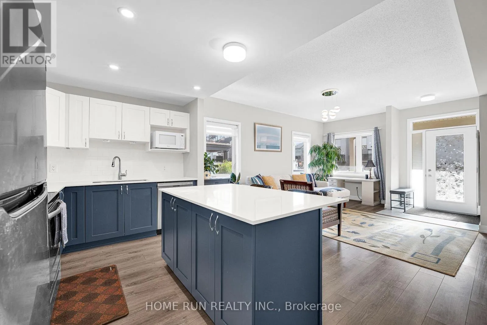 Cross Streets: Damson Gardens Grv. ** Directions: Damson Gardens Grv to CHROMITE PRIVATE. Location, location, location! This like-new end-unit stacked townhouse (Poppy model) offers over 1,800 sq.ft. of beautifully finished living space and is truly move-in ready. The main level features a bright open-concept layout with 9 ft ceilings, a spacious living and dining area, a versatile den, two bedrooms, and a full bathroom. The modern L-shaped kitchen showcases upgraded quartz countertops, stainless steel appliances, stylish cabinetry, and an island with a breakfast bar.The primary bedroom includes both his and her closets and provides potential for an ensuite conversion. The second bedroom is bright and airy with plenty of natural light. The fully finished lower level adds exceptional living space with large windows, a generous recreation room, a full bathroom with walk-in shower, and a third bedroom-ideal for guests, a home office, or additional family space.Additional features include in-unit laundry on the main level, ample storage, upgraded flooring throughout, and designated parking (Space #22). Conveniently located just minutes from schools, parks, transit, shopping, and everyday amenities. Perfect for young professionals, small families, or first-time home buyers. (id:27476)