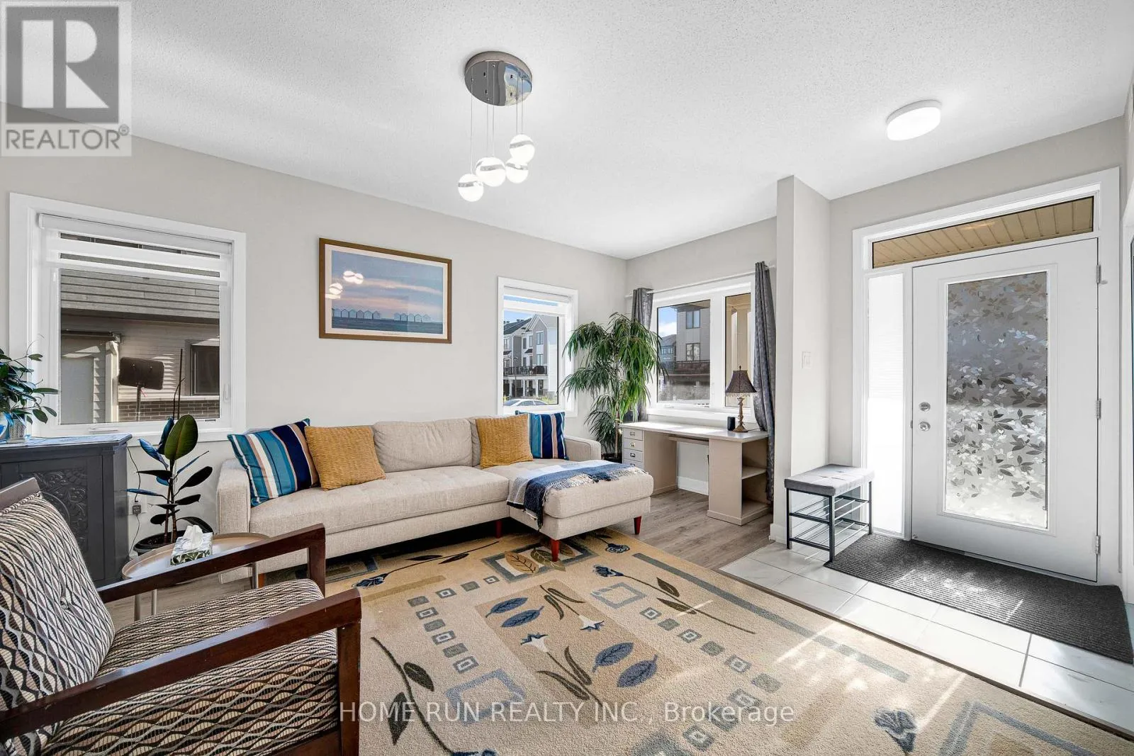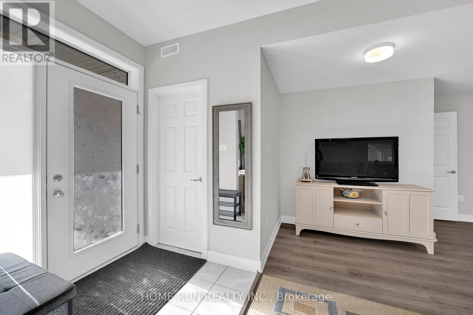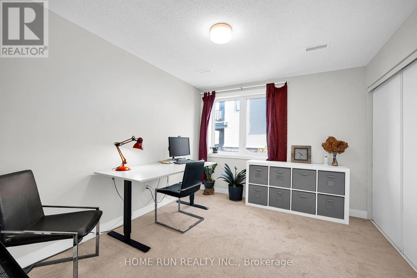 Cross Streets: Damson Gardens Grv. ** Directions: Damson Gardens Grv to CHROMITE PRIVATE. Location, location, location! This like-new end-unit stacked townhouse (Poppy model) offers over 1,800 sq.ft. of beautifully finished living space and is truly move-in ready. The main level features a bright open-concept layout with 9 ft ceilings, a spacious living and dining area, a versatile den, two bedrooms, and a full bathroom. The modern L-shaped kitchen showcases upgraded quartz countertops, stainless steel appliances, stylish cabinetry, and an island with a breakfast bar.The primary bedroom includes both his and her closets and provides potential for an ensuite conversion. The second bedroom is bright and airy with plenty of natural light. The fully finished lower level adds exceptional living space with large windows, a generous recreation room, a full bathroom with walk-in shower, and a third bedroom-ideal for guests, a home office, or additional family space.Additional features include in-unit laundry on the main level, ample storage, upgraded flooring throughout, and designated parking (Space #22). Conveniently located just minutes from schools, parks, transit, shopping, and everyday amenities. Perfect for young professionals, small families, or first-time home buyers. (id:27476)