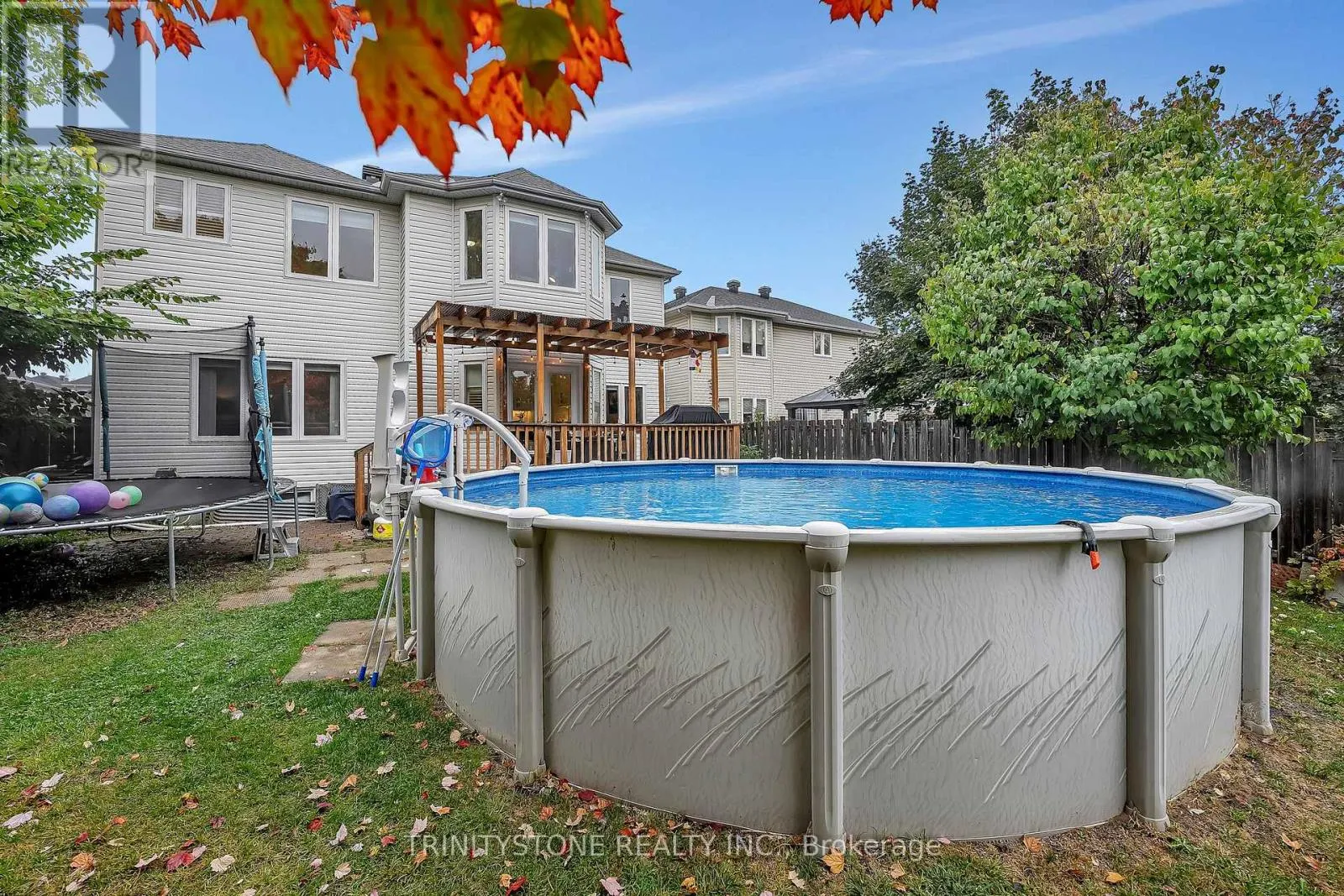 Cross Streets: Granite Ridge Dr/Feldspar Cres/Cinnarbar Way. ** Directions: From Stittsville Main St, Turn left onto Abbott St E turn left onto Granite Ridge Dr, Right onto Cinnabar Way, home will be on the right. **OPEN HOUSE: SUNDAY, NOVEMBER 16TH 2-4PM** Welcome to 6 Cinnabar Way located in the neighborhood of Granite Ridge, Stittsville. This updated 4-bedroom, 4-bath home family home with no rear neighbors is conveniently located within walking distance of several schools, the Cardel Rec Center, as well as many other amenities. On the bright main level you will enter to a large inviting foyer leading to a hardwood circular staircase, a separate living-dining room, a huge, recently updated open kitchen with eat in area, quartz counters, and walk-in pantry, as well as a large family room with gas fireplace, all overlooking the private, treed yard with above ground pool. There is hardwood and ceramic flooring throughout the main level, as well as a large mudroom with laundry area. The second floor, with hardwood and laminate flooring, has 4 bedrooms that are all a great size, with large windows letting in ample natural light, 4 pc main bathroom. The oversized primary bedroom has a separate sitting area, an updated 3-pc ensuite and walk-in closest. The lower level is fully finished with a huge rec room, a 3-pc bathroom, and two other rooms. Off the eating area, you will find a large deck with pergola, overlooking the private fully fenced yard with above ground pool. Recent upgrades: 2024: Full kitchen reno; 2023: Ensuite bathroom reno, pool heater, pool liner, pool filter; 2022: Garage door, Pergola. New pantry, Whole house painted, Laminate flooring in bedrooms; 2021 Roof, Deck, Patio door (id:27476)