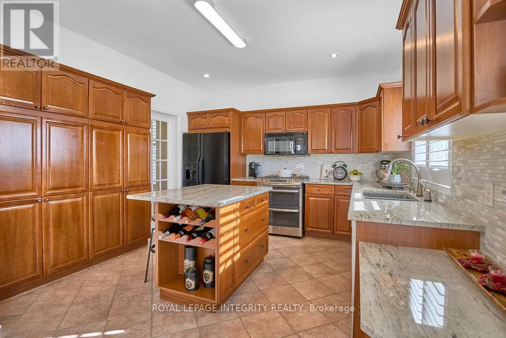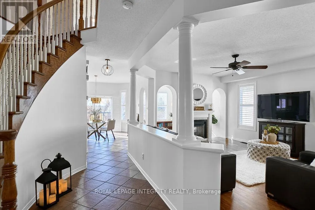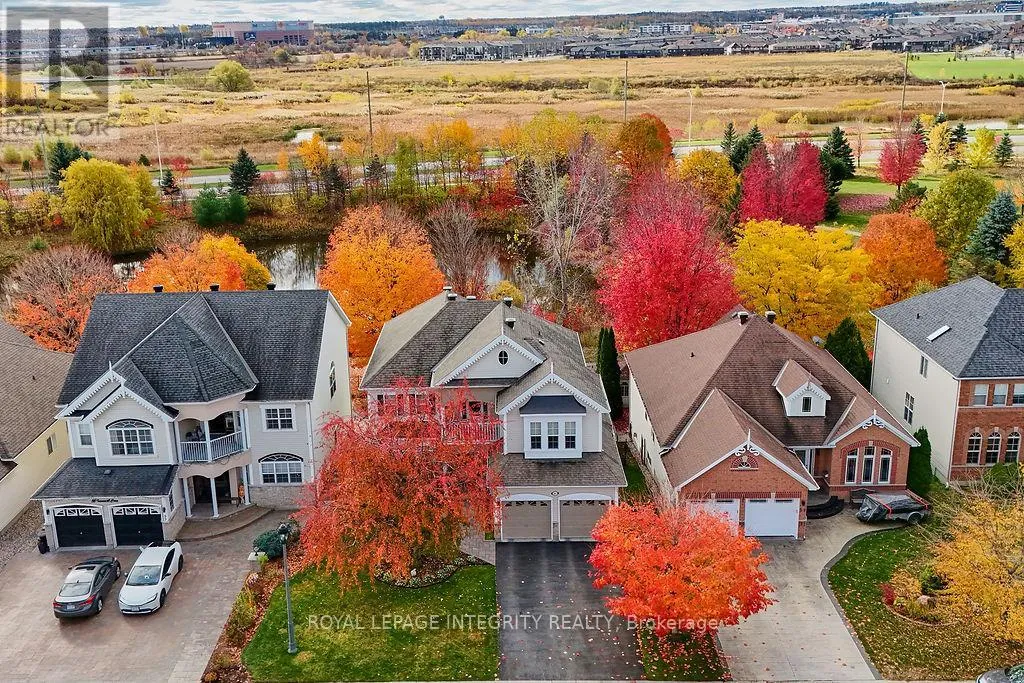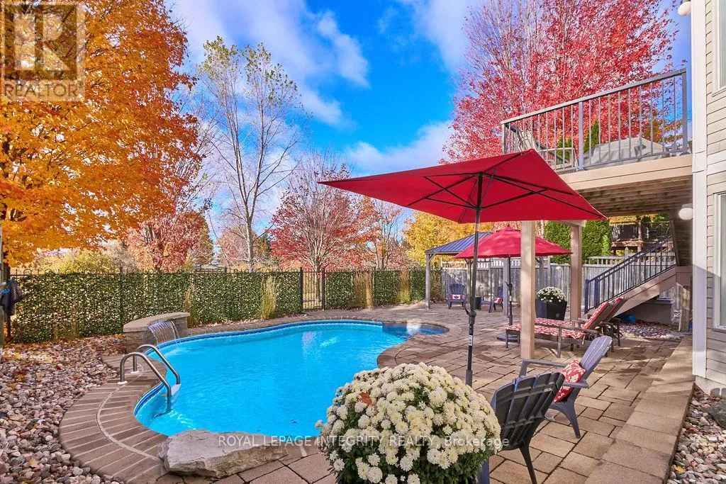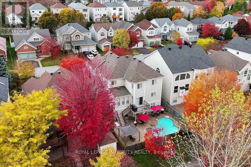Kanata Ave to Goldridge Dr to Insmill This executive home, nestled in coveted Kanata Lakes, boasts over 4,000 sqft of gorgeous living space, with a fully finished Walk-Out Bsmt opening to Insmill Park. NO REAR NEIGHBOR! The interlocked corridor leads you into the foyer, the airy 9' ceilings grace the main level w/open living & dining rooms featuring crown moldings and a dazzling chandelier. The family room beckons w/a double-sided gas fireplace casting an inviting glow; it flows effortlessly into the solarium w/breathtaking park & pond views, where you can read or savor tea as sunlight streams in. The Chef's Kitchen boasts granite countertops, high-end appliances, a central island with a wine rack, a full-wall pantry and a sun-drenched nook with accesses to the deck overlooking delight Park views year-round. A graceful, curving hardwood staircase leads you to the upper level with 4 generously sized bdrms. The vast LOFT, a true enchanting space to unwind, with French doors to the front balcony overlooking a stunning Ornamental Crabapple tree that bursts with pink blossoms and turns to cheerful red berries! The luxurious primary suite boasts a serene sitting area and double closets, a lavish 5-pc ensuite w Jacuzzi tub, shower, and dual vanities with quartz counters and blissful lighting. The main bath offers a private water closet, an extended double vanity with a quartz countertop. The walk-out bsmt offers a Home Theater, Exercise Room, Stone Faced Gas Fireplace and a 2pc powder-room. Step out to the fully fenced Southern yard w rear gate, expensive patio, gazebo and a Heated In-Ground Saltwater Pool with a mesmerizing Waterfall - a perfect spot to host your favorite people! This charming home, cherished by its original owners, within the boundaries of top-tier schools, makes it an optimal destination for growing families. A leisurely stroll along the rear path will take you to nearby cafes and shops. Welcome to this dream home --a place where life unfolds with effortless grace and endless joy. (id:27476)