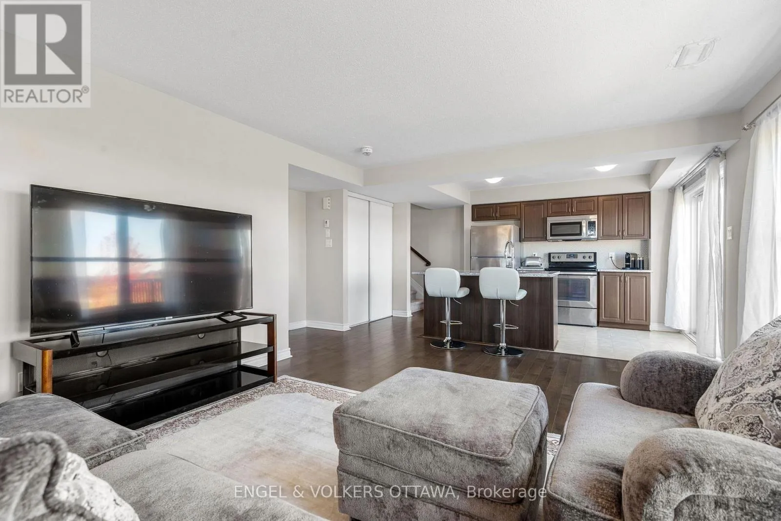 Cross Streets: Decoeur Dr. & Magnolia St. ** Directions: From Tenth Line Rd, turn onto Decoeur Dr. and then Magnolia St. Located in the heart of Avalon, this upper-level stacked condo is a bright and quiet unit, spread across two levels and overlooking Henri-Rocque Park. The main level showcases an airy layout filled with natural light from large windows, complemented by warm hardwood flooring and a soft neutral palette. The spacious living and dining area flow effortlessly into the modern kitchen, which features counter space, stainless steel appliances, and a central island with bar seating. Sliding patio doors open to a private balcony, providing the perfect spot to enjoy evening sunsets or morning coffees. A convenient powder room completes this level. Upstairs, two generously sized bedrooms feature soft carpeting, large windows, and ample closet space. The full bathroom boasts a tiled tub/shower combination, a rich wood vanity, and plenty of counter space for everyday convenience. A laundry closet located just outside the bedrooms ensures you'll never need to carry laundry up or down the stairs again! Located in a vibrant, family-oriented neighbourhood, this property is surrounded by scenic green spaces, walking paths, and parks, creating an inviting environment for professionals and young families. The nearby schools, public transit, shopping centres, cafés, and restaurants make for a convenient and enjoyable place to live for those looking to buy their first property! (id:27476)