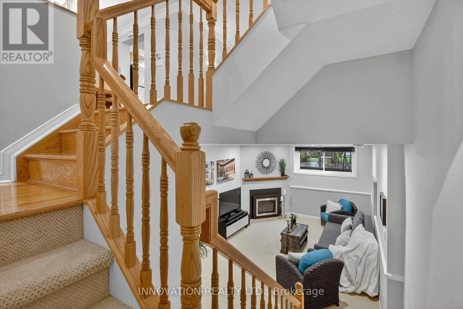 Cross Streets: Grandcourt & Stonebriar. ** Directions: Centerpointe Dr to Grandcourt Dr to Winterburn TerCenterpointe Dr to Grandcourt Dr to Winterburn Ter. Welcome to this beautifully maintained home in the heart of Centrepointe! Nestled on a quiet street, this bright and spacious 3-bdrm, 3-bath with gleaming hardwood floors on the main & second level, berber carpets stairs & lower level. Neutral colours throughout. The kitchen offers solid oak cabinets in excellent condition, ample storage & counter space, and an eating area with patio doors leading to a private deck and patio-perfect for entertaining. The large primary bedroom includes a walk-in & 5-piece ensuite, with a soaker jet tub + stand-up shower. Two additional bdrms are generously sized. Cozy lower-level family rm featuring a gas fireplace & large window, laundry and ample storage. Enjoy a peaceful yard, no rear neighbours, natural gas BBQ hookup. Furnace & A/C (2022). Condo fees cover exterior maintenance, windows, doors, roofs, driveways, snow removal, and lawn care-ideal for low-maintenance living year-round. All pets welcome. You will love this home, the prime location and what it has to offer: steps to parks, schools, restaurants, shopping, College Square, LRT, Algonquin College, Meridian Theatres, and scenic running/walking paths. Don't miss this gem-it has everything you're looking for in sought-after Centrepointe! (id:27476)