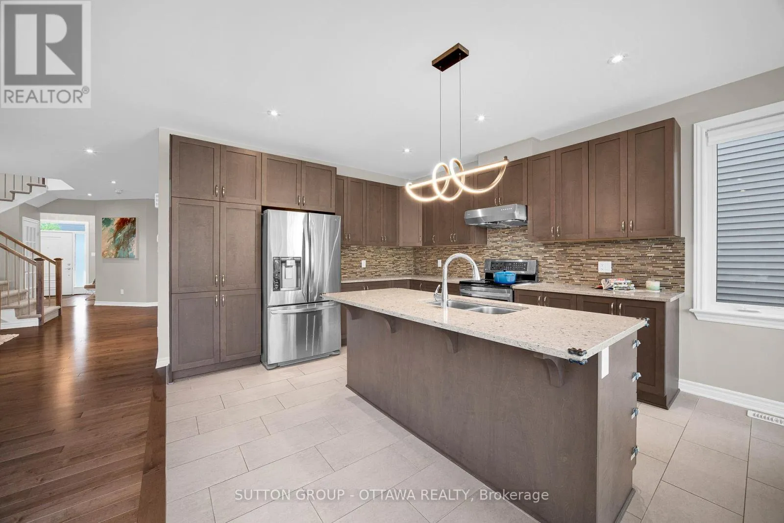 Cross Streets: Cobble Hill Dr to Odessa Way. ** Directions: Strandherd Dr turn onto Fallowfield Dr, turn onto Coble Hill Dr, turn onto Odessa Way, on your right side. Welcome to 412 Odessa Way, a stunning 100 PRECENT ENERGY STAR CERTIFIED TARTAN ASHTON model with over 3000 SQ FT of living space, featuring 5 BEDROOMS, 4 BATHROOMS, plus a MAIN FLOOR DEN. From the widened INTERLOCK PATHWAY out front to the FULLY FENCED, SOUTH-FACING BACKYARD with INTERLOCK PATIO, this home is both inviting and low-maintenance. Inside, you'll love the soaring 9-FOOT CEILINGS, HARDWOOD FLOORS, and LIGHT CERAMIC TILES that create a CLEAN, CRISP feel throughout. The MAIN FLOOR DEN with FRENCH DOORS offers privacy, while the OPEN-CONCEPT layout flows beautifully with a FORMAL DINING ROOM, a MASSIVE FAMILY ROOM, and a CHEFS KITCHEN complete with BREAKFAST AREA. Thoughtful touches like the CATHEDRAL CEILING and ENLARGED PATIO DOORS flood the kitchen and breakfast nook with natural light and frame perfect views of the SOUTH-FACING BACKYARD. The OVERSIZED mudroom with built-ins keeps everything neat and organized. Upstairs, the PRIMARY SUITE is a showstopper with a SUN-FILLED BEDROOM, WALK-IN CLOSET, and a LUXURY ENSUITE with SOAKER TUB and GLASS SHOWER. This level also includes a 5-PIECE main bath, SECOND-FLOOR LAUNDRY, and 3 generous sized bedrooms. The FULLY FINISHED BASEMENT adds a 5TH BEDROOM, 4TH BATHROOM, and a HUGE REC ROOM perfect for a GYM, PLAYROOM, or HOME THEATER. All of this in the heart of Barrhaven, just minutes to HWY 416, COSTCO PLAZA, and walking distance to SCHOOLS, PARKS, and SHOPPING! (id:27476)