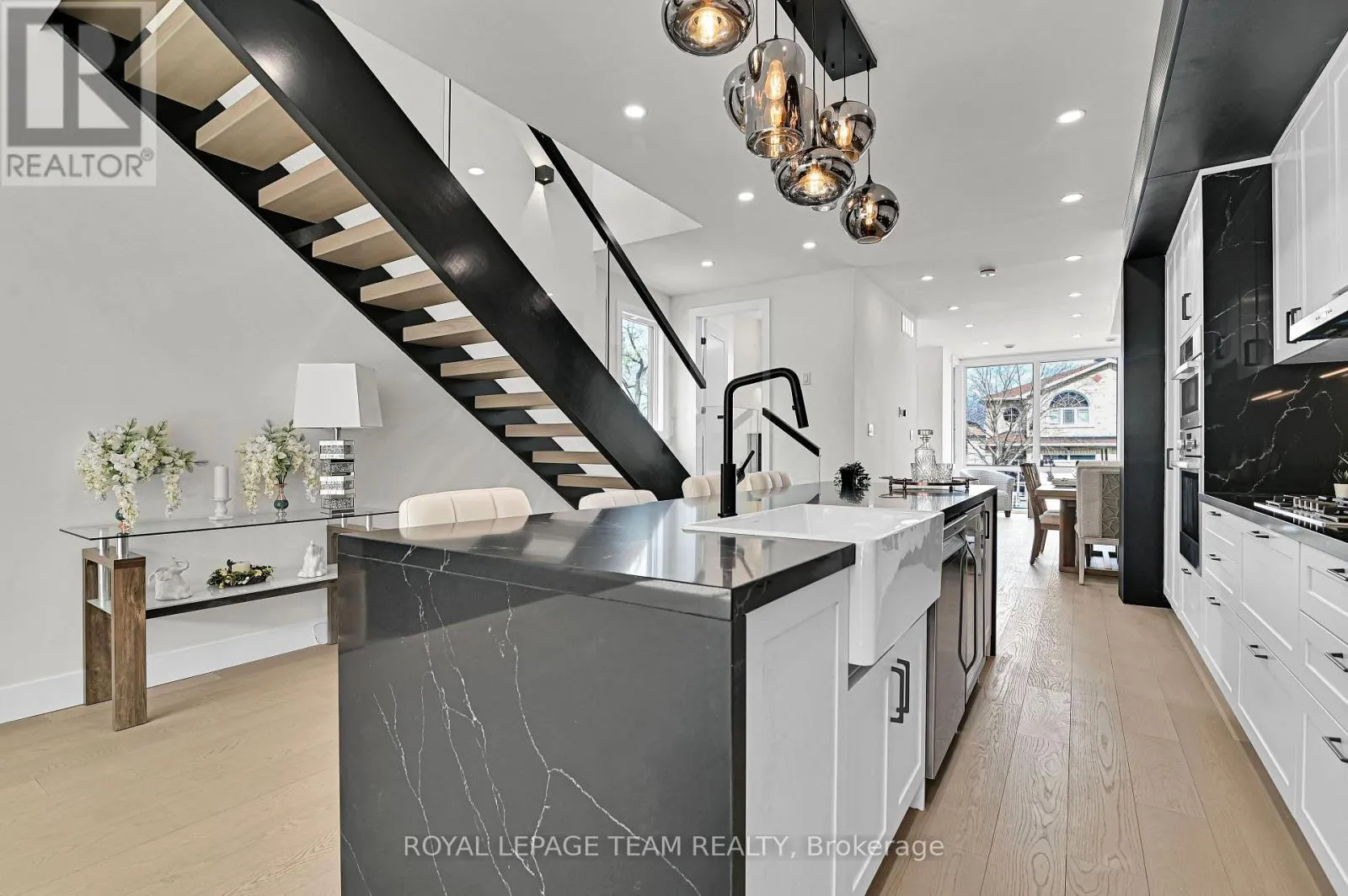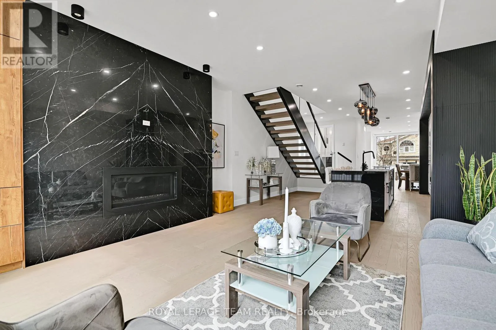 Cross Streets: Carling Ave and Richmond road. ** Directions: Carling Ave (West to East): Turn south onto Alpine. The property will be on the right. Motivated Seller - Priced Below Appraised Value! Brand-new semi-detached home with a modern design and a high-ceiling, legal 1-bedroom basement suite - ideal for rental income or extended family. Every detail is custom-built with quality and style in mind. Step through the impressive 8-ft slab entry door into a bright, open-concept living and dining area featuring soaring 10-ft ceilings, elegant lighting, and floor-to-ceiling Energy Star-rated windows. Enjoy 6" engineered hardwood flooring throughout the main and upper levels. The custom-designed kitchen is a showstopper, offering high-end appliances, built-in oven, beverage fridge, farmhouse ceramic sink, sleek cabinetry, and a hidden waste bin - where function meets luxury. The cozy family room features a natural stone, book-matched fireplace and a built-in bar closet with space-saving pocket doors. A wide patio door seamlessly connects the main floor to the backyard, perfect for entertaining or relaxing outdoors. Upstairs, you'll find three bedrooms, three modern bathrooms with smart mirrors, built-in closet drawers in every room, and a convenient second-floor laundry. The basement suite is thoughtfully designed with high ceilings, privacy, and enhanced soundproofing for comfort and energy efficiency. Situated in a vibrant, sought-after neighborhood, this prime location is just minutes to IKEA, Hwy 417, Bayshore Mall, and the future LRT hub. Enjoy easy access to parks, the beach, and public transit - offering the best of city living. The proposed listing price is below the builder's investment in high-end finishes, making this an incredible opportunity. Don't miss your chance to own a home that blends luxury, style, and income potential. Book your private showing today! (id:27476)