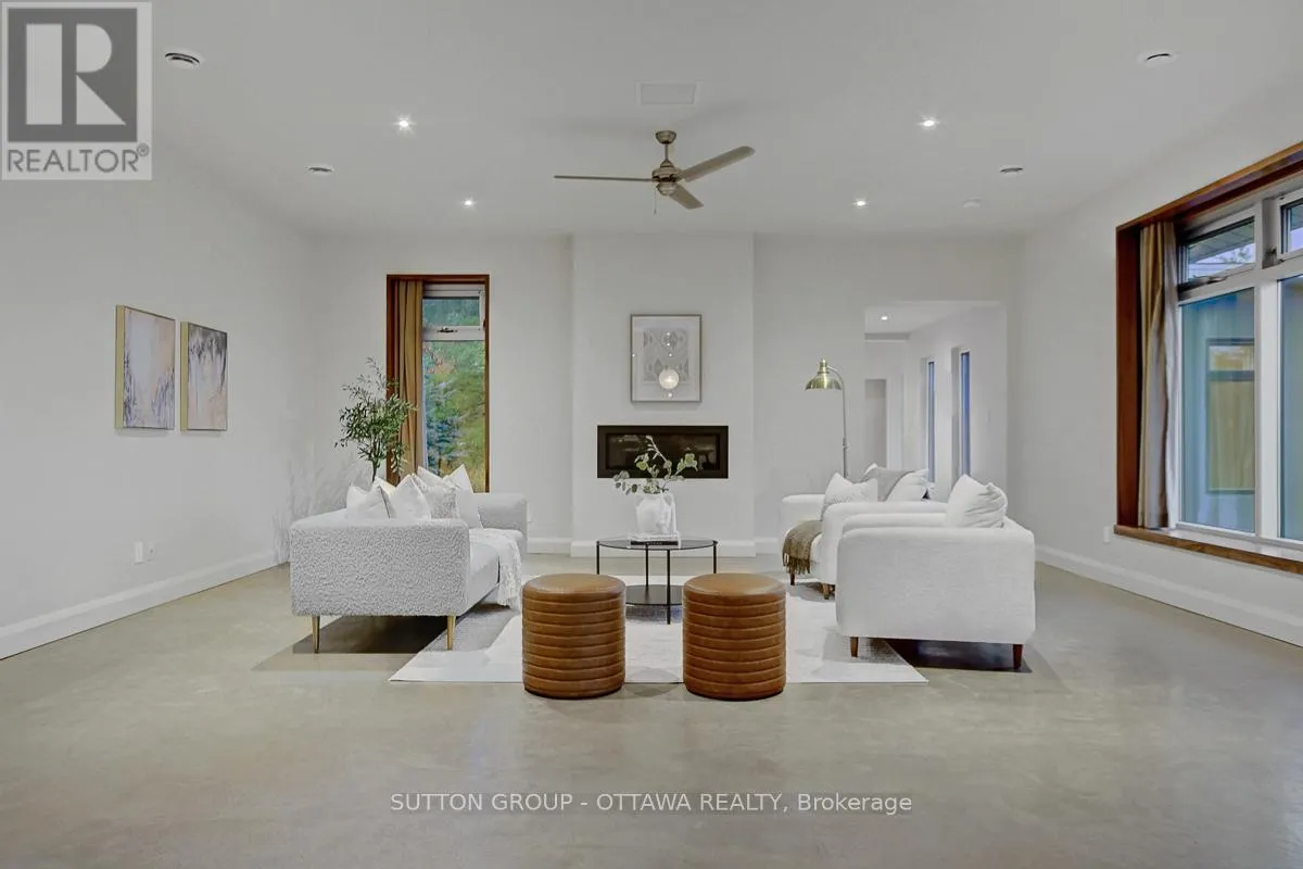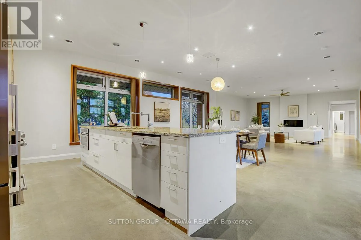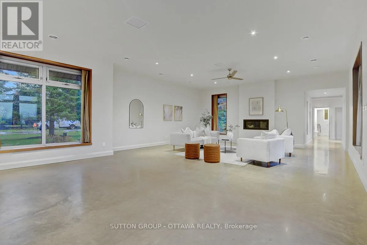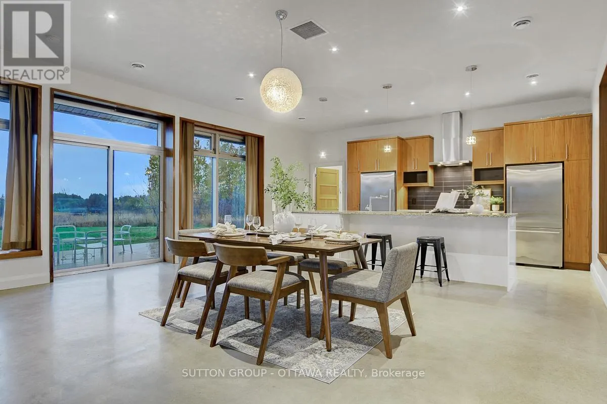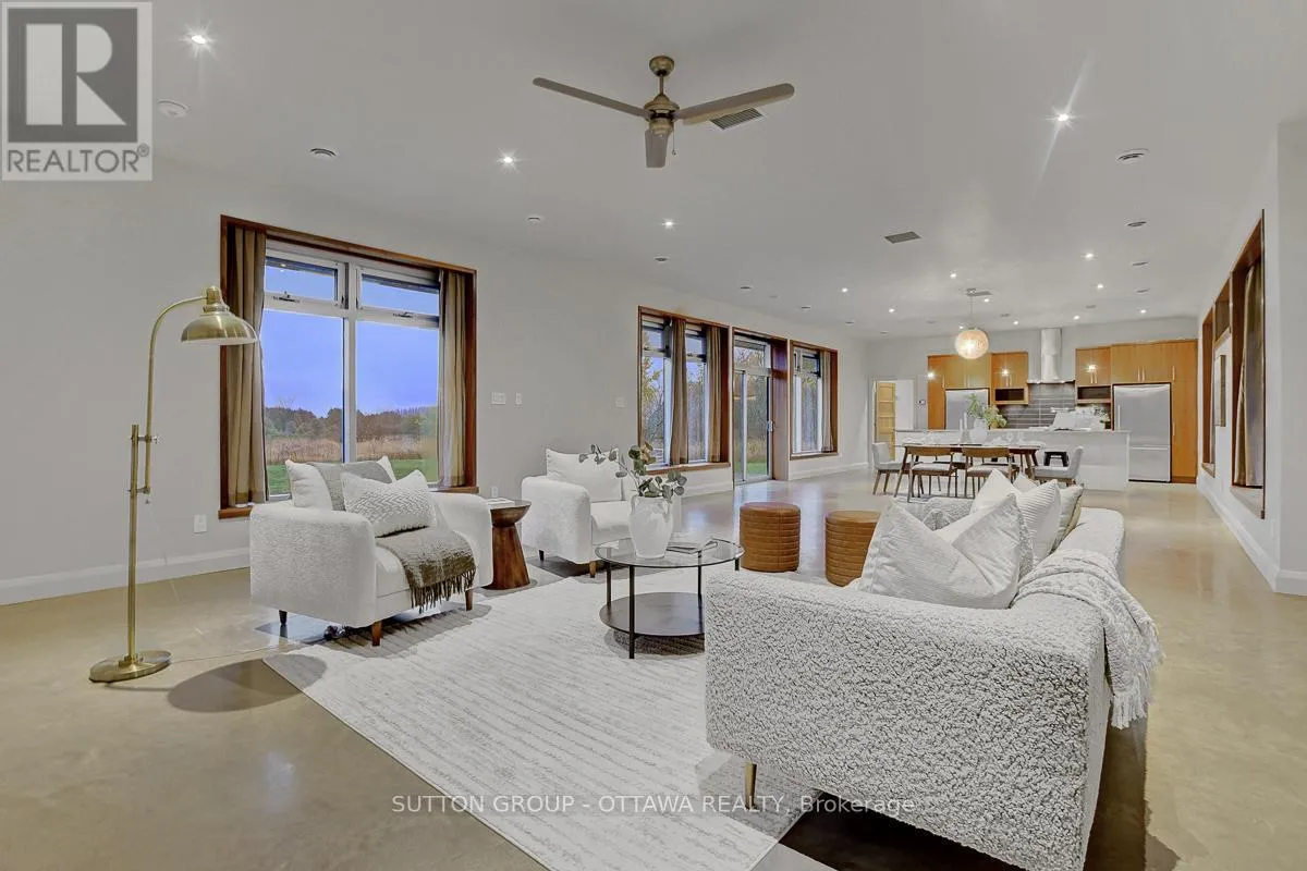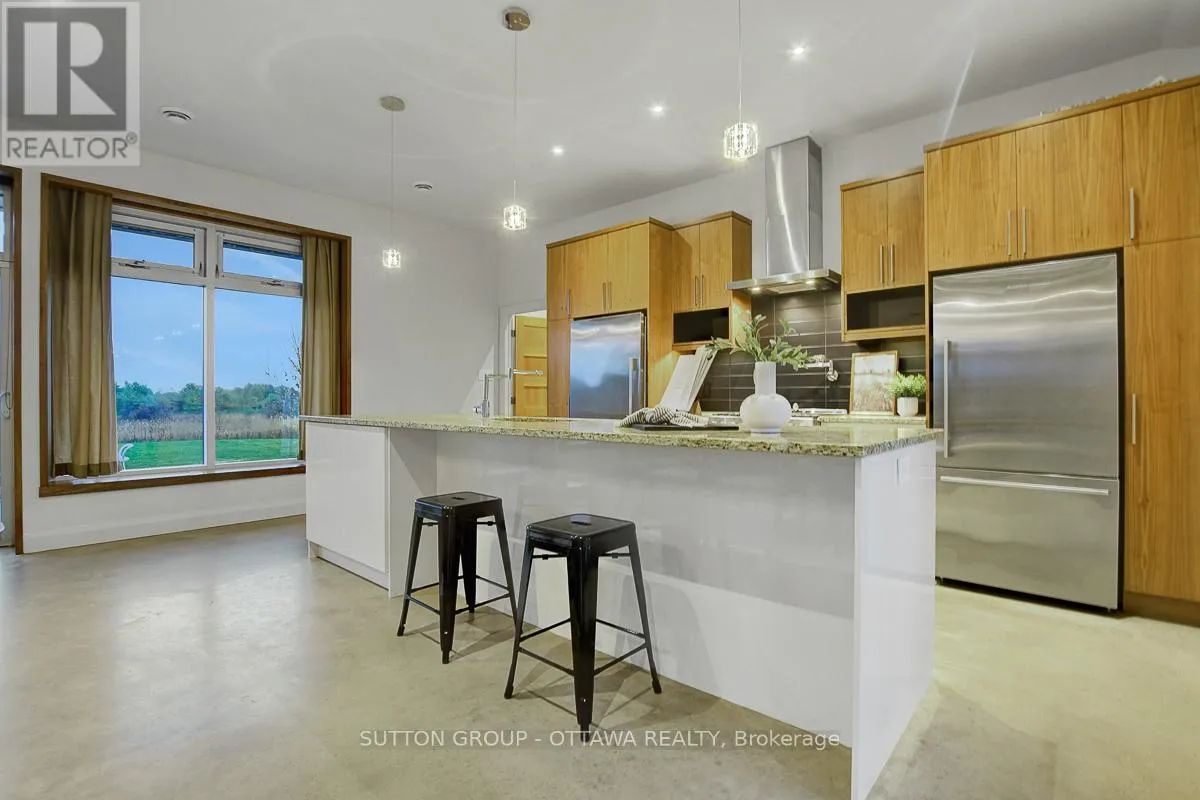 Cross Streets: Take 417W Exit 144 to Dwyer Hill Rd S turn left on Bleeks Rd (crossing Dwyer Hill Rd) 1.3km, property on right past Hurricane Electric. ** Directions: Take 417 W Exit 144 Dwyer Hill Rd S left on Bleeks Rd 1.3km, property on right past Hurricane Electric. Welcome to 7844 Bleeks Road - Country Luxury in the Heart of Munster Located in the charming village of Munster and within walking distance of Saunders Farm, this beautifully updated bungalow sits on a tranquil two-acre lot that perfectly blends country serenity with modern comfort. Originally renovated in 2014 and expanded with a stunning addition in 2018, the home showcases quality craftsmanship, thoughtful design, and an inviting open-concept layout ideal for family living and entertaining. Step inside from the side entrance into a wide hallway that leads to a bright, spacious living area where polished concrete floors with radiant heat create warmth and elegance. The chef's kitchen features stainless-steel appliances, a gas stove with pot filler, and an abundance of counter space, flowing naturally into the dining and living rooms filled with natural light and scenic views of the surrounding greenery. The home offers three bedrooms and three full bathrooms, including a generous primary suite with a beautifully renovated ensuite completed in 2025. The second bathroom, completed in 2018, doubles as a convenient laundry space. A fully finished basement extends the living area and sits beneath the 2018 addition, perfect for a recreation room, gym, or home office.Outside, a wrap-around deck overlooks a gently sloping backyard surrounded by trees, offering the perfect setting for outdoor gatherings or quiet mornings with coffee. The property features a drilled well, a new septic system installed in 2018 and pumped in 2020, a metal roof on the main home, and new shingles and siding on the addition. Ample driveway parking provides space for family and guests alike. Only twenty minutes from Highway 417, this property offers the best of both worlds - peaceful country living with convenient access to Ottawa's west-end amenities.Easy to show. Heated thermal floors on one side and forced air on the new additions. 2 furnaces, 2 Ac, 2 Hot water tanks (id:27476)