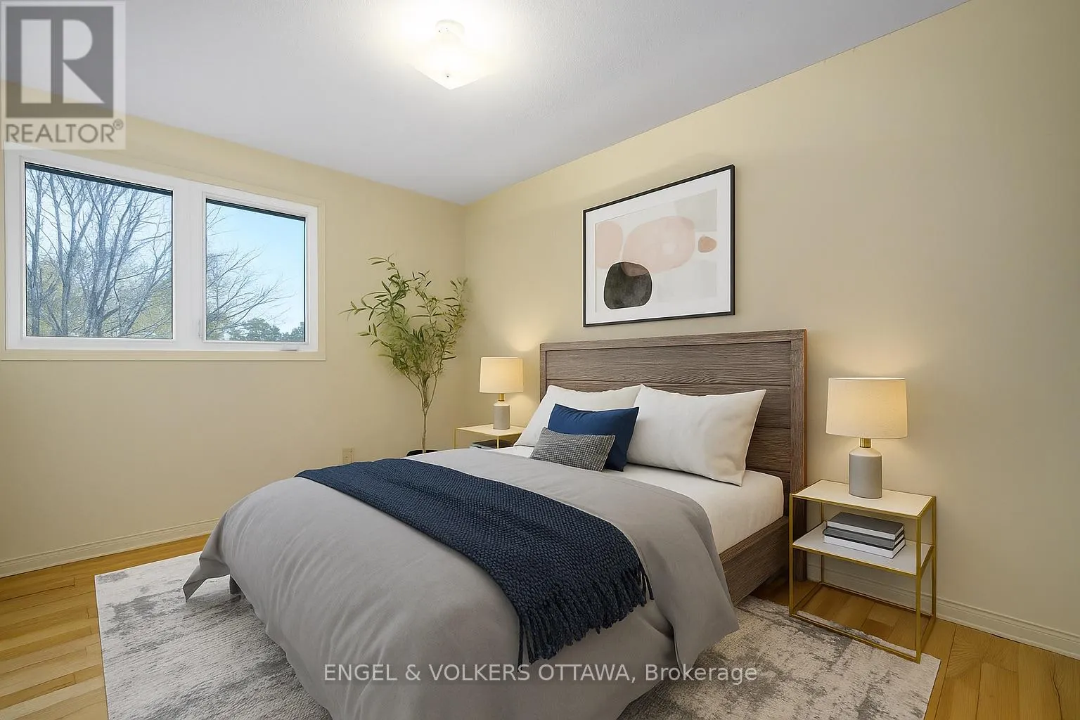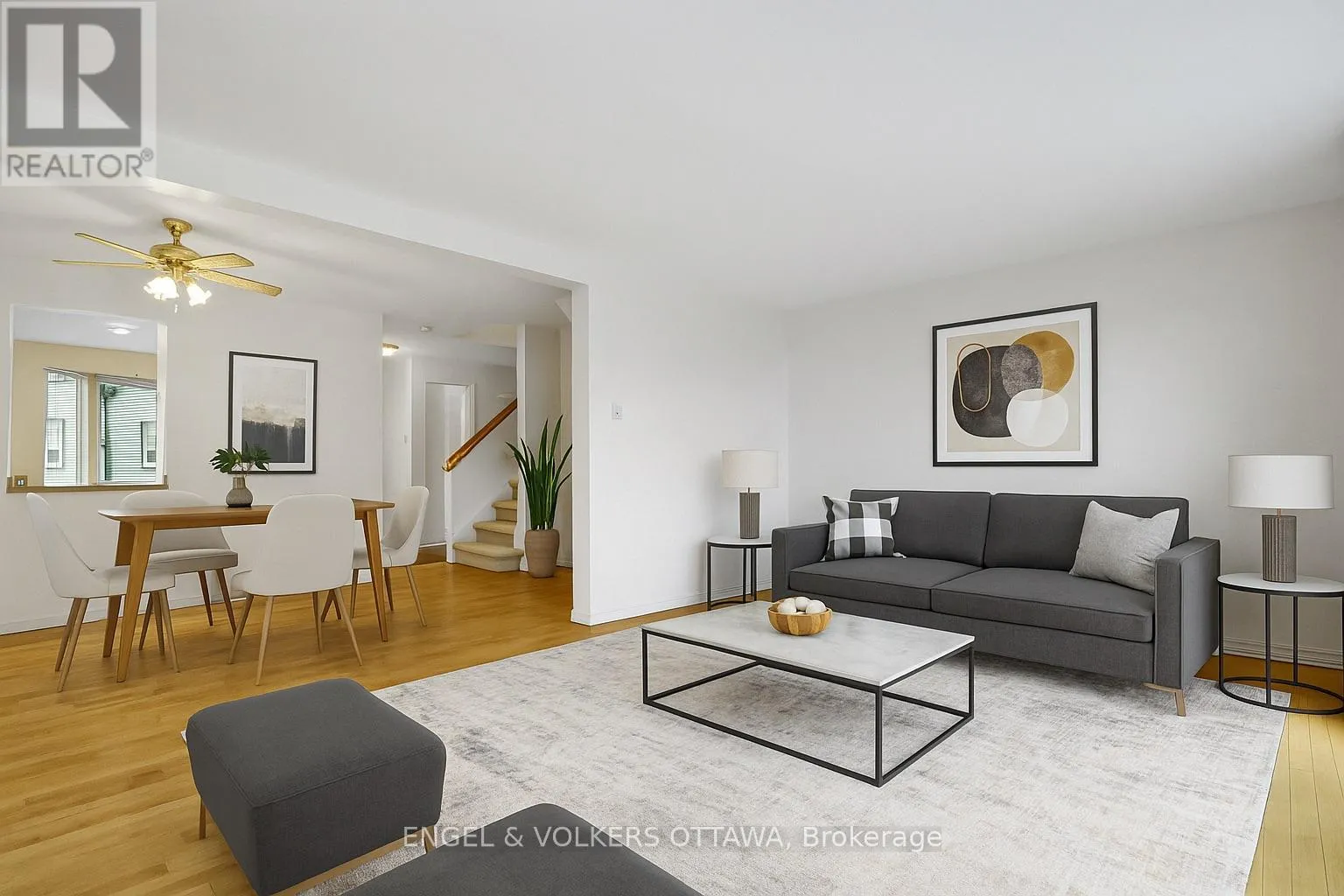 Cross Streets: Innis Road and Stonehenge Cr. ** Directions: Innis road to Stonehenge Cr. Pride of ownership is evident throughout this inviting home, ideally located close to shopping, transit, parks, and schools.The main level features hardwood flooring and an open, light-filled layout. The spacious living room boasts wall-to-wall windows that bathe the space in natural light and built-in cabinetry with glass doors that can easily be removed to suit your style. The dining room flows seamlessly from the living area and connects to a bright, updated kitchen offering abundant storage, generous counter space, and a convenient pass-through window-perfect for entertaining. Appliances include a fridge, stove, and dishwasher.Upstairs, you'll find sought-after hardwood flooring throughout, a very spacious primary bedroom with a custom closet organizer, and two additional bedrooms ideal for family, guests, or a home office.The lower level provides excellent versatility with a large recreation room featuring good ceiling height, a laundry area, and plenty of storage space.Step outside to enjoy a north-facing backyard with patio stones and direct access to open green space-no immediate neighbours behind-and a short walk to the community pool for summer enjoyment. The front yard also faces green space, creating a serene, park-like setting.This well-cared-for home offers excellent value in a convenient location with a strong sense of community. A true turnkey opportunity for those seeking comfort, space, and lifestyle in one of Ottawa's most connected areas. (id:27476)