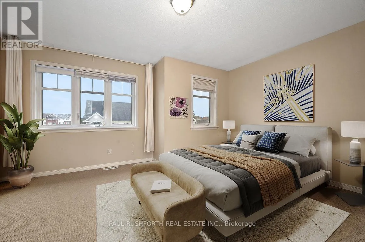 Cross Streets: Elite. ** Directions: Strandherd Drive, then turn north onto Longfields. From Longfields, turn left on Deercroft Avenue, then take the first left onto Keltie Private. Welcome to this beautifully maintained upper unit offering 1,350 sq ft of bright, open living space! The inviting layout features a spacious living/dining area with large windows that flood the home with natural light, and a stylish kitchen complete with ample counter space and a convenient breakfast bar perfect for entertaining. A main floor den provides a quiet retreat or ideal home office. Upstairs, you'll find two generous bedrooms and a spa inspired cheater ensuite with a soaker tub and oversized shower. Enjoy your morning coffee on either of the two east facing balconies overlooking a peaceful natural setting. Ideally located just steps from shopping, parks, and transit. Includes air conditioning and one surfaced parking space. Move in ready and packed with value this one truly shines! Some photos have been virtually staged. (id:27476)