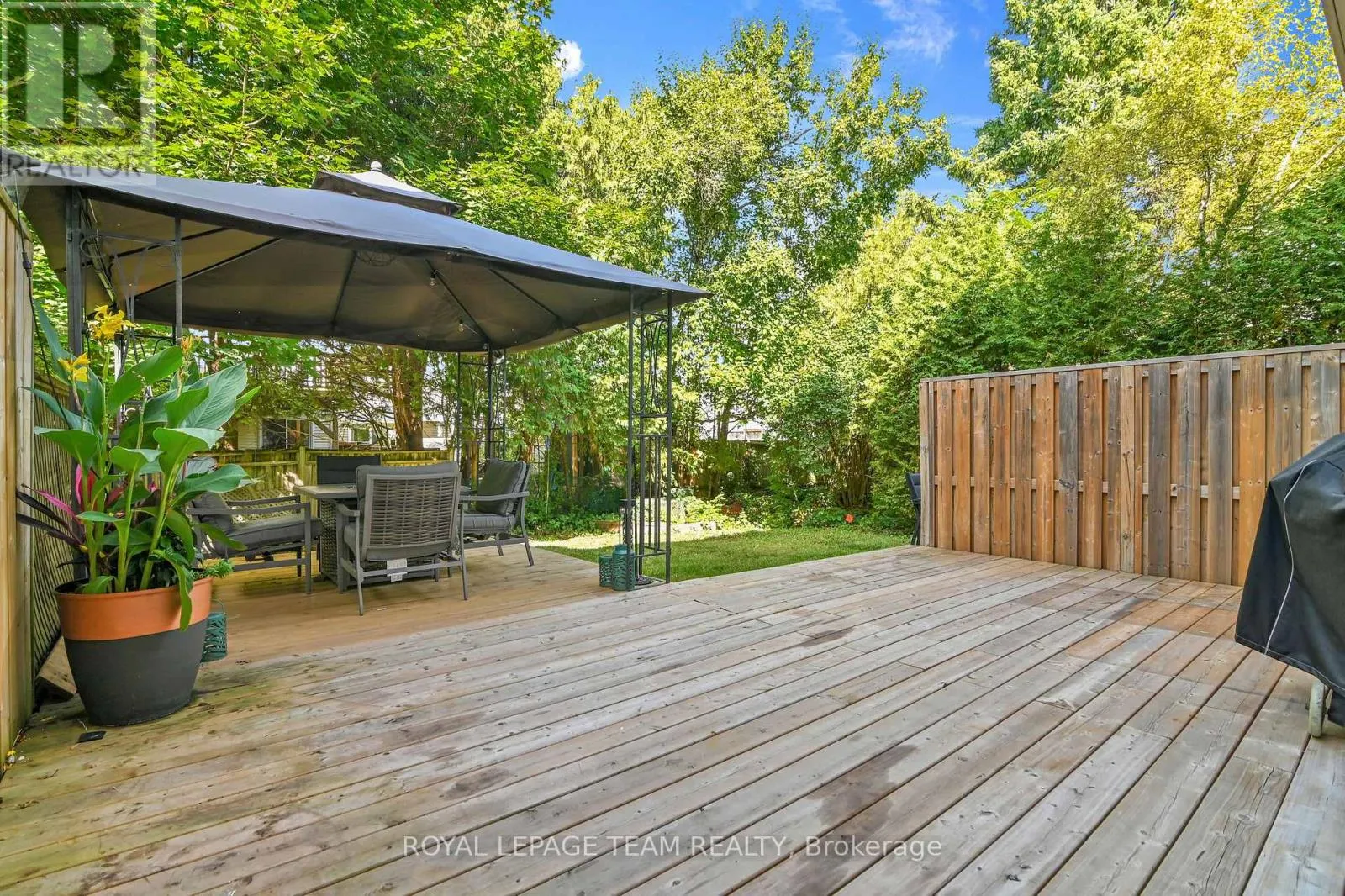 Cross Streets: Woodroffe & Tallwood. ** Directions: South On Woodroffe from 417, Right on Tallwood, Left on Centrepointe. Welcome to 140 Centrepointe Drive - a spacious 3-storey end-unit townhome offering over 1,800 sq. ft. of comfortable and versatile living in one of Ottawa's most desirable neighbourhoods. The lower level features a bright den that can easily serve as a home office, family room, or 4th bedroom, along with a convenient 2-piece powder room and direct access to the private backyard. Outside, you'll find a large deck with a gazebo, excellent privacy, and beautiful surrounding greenery-perfect for outdoor dining and entertaining. The main level offers a welcoming, open layout with a spacious living room filled with natural light, a dedicated dining area, and an eat-in kitchen featuring new countertops and plenty of space for family meals. Upstairs, the home offers 3 generous bedrooms, including a primary suite with a walk-in closet and a 4-piece ensuite, as well as an additional full bathroom to support the other two bedrooms. The location is the highlight: nestled in the heart of Centrepointe, steps to Centrepointe Park, excellent schools, Algonquin College, transit, shops, restaurants, and the upcoming LRT development. It's a rare blend of space, privacy, and unmatched convenience. Perfect for families, professionals, or investors - this home checks every box in a neighbourhood that's hard to beat. Recent Updates: Roof 2016, Windows/Doors 2018, Deck 2024. Don't miss this opportunity, book your showing today! (id:27476)