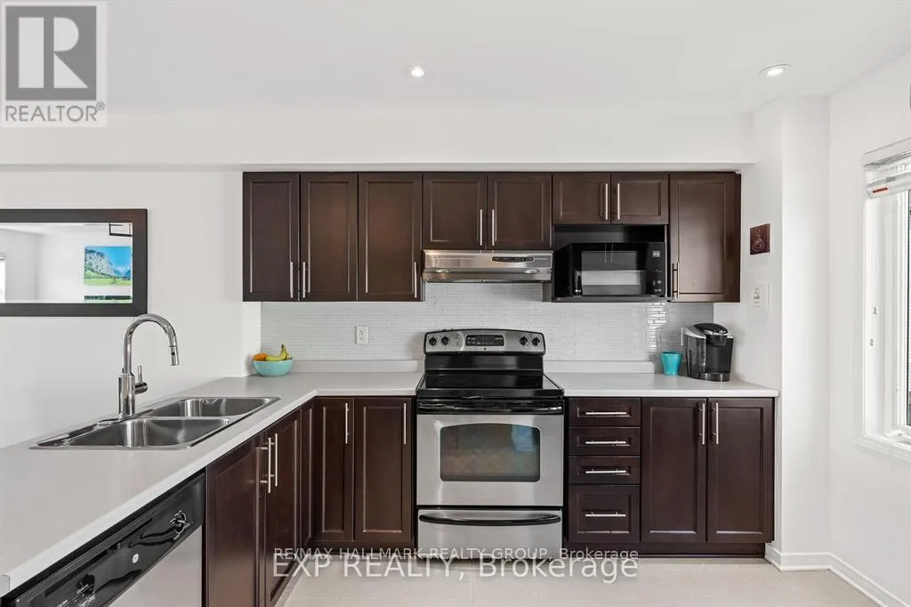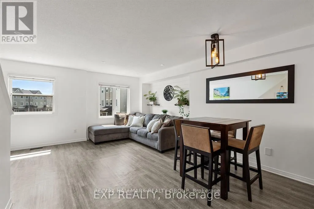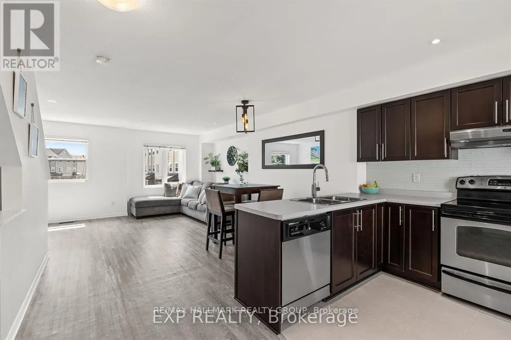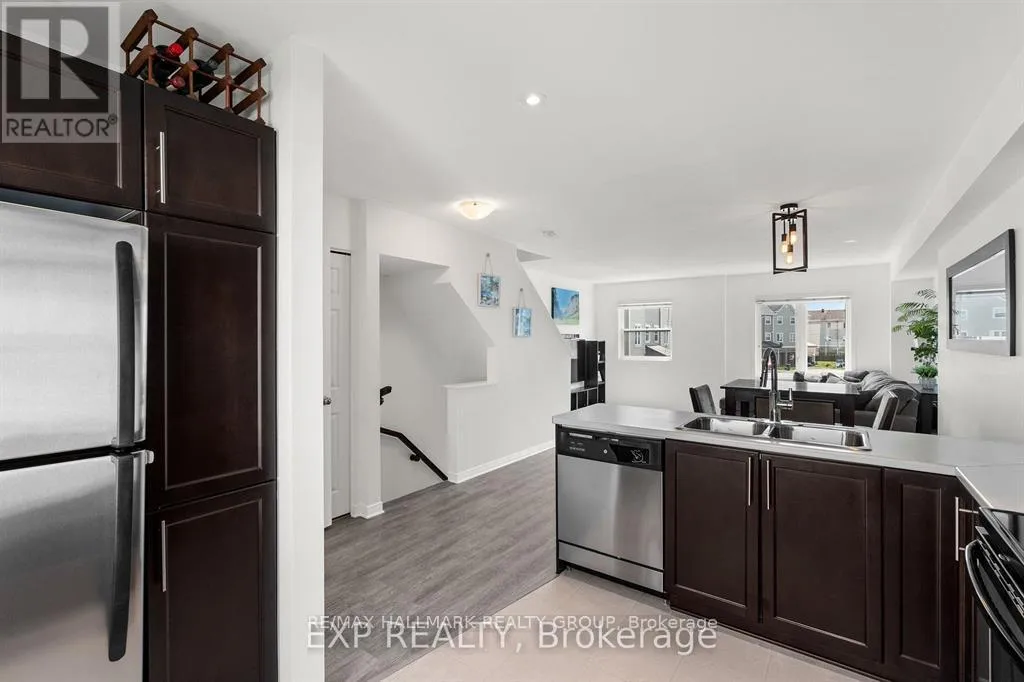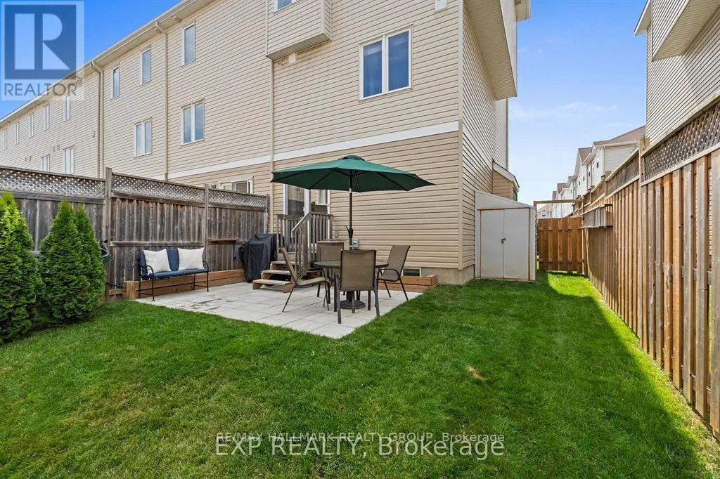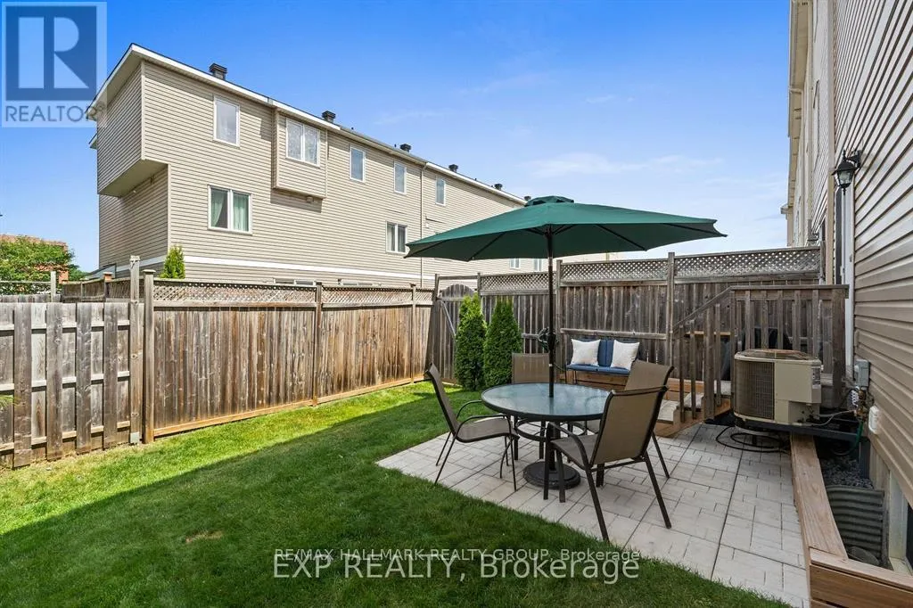 Cross Streets: Simran & Cobble Hill. ** Directions: From Strandherd, to Kennevale, right on Cobble Hill, right on Simran. Welcome to this beautifully updated, move-in ready 3-bedroom, 3-bathroom end-unit townhome, offering low-maintenance living in the heart of Barrhaven. The home features an expanded driveway providing three parking spaces (including the garage). The spacious entryway includes a large closet and direct interior access to the garage. The main floor hosts a generous family room, with a patio door leading to your private, fully fenced backyard. This outdoor space is complete with a patio, garden edging mature trees, a natural gas BBQ hookup, and a handy 4x10 shed. The second level boasts an open-concept living and dining area featuring luxury vinyl plank flooring (2021), upgraded pot lights, and a smart thermostat. The sun-filled kitchen includes stainless steel appliances, an upgraded faucet , a tile backsplash, pot lights on a dimmer, a pantry, and a generous eating area. A powder room with a newer vanity completes this floor. Upstairs, you will find three well-sized bedrooms, all with matching custom blinds. The spacious primary bedroom features its own 3-piece ensuite with tile flooring and an upgraded shower head. A second full bathroom also includes a tub/shower combo and an upgraded shower head. The basement includes a dedicated laundry area with a utility sink, a utility room, and extra under-stair storage (2023).This townhome offers comfort, convenience, and an unbeatable location, situated just steps from Café Crystal, Costco, Amazon, restaurants, shopping, parks, schools, and public transit. (id:27476)