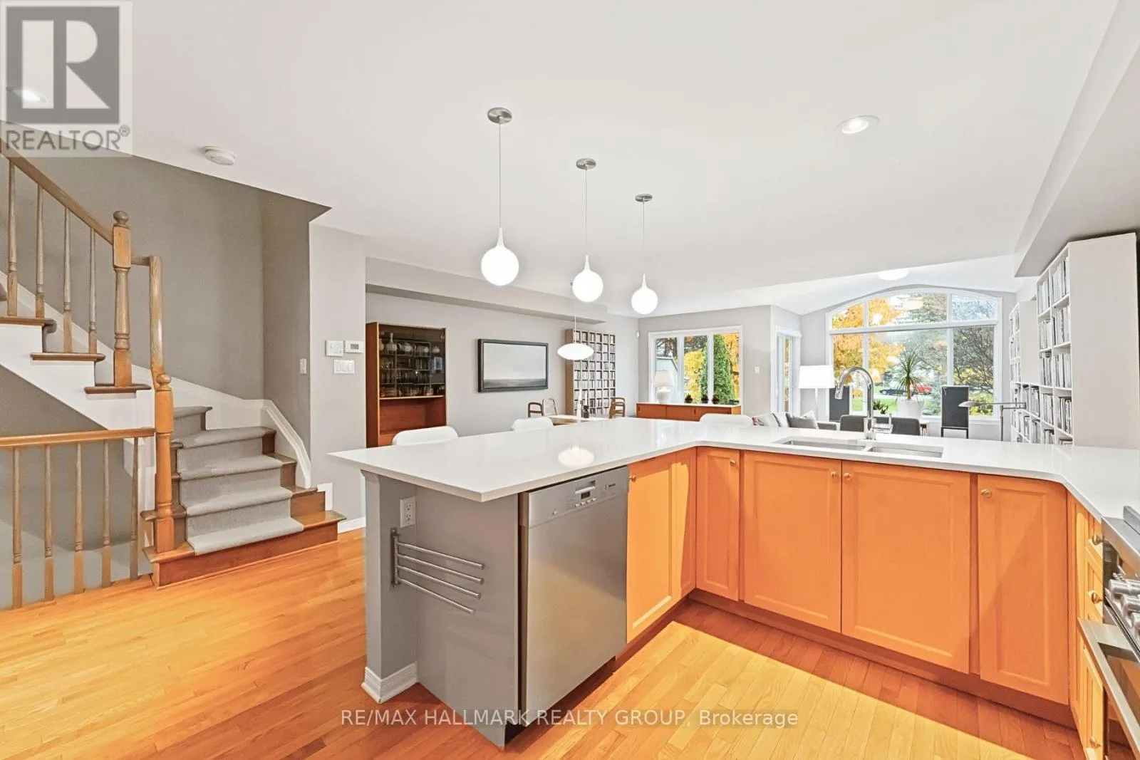 Cross Streets: Steel / Crownhill. ** Directions: Head northeast toward Bronson Ave/Ottawa Regional Rd 79 S4 sec (20 m)Take Ottawa 62, Trans - Canada Hwy/ON-417 E and Ogilvie Rd/Ottawa Regional Rd 50 to Dunham St in Gloucester14 min (9.1 km)Take Crownhill St to Maxton Private. Impressive Domicile-Built Freehold Townhome Backing Onto Parkland. Experience a perfect blend of luxury, privacy, and natural beauty in this beautifully renovated Domicile-built 2-storey, 3-bedroom freehold townhome. Nestled in a quiet enclave on a private, landscaped lot backing onto parkland, this residence offers rare tranquility and a connection to nature-just minutes from the city's best amenities. Step inside to a sun-filled open-concept living and dining room adorned with rich hardwood floors and large windows framing peaceful treetop views. Extend your living outdoors to a spacious deck overlooking the professionally landscaped garden-ideal for al fresco dining or quiet evening relaxation. The chef-inspired kitchen (updated in 2015) features quartz countertops, an undermount sink, elegant lighting, and premium appliances including a Fisher & Paykel fridge and stove and Miele dishwasher. Upstairs, find three generous bedrooms and updated bathrooms (2015) featuring a luxurious soaker tub, glass shower, and high-end fixtures. The lower-level family room with a cozy gas fireplace offers a perfect retreat for movie nights or family gatherings. Key Updates & Features: Gas Furnace (2019), Central Air & Hot Water Tank (Rental, 2019) Interlocking Brick Driveway (2019) New Deck, Stairs, Lighting, Landscaping & Artificial Grass in Garden(2024) Epoxy Floor in Garage & New Front Glass Door(2013) Roof(2002) HRV System Meticulously maintained and upgraded with care, this home offers exceptional quality, warmth, and privacy in a beautiful parkland setting - a rare find in today's market. Association Fee $67.08/month. Possession Date 27th of February 2026. 24-hour irrevocable and Schedule B on all offers. (id:27476)