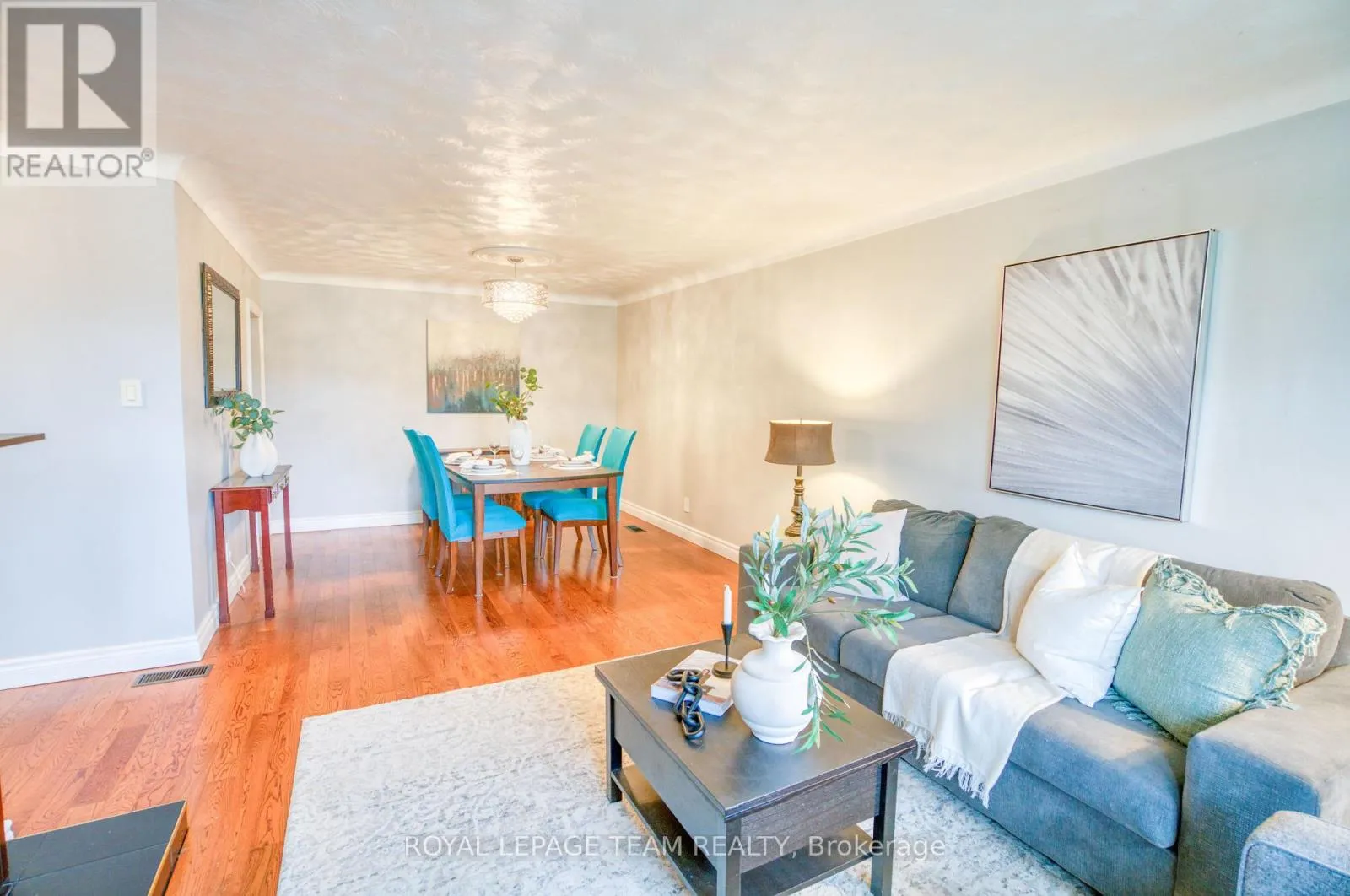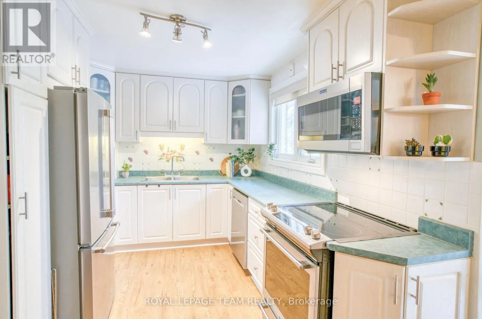 Cross Streets: Viewmount and Oakview. ** Directions: Woodroffe Ave to Meadowlands Dr W, right onto Viewmount Dr, left onto Oakview Ave. Backing onto Oakview Park with NO REAR NEIGHBOURS, this charming 3-bedroom, 2 FULL bath bungalow offers peaceful views and a true sense of privacy. It's the perfect fit for young families, downsizers, or anyone looking for a quiet street in an established neighbourhood. The main level features a bright, open-concept living and dining area with a gas fireplace, hardwood floors, and a beautiful bay window. The kitchen is functional and inviting, with stainless steel appliances and direct access to the cozy family room; complete with a SECOND gas stove and patio doors that open to the backyard. Enjoy morning coffee or evening sunsets with nothing but trees and park views behind you! The main floor updated bathroom includes a walk-in shower, and the laundry room (currently on the main level) could easily be converted back to a third bedroom if desired. Downstairs, you'll find a spacious finished basement with a 4-piece bath, a large rec room with wet bar, and plenty of flexibility for a home office, gym, or hobby space.The backyard is a true retreat, with a deck, patio, mature perennials, and a gate that leads straight into Oakview Park. Updates include roof (2013 w/50-year shingles), furnace (2013), tankless hot water heater (2025, owned), A/C (2025). Located close to shopping, schools, transit, and walking paths - it's easy to see why homes on Oakview Avenue don't come up often! (id:27476)