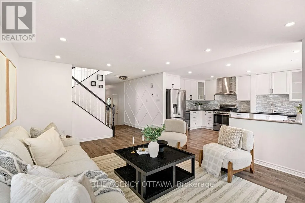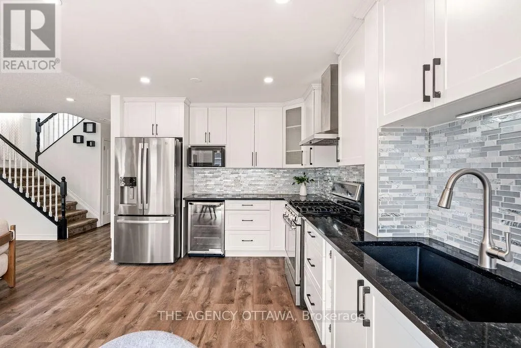 Cross Streets: Appledale and Deerfox. ** Directions: left on Appledale. Welcome to 70 Appledale Drive, a beautifully renovated end-unit townhome in the heart of Barrhaven, just five minutes from Marketplace. This meticulously redesigned home offers approximately 2,000 sq.ft. of stylish living space, featuring a modern kitchen with sleek quartz countertops, generous cabinetry, and stainless steel appliances, along with renovated bathrooms and new flooring throughout. The fully finished basement provides incredible versatility with a spacious rec room, second kitchen, laundry area, and ample storage ideal for extended family or guests. Enjoy a private, low-maintenance backyard with artificial grass, a deck, and mature plum, cherry, and apple trees a rare urban oasis. Additional highlights include California shutters, a leased HVAC system (2015), kitchen roof (2020), and full roof (2014). The main level boasts an open-concept layout perfect for entertaining, a den/home office (or potential fourth bedroom), and a convenient powder room, while upstairs offers a spacious primary suite with walk-in closet and ensuite, three additional bedrooms, and a full bathroom. All appliances are included. Steps from top-rated schools, parks, shopping, transit, and right across from Metro on Strandherd the perfect blend of comfort, style, and convenience awaits you here! (id:27476)