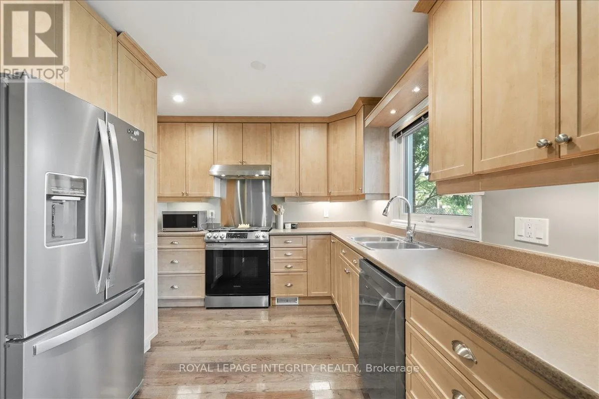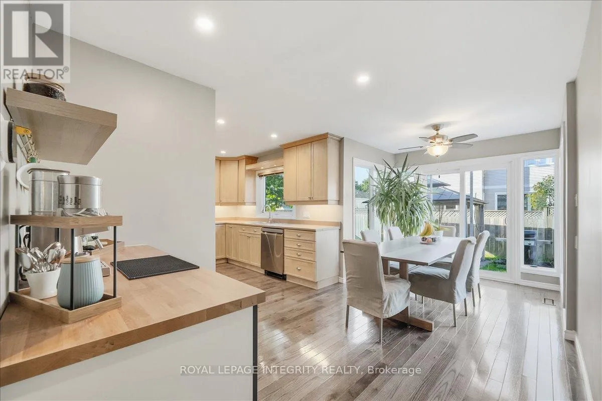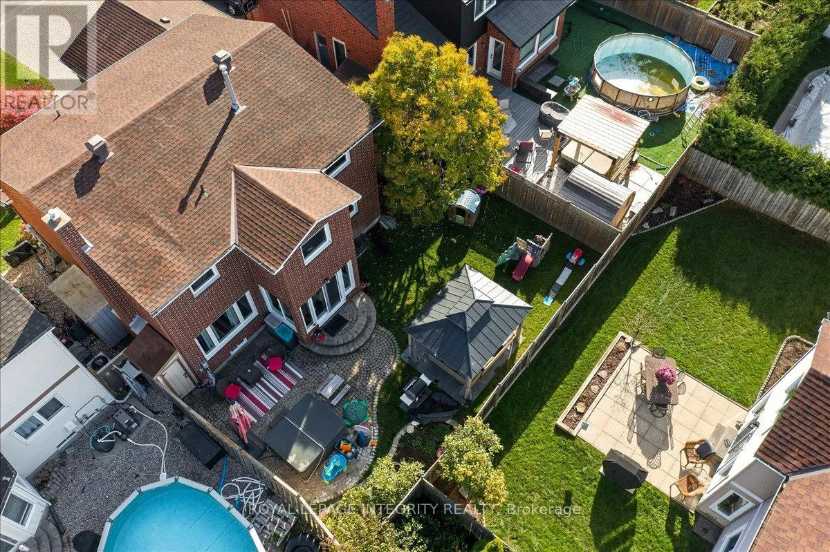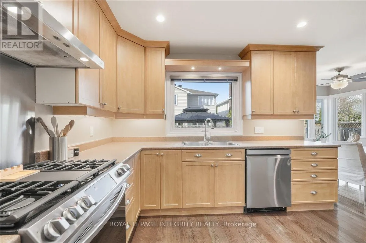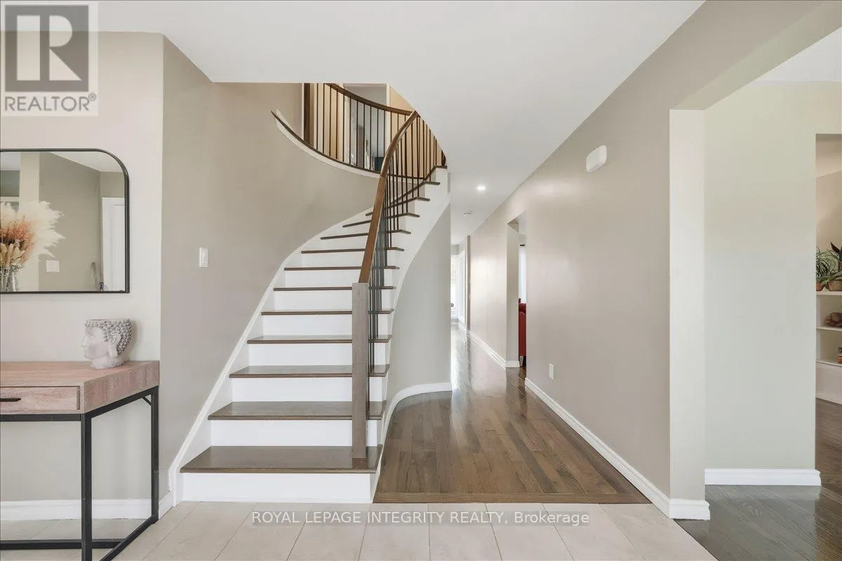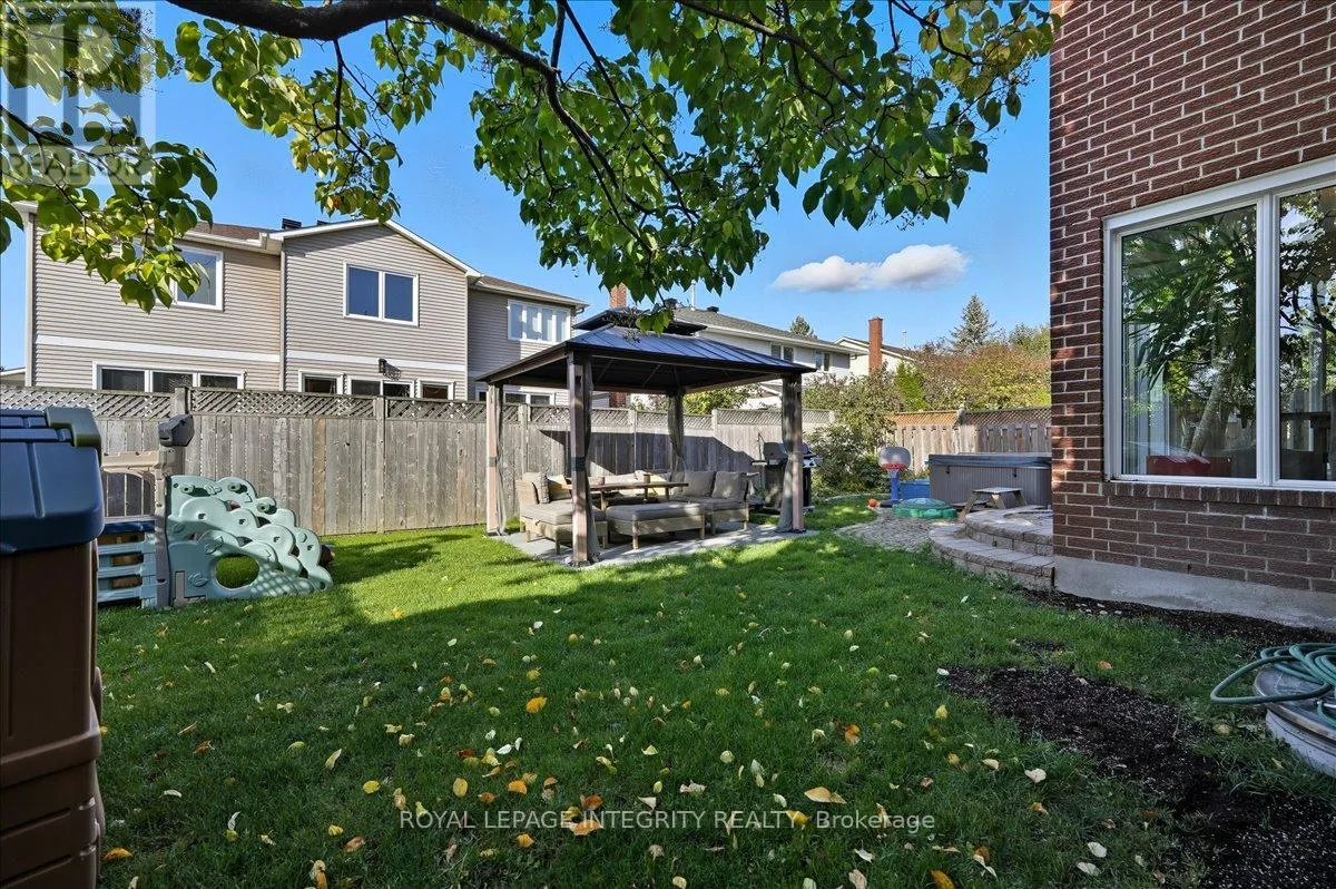 Cross Streets: Tompkins and Tenth Line. ** Directions: South on Tenth Line, right on Tompkins, right on Bourcier, Right on Bouton D'Or. Welcome to 1406 Bouton D'Or Way in the desirable neighbourhood of Queenswood Heights! This gorgeous, move-in ready, carpet-free 5-bedroom, 4-bathroom family home is located just steps from parks and schools and minutes to all amenities, public transit, and everything you need. You'll be impressed from the moment you enter the spacious foyer featuring 12" x 24" tile, a large closet, and access to the garage with built-in storage/hall tree, and entry to the laundry/mudroom with a partial bathroom. The main level offers a bright living room and a cozy family room with a fireplace and gleaming hardwood floors. At the back of the home, the kitchen provides ample cabinetry and counter space, stainless steel appliances including a gas stove, a large walk-in pantry, and a coffee bar area that opens onto the dining space with a wall of windows and patio doors leading to the fully fenced backyard featuring an interlock patio with gazebo, hot tub with sitting area, storage shed, and plenty of green space for kids and pets to enjoy. Upstairs, the hardwood continues throughout all bedrooms. The spacious primary retreat includes a full wall of storage and a spa-like ensuite with a standalone tub, dual vanity, and glass shower. Three additional generous bedrooms and an updated full bathroom complete the upper level. The finished basement offers even more living space with a massive versatile family room, a fifth legal bedroom done with permit and proper egress, and a full bathroom with a glass shower. This beautifully maintained home truly has it all - offering comfort, space, and style in a prime location. Don't miss your chance to make this one yours! (id:27476)