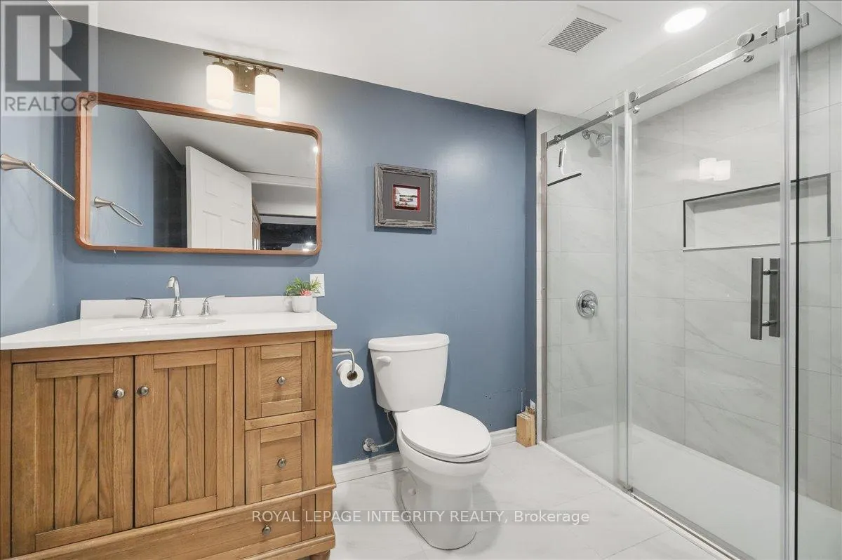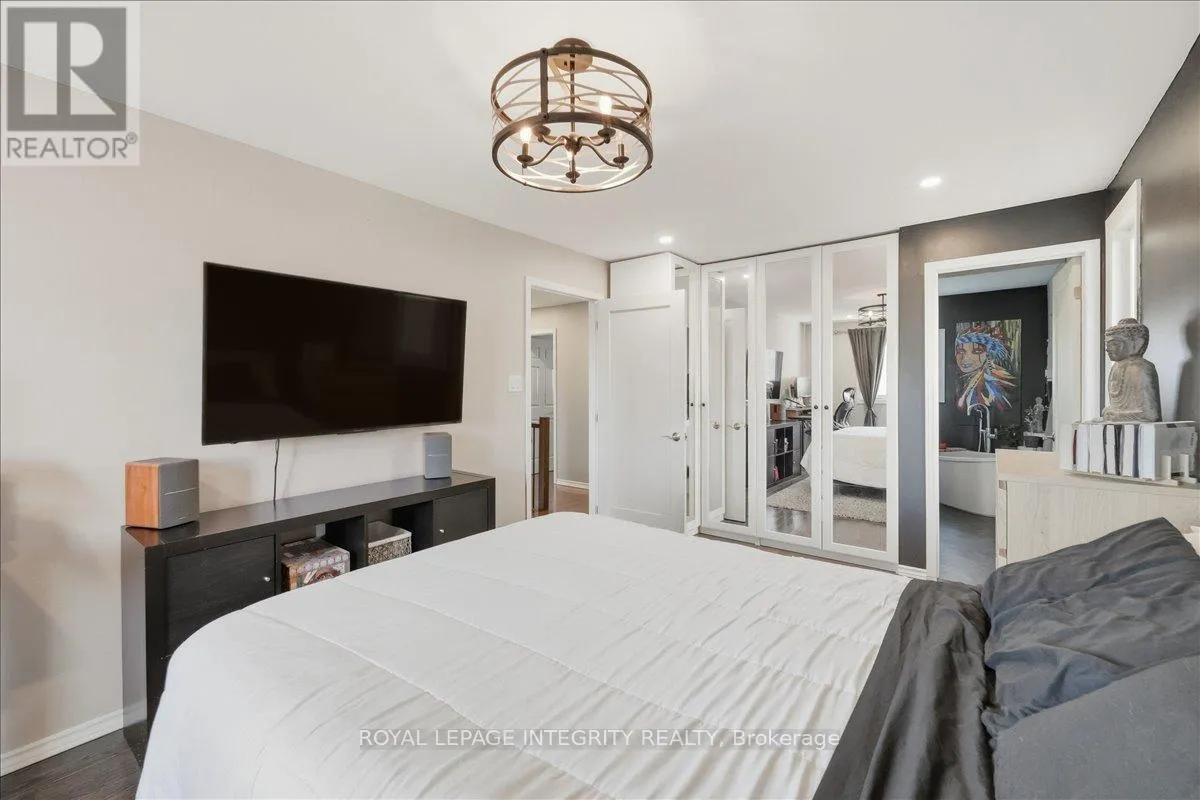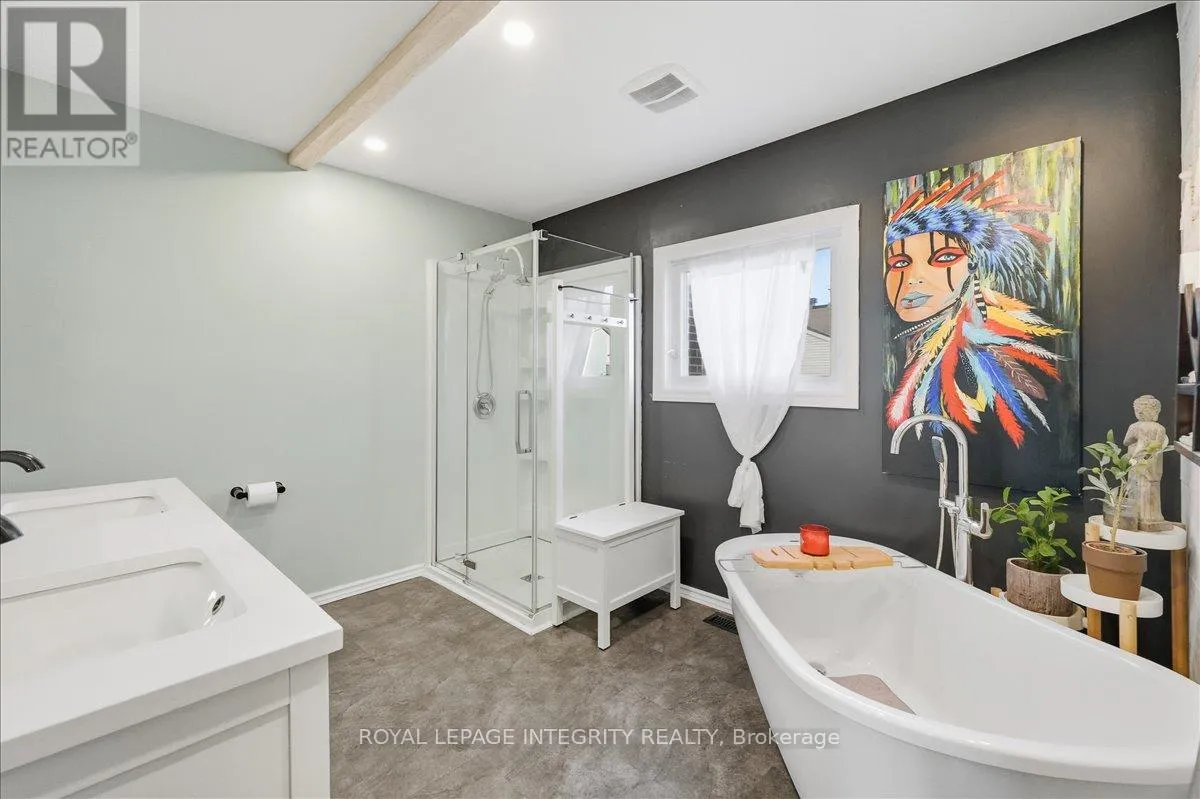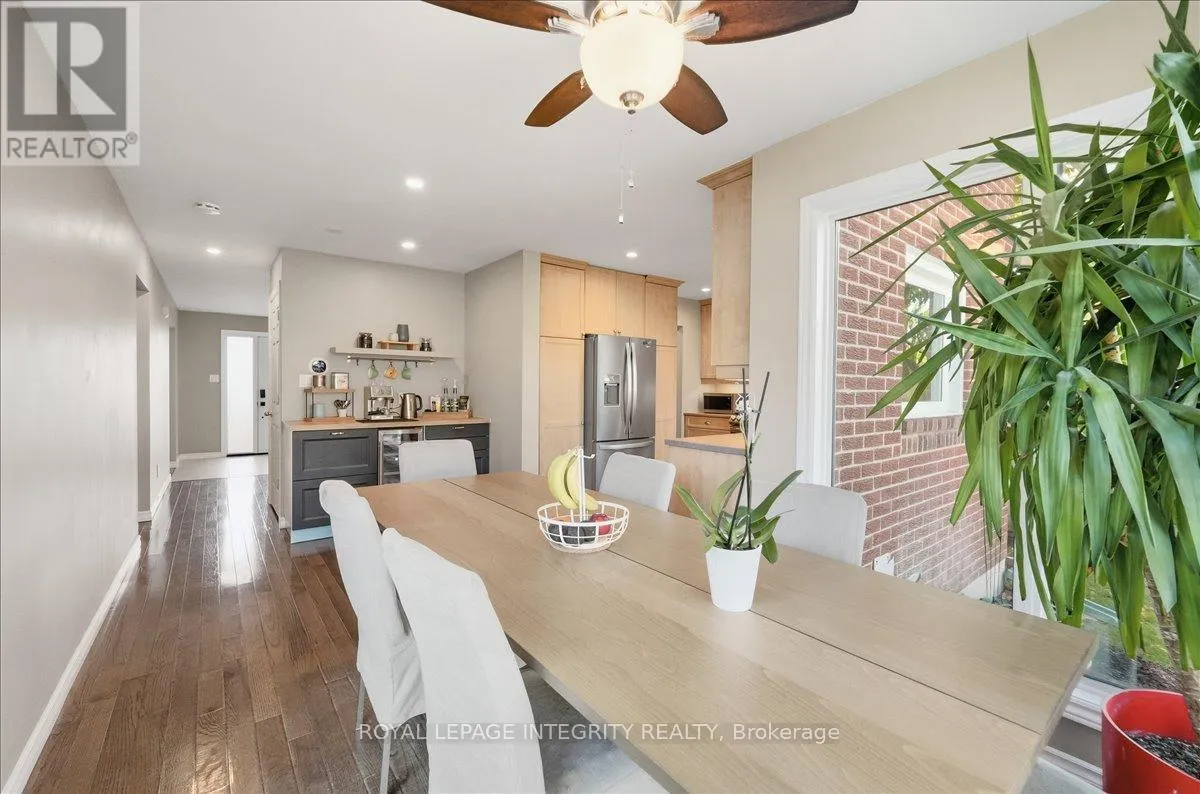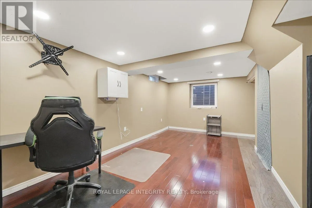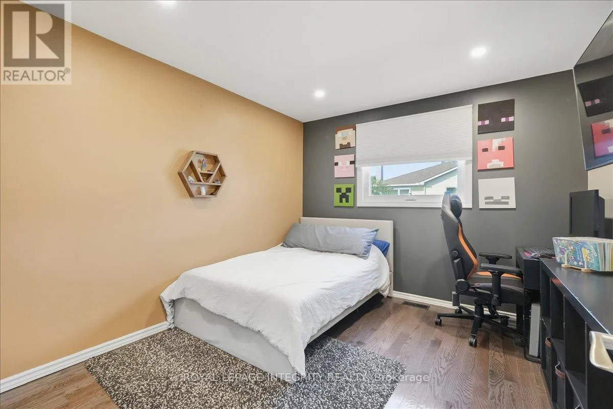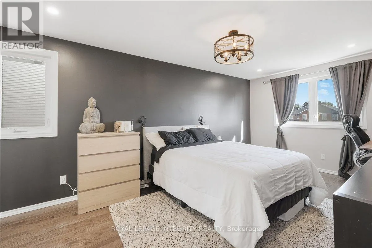Cross Streets: Tompkins and Tenth Line. ** Directions: South on Tenth Line, right on Tompkins, right on Bourcier, Right on Bouton D'Or. Welcome to 1406 Bouton D'Or Way in the desirable neighbourhood of Queenswood Heights! This gorgeous, move-in ready, carpet-free 5-bedroom, 4-bathroom family home is located just steps from parks and schools and minutes to all amenities, public transit, and everything you need. You'll be impressed from the moment you enter the spacious foyer featuring 12" x 24" tile, a large closet, and access to the garage with built-in storage/hall tree, and entry to the laundry/mudroom with a partial bathroom. The main level offers a bright living room and a cozy family room with a fireplace and gleaming hardwood floors. At the back of the home, the kitchen provides ample cabinetry and counter space, stainless steel appliances including a gas stove, a large walk-in pantry, and a coffee bar area that opens onto the dining space with a wall of windows and patio doors leading to the fully fenced backyard featuring an interlock patio with gazebo, hot tub with sitting area, storage shed, and plenty of green space for kids and pets to enjoy. Upstairs, the hardwood continues throughout all bedrooms. The spacious primary retreat includes a full wall of storage and a spa-like ensuite with a standalone tub, dual vanity, and glass shower. Three additional generous bedrooms and an updated full bathroom complete the upper level. The finished basement offers even more living space with a massive versatile family room, a fifth legal bedroom done with permit and proper egress, and a full bathroom with a glass shower. This beautifully maintained home truly has it all - offering comfort, space, and style in a prime location. Don't miss your chance to make this one yours! (id:27476)
