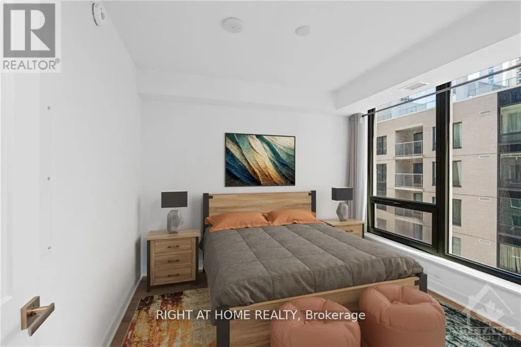 Corner of Lyon and Queen St. Modern luxury & convenience offers urban living at the amazing Claridge Moon Condos in the financial district of downtown Ottawa, walking distance to our Parliament building. This amazing 1-bedroom, 1-bathroom condo (640 sq. ft.). A rare corner unit with a practical layout, plenty of daylight, very nice views, and a range of exclusive amenities including convenience & security in the main lobby, boutique gym, common rooftop terrace, party lounge, theater room, guest suites & inviting heated pool. Key Features: Spacious, Hardwood Flooring, Premium Countertops and Backsplash, Stainless Steel Appliances, Sunlit Balcony. Next to the LRT subway and new grocery store. 1 Storage Locker for Additional Space. 24 hour irrevocable on offers. Rental Application, credit check & employment letter required. Some photos virtually staged. Deposit $4150.00 (id:27476)