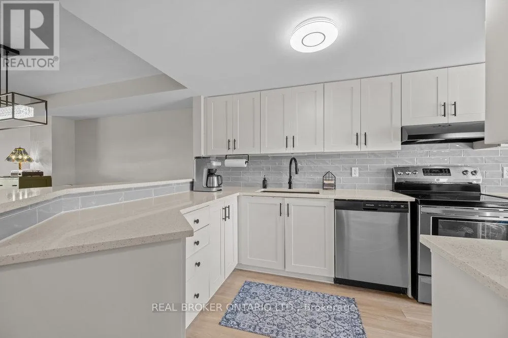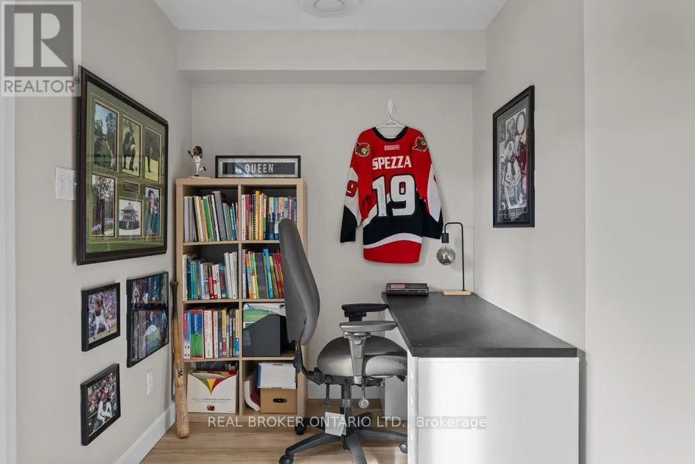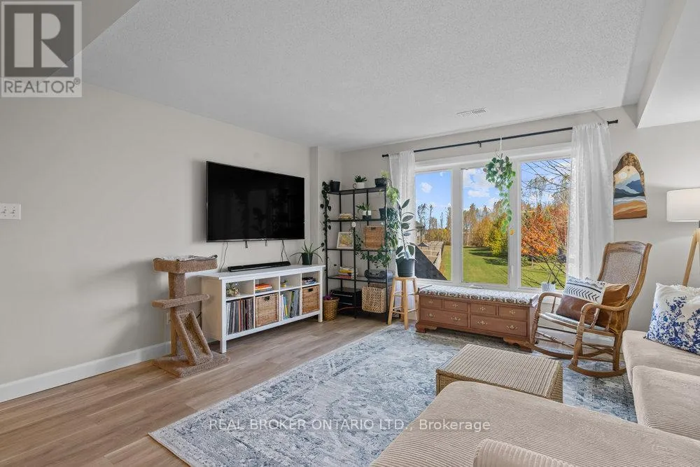 Cross Streets: Louis Toscano Drive. ** Directions: 10th Line Road to Brian Coburn Drive to Aquaview Drive. Immaculate 2-bedroom upper unit condominium with park views!! Welcome to this beautifully maintained 2-bedroom, 2-bathroom upper-level stacked condo in move-in ready condition. This home offers an inviting open-concept layout with a bright and airy feel throughout. Just off the kitchen, a cozy nook provides the perfect space for a home office or reading corner. Enjoy wonderful views overlooking a lovely park complete with play structures - an ideal setting for young families or those who appreciate a tranquil green space. The location cannot be beat - just steps to shopping, restaurants, bars, groceries, and convenient transportation options. Presented with top-quality finishes and attention to detail, this home will impress even your fussiest clients. Truly a must-see! Taxes (2025) $2895, heating $50/month, hydro $90/month, water & sewer $50/month Status Certificate ordered - parking number 20. (id:27476)