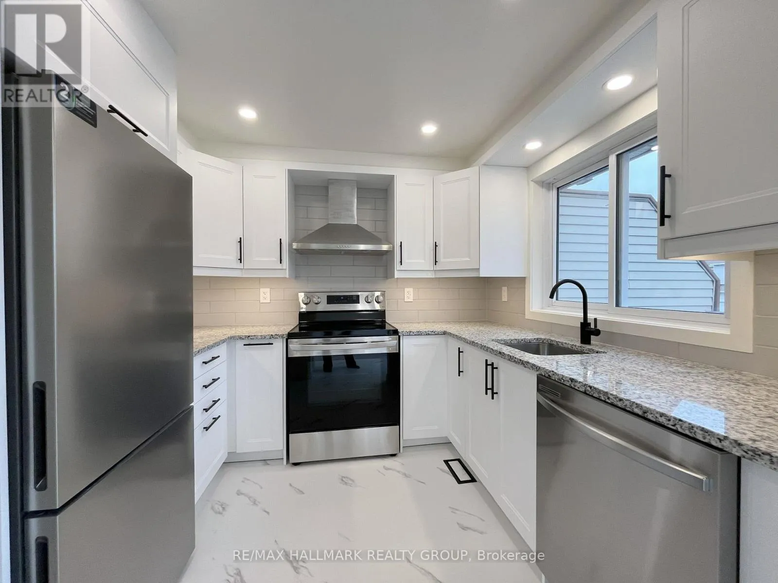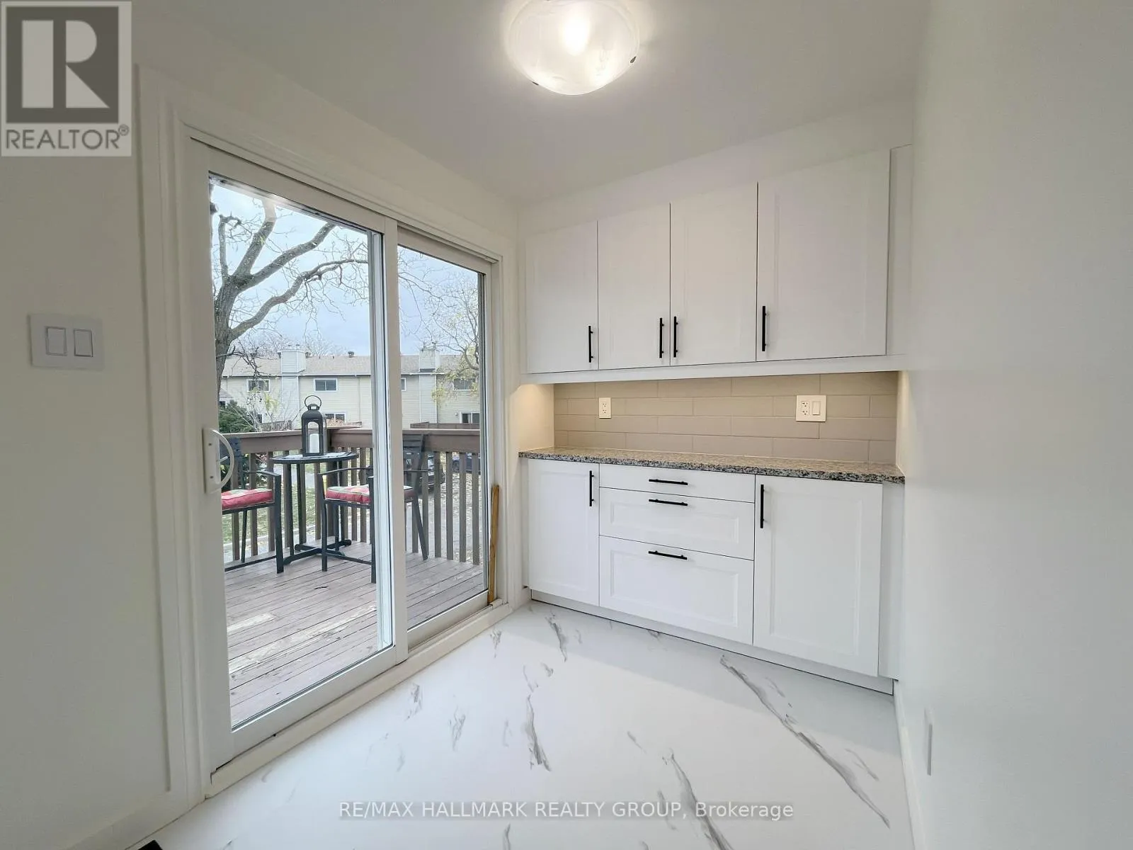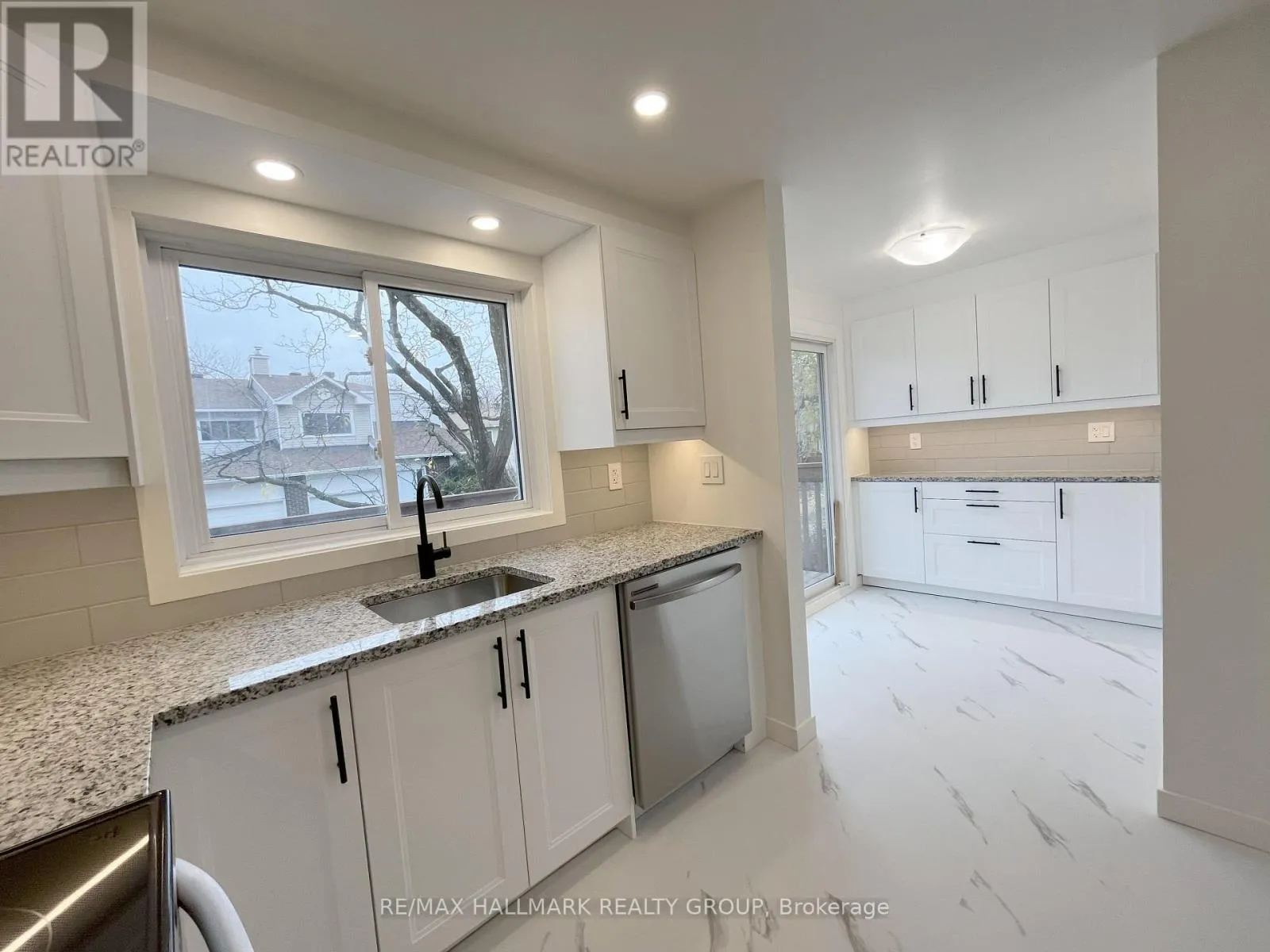 Cross Streets: Fairlawn Ave. and Esterlawn Pvt. ** Directions: Woodroffe Ave. to Lenester Ave to Failawn and Esterlawn. Welcome to 94 Esterlawn Private a beautifully updated 3 bedroom 1 1/2 bath condo with nothing to do but move in and enjoy! This multi level property has been tastefully updated with new flooring, kitchen and fresh paint. The Foyer has inside entry from the garage. The dining area overlooking the living room with an electric fireplace makes for cozy entertaining. The newly updated kitchen features granite counter tops and pot lighting. The eating area has a new coffee bar and extra cabinets opening to a generous sized balcony/deck that provides a wonderful outdoor living area. The third floor of the unit has three bedrooms and a full bathroom. The floor plan of the Primary Bedroom has been modified to include a walk in closet with a pocket door not found in the original units that provides ample storage space. A perfect location that is close to schools, public transit and is walking distance to shopping. (id:27476)