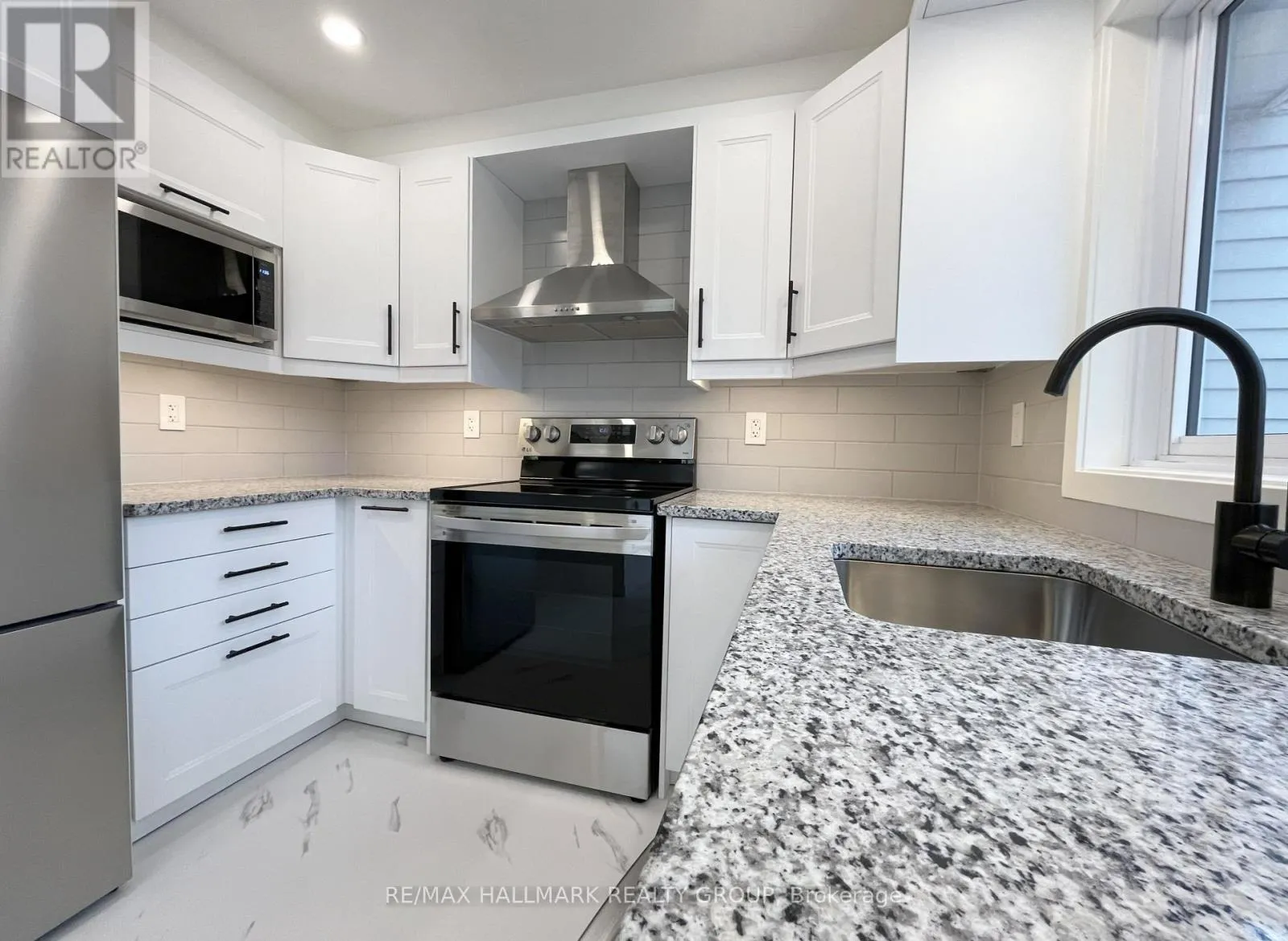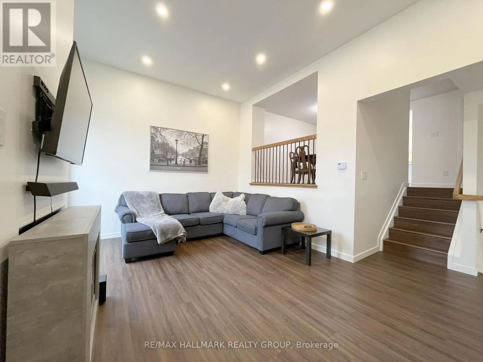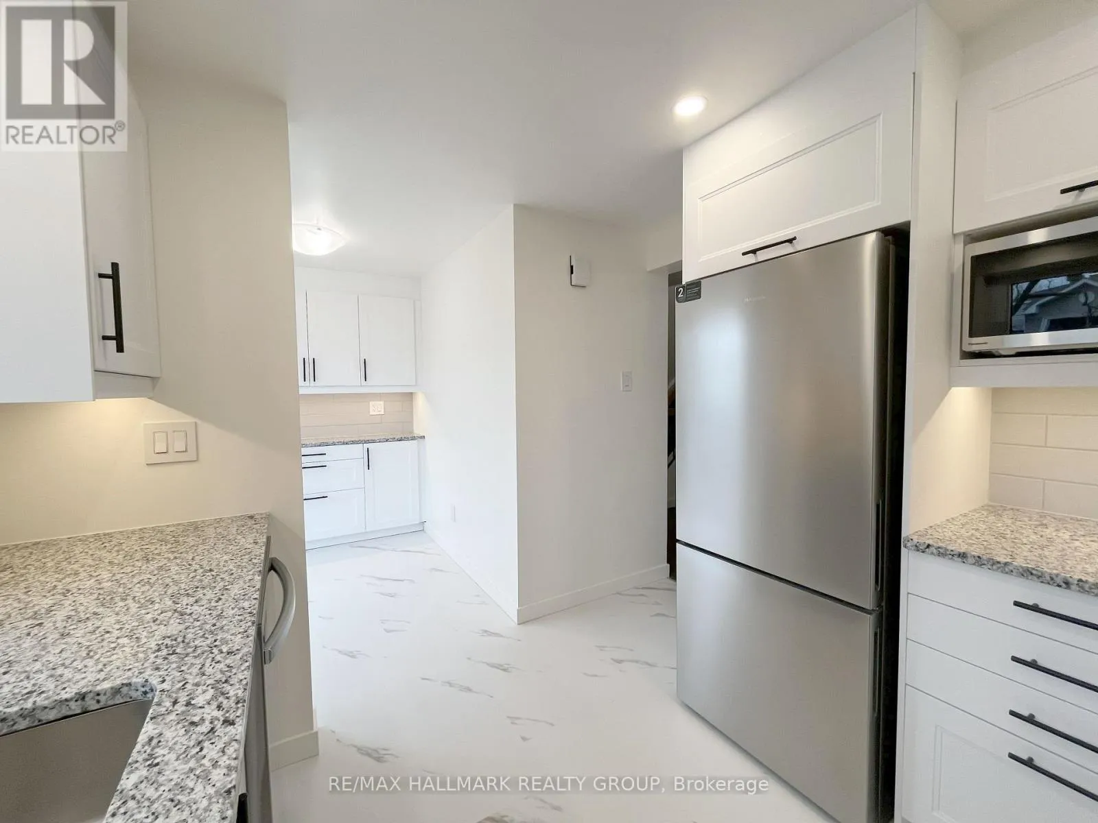 Cross Streets: Fairlawn Ave. and Esterlawn Pvt. ** Directions: Woodroffe Ave. to Lenester Ave to Failawn and Esterlawn. Welcome to 94 Esterlawn Private a beautifully updated 3 bedroom 1 1/2 bath condo with nothing to do but move in and enjoy! This multi level property has been tastefully updated with new flooring, kitchen and fresh paint. The Foyer has inside entry from the garage. The dining area overlooking the living room with an electric fireplace makes for cozy entertaining. The newly updated kitchen features granite counter tops and pot lighting. The eating area has a new coffee bar and extra cabinets opening to a generous sized balcony/deck that provides a wonderful outdoor living area. The third floor of the unit has three bedrooms and a full bathroom. The floor plan of the Primary Bedroom has been modified to include a walk in closet with a pocket door not found in the original units that provides ample storage space. A perfect location that is close to schools, public transit and is walking distance to shopping. (id:27476)