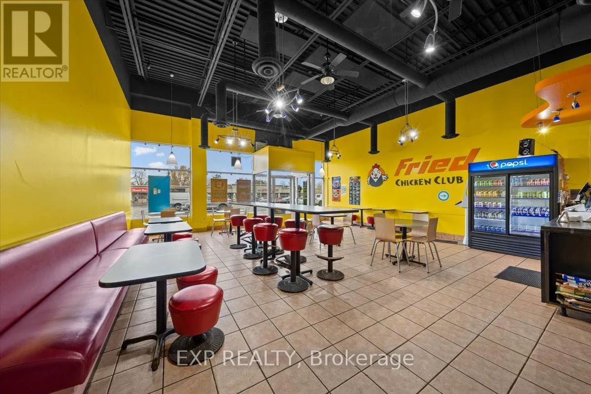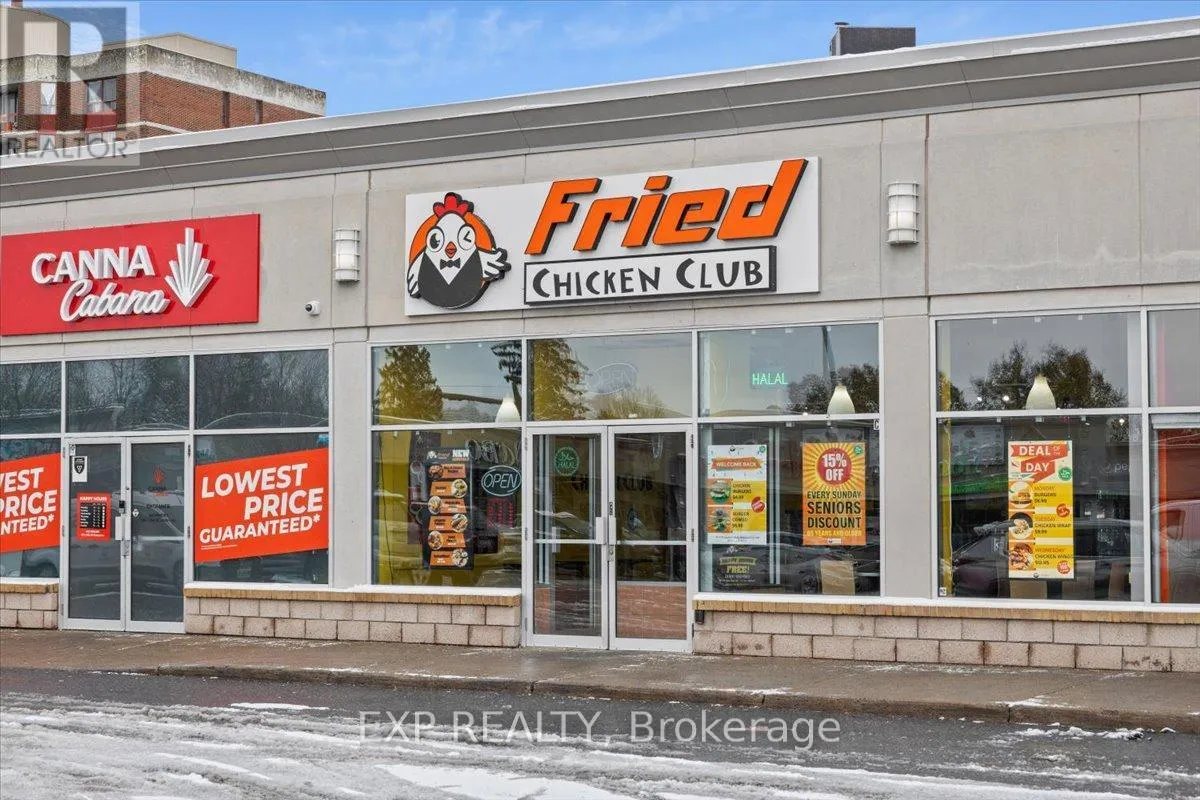 Cross Streets: St Laurent Blvd/Smyth Road. ** Directions: St Laurent at Smyth Road. Located in the Elmvale Acres Shopping Centre. PROFITABLE & ESTABLISHED QSR GENERATING APPROX. $550,000 ANNUAL GROSS REVENUE with a loyal and growing customer base. Located at one of Ottawa's busiest intersections, St. Laurent Blvd and Smyth Rd, this rare acquisition is an ideal fit for both investors and motivated owner-operators to immediately reap significant financial benefits due to strong revenue and income. Located in a prime, high-traffic plaza with NO COMPETITION for fried chicken in the area, abutting a major transit hub with maximum exposure. The location is anchored by major national tenants (Dollarama, LCBO, Home Hardware) and receives constant foot traffic from over 20 high-rise apartments, local schools, The Ottawa Hospital, and Industrial Park, all within close vicinity. The 1,580 sq ft unit with seating for 36 is fully equipped, turnkey, and benefits from top ratings on all delivery platforms. NO FRANCHISE FEES OR RESTRICTIVE MENUS. Excellent accessibility with 500+ parking spaces. Please do not approach staff directly. (id:27476)