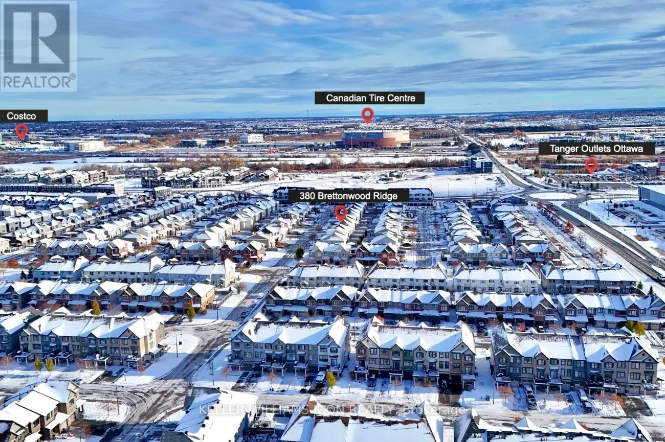 Campeau Dr to Country Glen Way to Calvington Ave to Brettonwood Ridge Welcome to 380 Brettonwood Ridge - a stunning 3-bedroom, 2.5-bath, double-garage Bedford model by Minto, nestled in the highly sought-after Arcadia community. This home features a bright, open-concept main floor with seamless flow between the living room, dining area, and kitchen. The kitchen is equipped with 5-piece stainless steel appliances and an eat-in space perfect for family meals. Hardwood floors, 9-foot ceilings, and pot lights create a modern, airy feel throughout. Upstairs, the large master bedroom offers elegant French doors, a 5-piece ensuite, and a walk-in closet. Convenient second-floor laundry adds practicality to everyday living. The fully finished basement includes a rough-in for a 3-piece bath, ideal for a recreation or office space. A double car garage completes the package. Located close to shopping, restaurants, HWY 417, Tanger Outlets, and the Canadian Tire Centre, this home is also in a top-rated school district, including All Saints Catholic, W. Erskine Johnston, and Earl of March Secondary. Perfect for families seeking style, space, and convenience in Arcadia - don't miss out! (id:27476)