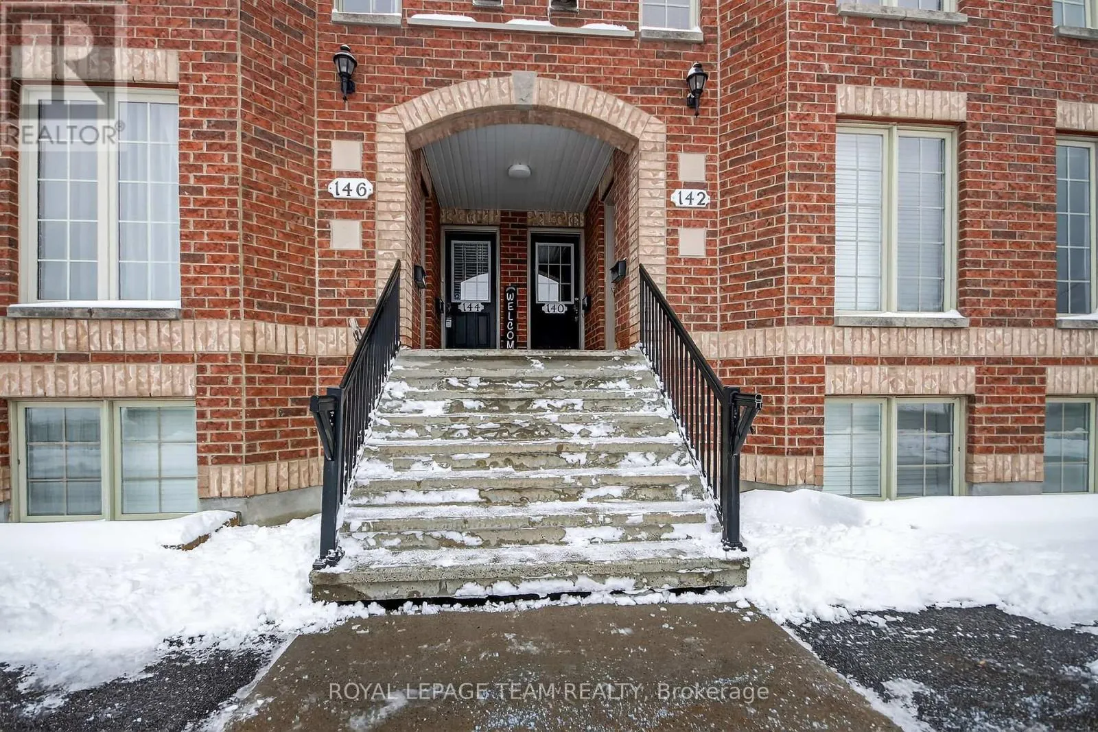 Cross Streets: Longfields Drive & Berrigan Drive. ** Directions: Corner of Longfields Drive & Berrigan Drive. Welcome to this beautifully maintained 2-storey condo offering over 1,400 sq. ft. of comfortable and functional living space. Bright and spacious, this home features 2 bedrooms, 3 bathrooms and a well-designed layout ideal for everyday living and entertaining. The open concept main floor showcases hardwood flooring throughout the living and dining areas, with a cozy gas fireplace creating a warm and inviting atmosphere. The large kitchen provides ample counter and cabinet space, new countertops and a sun-filled breakfast nook with access to a generously sized balcony, perfect for morning coffee or evening relaxation. Upstairs, you'll find two spacious bedrooms, each with its own ensuite bathroom and wall-to-wall closets. The primary bedroom also includes a private balcony, offering an additional outdoor retreat. The upper level is completed with a convenient laundry/utility room and two extra storage spaces. Additional highlights include fresh interior paint, new carpet on the staircase, one designated parking spot and plenty of visitor parking. Ideally located within walking distance to schools, parks, shopping, public transit, and other local amenities, this move-in-ready home is a fantastic opportunity for first-time buyers, downsizers, or investors alike. (id:27476)