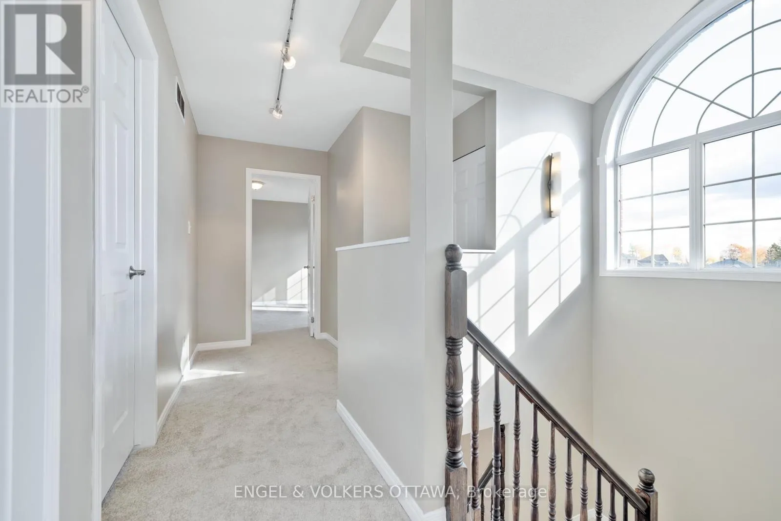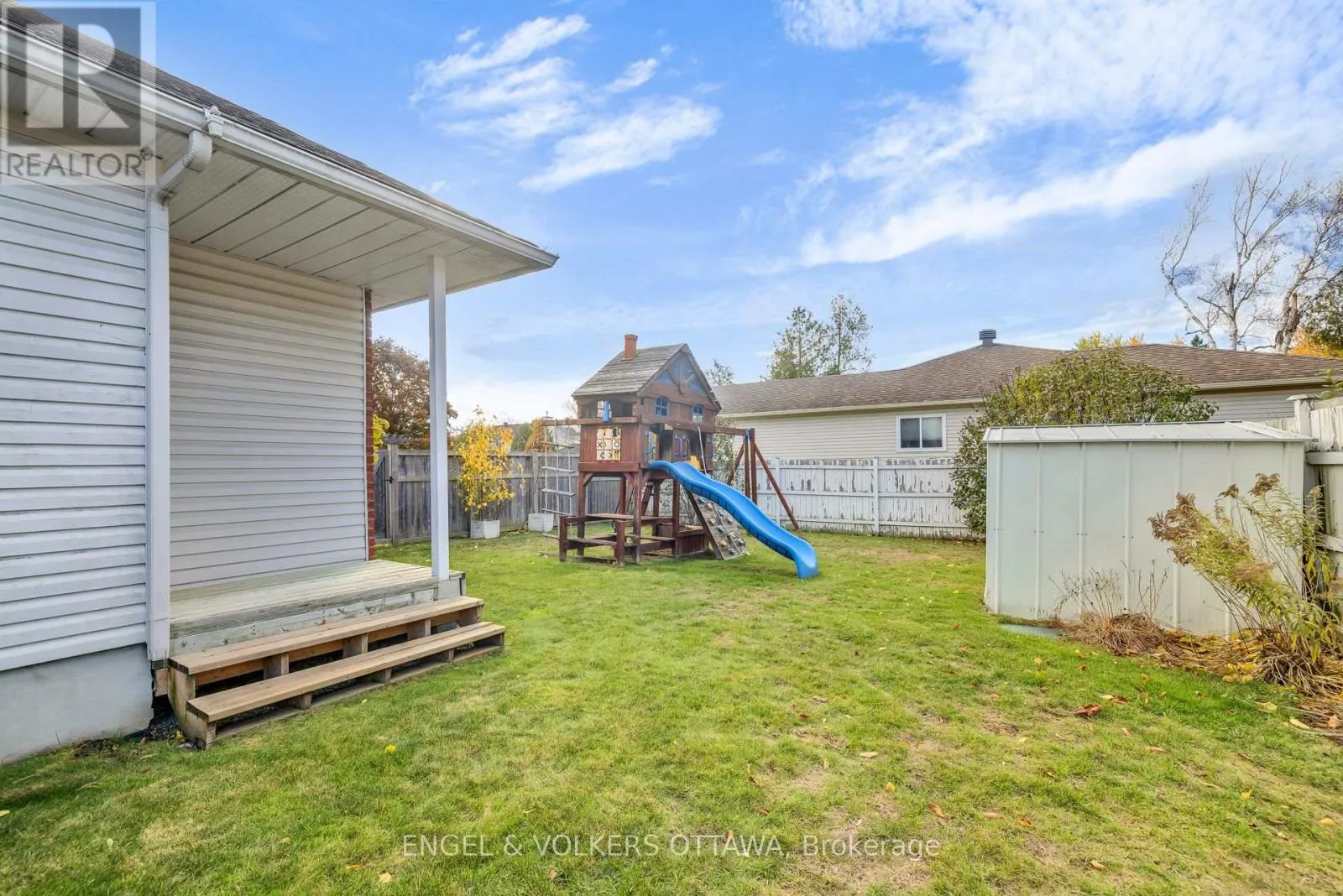Cross Streets: Carleton Cathcart Street and Caribou Ave. ** Directions: From Stittsville Main Street, turn onto Carleton Cathcart Street, home on the left. From Huntmar Drive, take Rosehill Avenue, then left onto Carleton Cathcart Street, home on the left. Modern comfort meets timeless design in this substantially updated, bright, family-friendly home set on a prime corner lot in Stittsville. The main level is bright and inviting, with a gas fireplace anchoring the living room and rich hardwood flooring adding warmth to the dining area. The spacious eat-in kitchen offers ample cabinetry and patio doors that fill the space with natural light. Upstairs, a sunlit hallway framed by an elegant arched window leads to three generous bedrooms, including a primary retreat with a walk-in closet and 5-piece ensuite. A 4-piece main bathroom completes the upper level.The finished lower level extends the living space with a large family room, laundry area, and abundant storage. Outdoors, a private, fully fenced yard invites both relaxation and play, complete with an interlock patio, gazebo, and play structure-a perfect backdrop for family living and entertaining. The home's timeless brick exterior and oversized double garage add to its classic curb appeal, all within close reach of parks, schools, and Stittsville's many amenities. (id:27476)