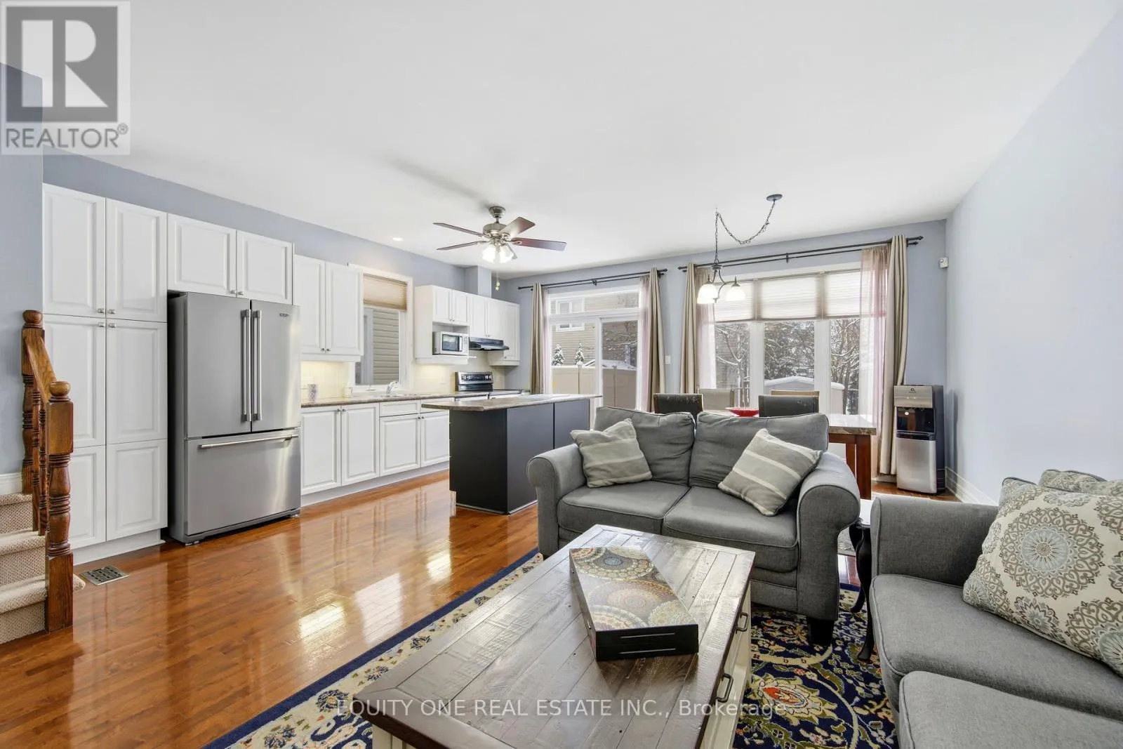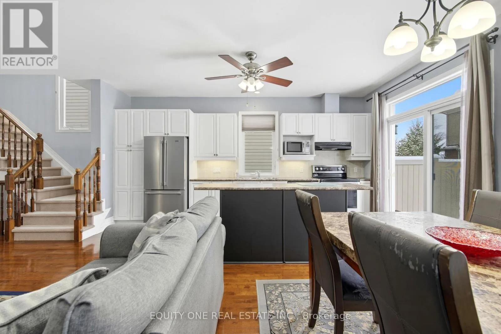 Stedman & Parkin Welcome to this beautiful semi-detached 2-storey home offering 3 bedrooms, 3 bathrooms, and a fully finished basement! The main floor features gleaming hardwood floors, a bright open-concept living and dining area, and large windows that fill the space with natural light. The patio door off the living room leads to a fully fenced backyard, perfect for relaxing or entertaining. The modern kitchen showcases classic white cabinetry and stainless steel appliances, while a convenient powder room completes the main level. Upstairs, you'll find three spacious bedrooms, including a primary suite with a 4-piece ensuite and soaker tub, plus a full main bathroom and second-floor laundry for added convenience. The finished lower level offers a cozy family room with two large windows, making it bright and inviting-ideal for a playroom, home office, or movie night. Located close to Findlay Creek, South Keys shopping, restaurants, schools, parks, and more-this is the perfect place to call home! (id:27476)