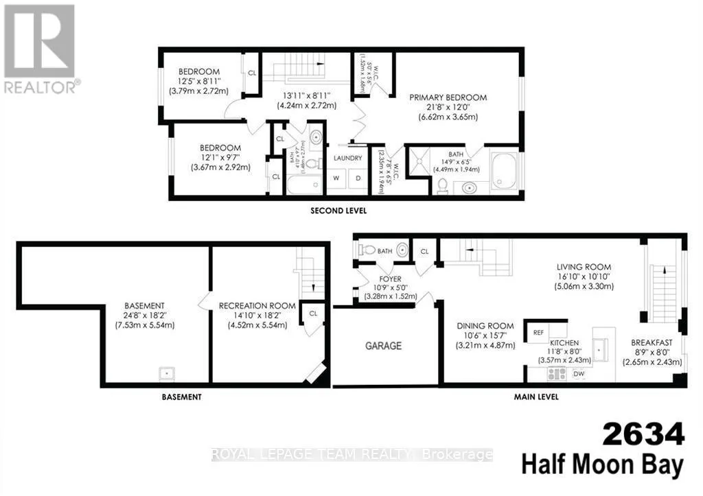 Cross Streets: Half Moon Bay rd / Espin Heights. ** Directions: Head south on Longfieds Dr, turn right onto Cambrian Rd, right again on Tucana Way, right onto Half Moon Bay Rd, left again at the intersection, property on the left. This beautifully updated 3-bedroom, 3-bathroom townhome with a finished basement is ready for your family to move in! Nestled in the prestigious Stonebridge community, this home offers modern comfort and everyday convenience in an unbeatable location. Step inside to a bright, spacious foyer with a walk-in closet, leading into an open-concept living and dining area that's perfect for family gatherings. The modern kitchen features sleek stainless steel appliances and a cozy breakfast nook, ideal for your morning coffee or casual meals together. Upstairs, the primary suite is a true retreat with TWO walk-in closets and a luxurious 4-piece ensuite complete with a relaxing soaker tub. Two additional bedrooms share a stylish 4-piece bathroom, and second-floor laundry adds an extra touch of convenience. The finished basement extends your living space with a warm and inviting family room featuring a gas fireplace, perfect for movie nights or quiet evenings in. There's also a generous 28 sq. m (300 sq. ft.) storage area to keep everything neatly organized. Outside, enjoy a fully fenced backyard offering privacy and space for kids to play or for summer barbecues. Ideally located within walking distance to Tucana Park, HMB District Park, St. Cecilia School, Stonebridge Golf Club, and the Minto Recreation Complex. Top-rated schools like Half Moon Bay Public, St. Kateri Elementary, and St. Joseph High are all nearby. Come see for yourself... and make 2634 Half Moon Bay Drive your new address! (id:27476)