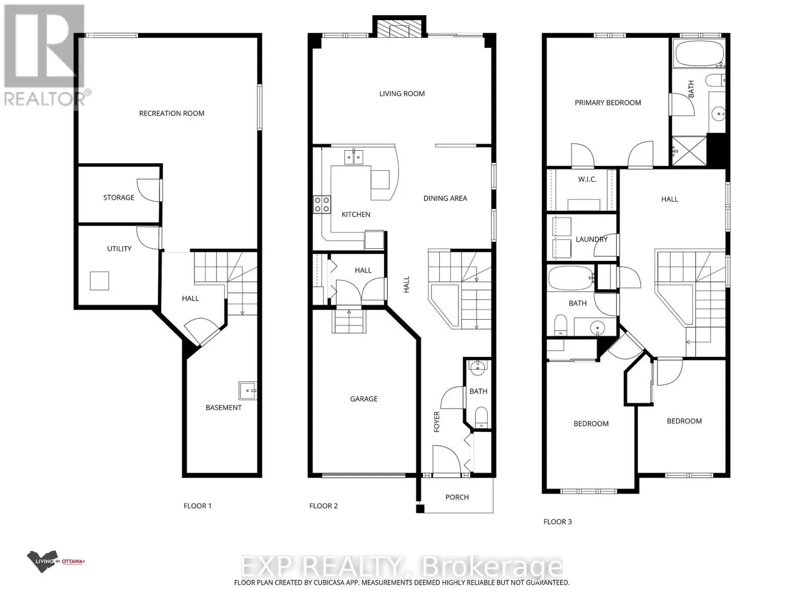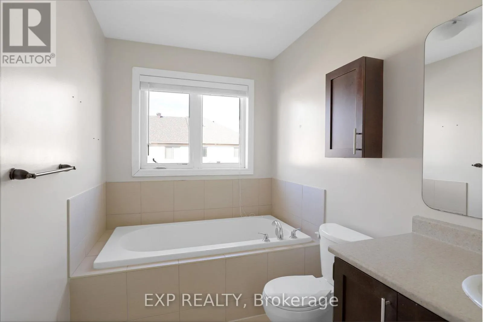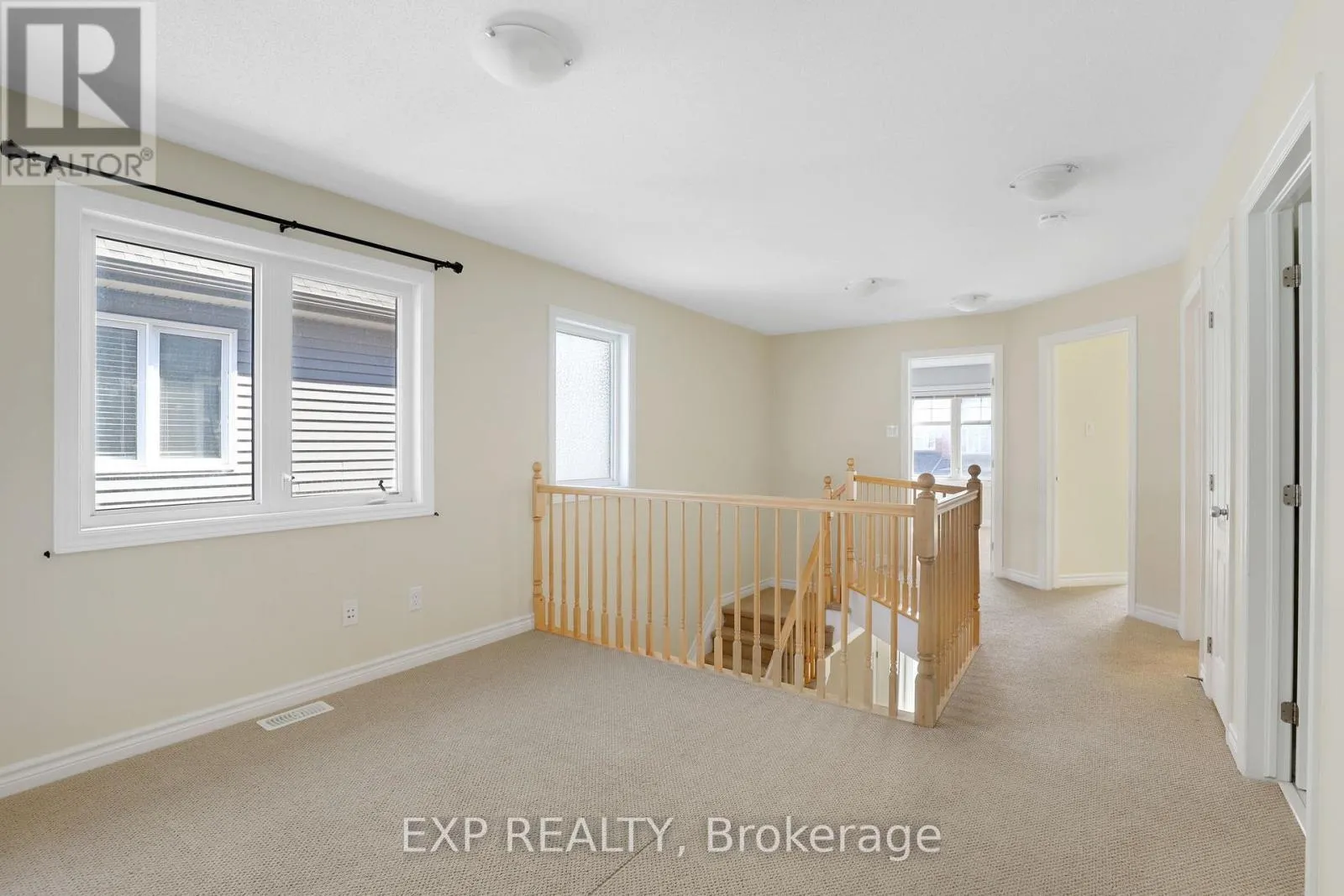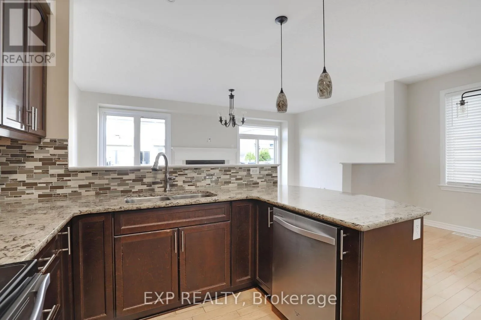 Cross Streets: Moorpark and Akerson. ** Directions: From Hazeldean or Robertson, head south on Eagleson Road. Turn right on Cope Drive, right on Akerson Road, then right on Moorpark Avenue. Welcome to this beautifully maintained Tartan Homes Magnolia model in the heart of Emerald Meadows. Step inside to find a bright, open-concept main floor featuring a spacious kitchen with quartz countertops, tiled backsplash, and stainless steel appliances all overlooking the dining and family room with hardwood floors and a cozy gas fireplace. Some areas freshly painted, this home feels warm, modern, and move-in ready. Upstairs, you'll love the generous primary suite with a walk-in closet and a large ensuite complete with a soaker tub and separate shower. Two additional bedrooms, a versatile loft (perfect for a home office or playroom), upper-level laundry with built-ins, and a full bathroom complete the second floor.The finished lower level adds even more space with a large rec room, rough-in for a future bathroom, and plenty of storage space. Outside, enjoy a private yard and an attached garage equipped with an EV charger. Located just minutes from Kristina Kiss Park and the Canada Trans Canada Trail, this home is also within walking distance from various shopping plazas and supermarkets, including RealCanadian Superstore, Metro and Walmart. It offers excellent access to public transportation, with nearby bus stops providing convenient connections to downtown. Combined with top-rated schools, this is a fantastic opportunity to own a well-updated home in one of Kanata's most family-friendly neighbourhoods. (id:27476)