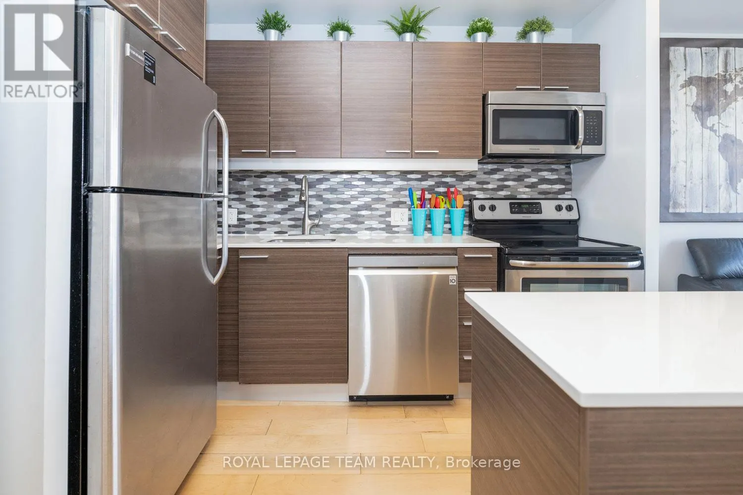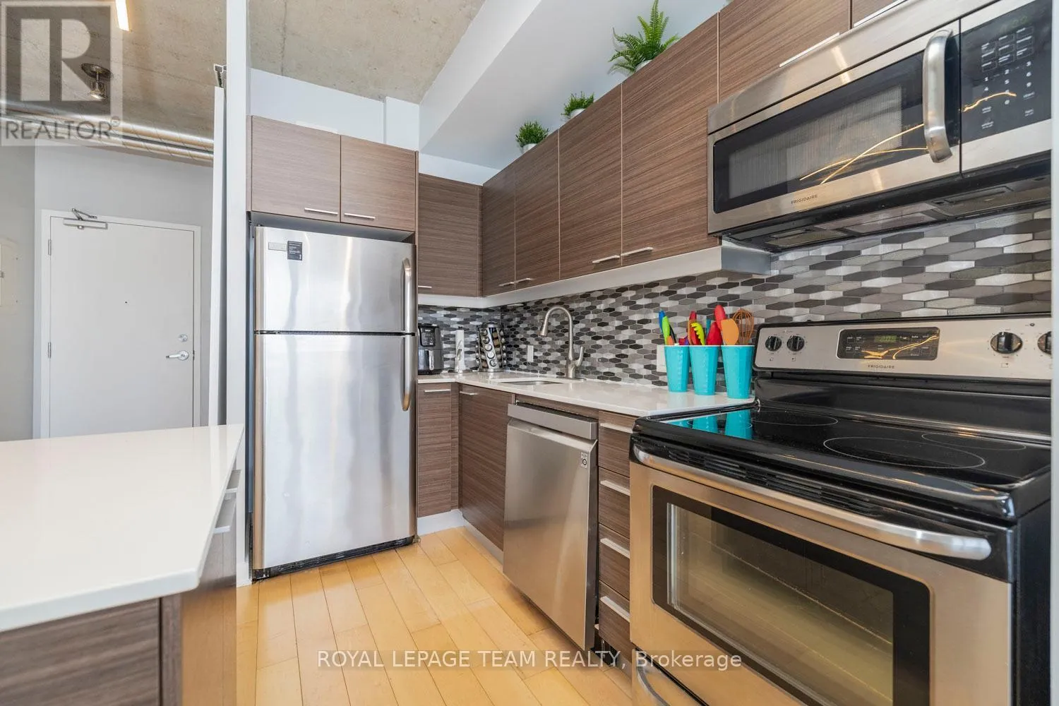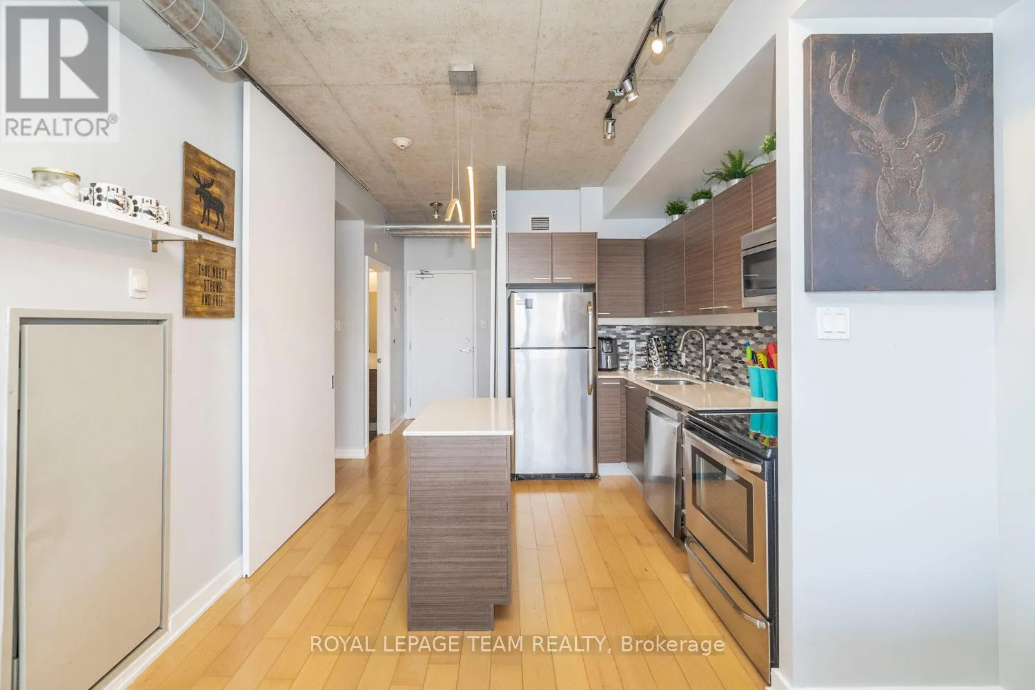 Cross Streets: Bank and Gladstone. ** Directions: Corner of Bank St and Gladstone Ave. Welcome to Unit 514 at 354 Gladstone - an excellent fully furnished rental in one of Centretown's most vibrant boutique buildings. This bright and stylish 1 bed + den condo offers modern finishes, warm natural light, and turnkey convenience. The kitchen is sleek and functional with stainless steel appliances, quartz countertops, and a geometric tile backsplash. The open living space flows to a generous private balcony with sweeping city views - ideal for morning coffee or after-hours wind-downs. The den provides smart flexibility for work-from-home days or extra storage. The spacious bedroom features ample closet space and clean contemporary lines. Enjoy a modern bathroom with tile surround, in-unit laundry, and cool industrial loft details like exposed ductwork and concrete ceilings. Amenities include a gym, party room with kitchen and pool table, a theatre screening room, courtyard access, and concierge service. Walk to groceries, top restaurants, and transit. Just move in and enjoy! Plan to visit soon! (id:27476)