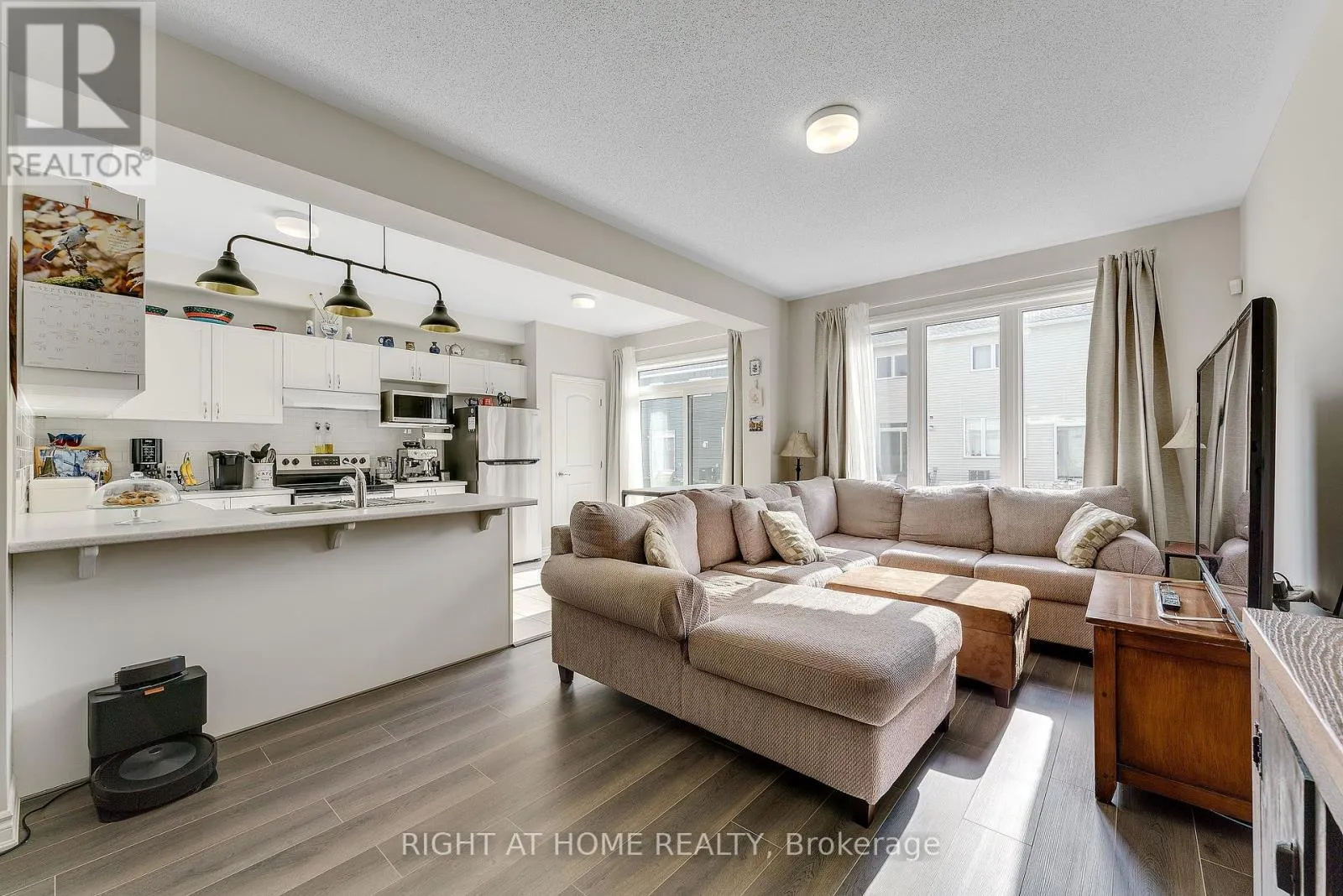 From East exit 142 for Palladium Dr., left onto Palladium Dr., right on Palladium Dr., at the round about, take 2nd exit to Derreen Ave. SNOW REMOVAL FOR THIS WINTER WILL BE COVERED AS BONUS! Discover the ultimate rental opportunity in the sought-after Kanata Connections community! This immaculate, three-year-old townhome offers the perfect blend of modern design and unmatched convenience, featuring 3 spacious bedrooms + LOFT ON THE STAIR LANDING and 2.5 luxurious bathrooms, tailored for today's dynamic living.The main floor is an entertainer's dream: a bright, open-concept space bathed in sunlight, thanks to the desirable south-facing backyard. The chef-inspired kitchen boasts sleek stainless steel appliances and a must-have walk-in pantry.Upstairs, retreat to your private sanctuary: a spacious primary suite complete with a large walk-in closet and a private, upscale ensuite. The upper level also provides two comfortable secondary bedrooms and a dedicated, convenient laundry room. The finished lower level is incredibly versatile-imagine a perfect home gym, a cozy movie room, or a dedicated workspace. The generous unfinished area ensures you have ample, clutter-free storage.Location is everything! You'll live just moments from top-tier shopping and entertainment, including Tanger Outlets, Costco, and the Canadian Tire Centre. With quick access to Highway 417 and nearby schools, your commute and errands will be a breeze.Please note: Photos were taken prior to the current tenancy. Secure this beautiful townhome and settle into your new sanctuary just in time for the holidays! (id:27476)