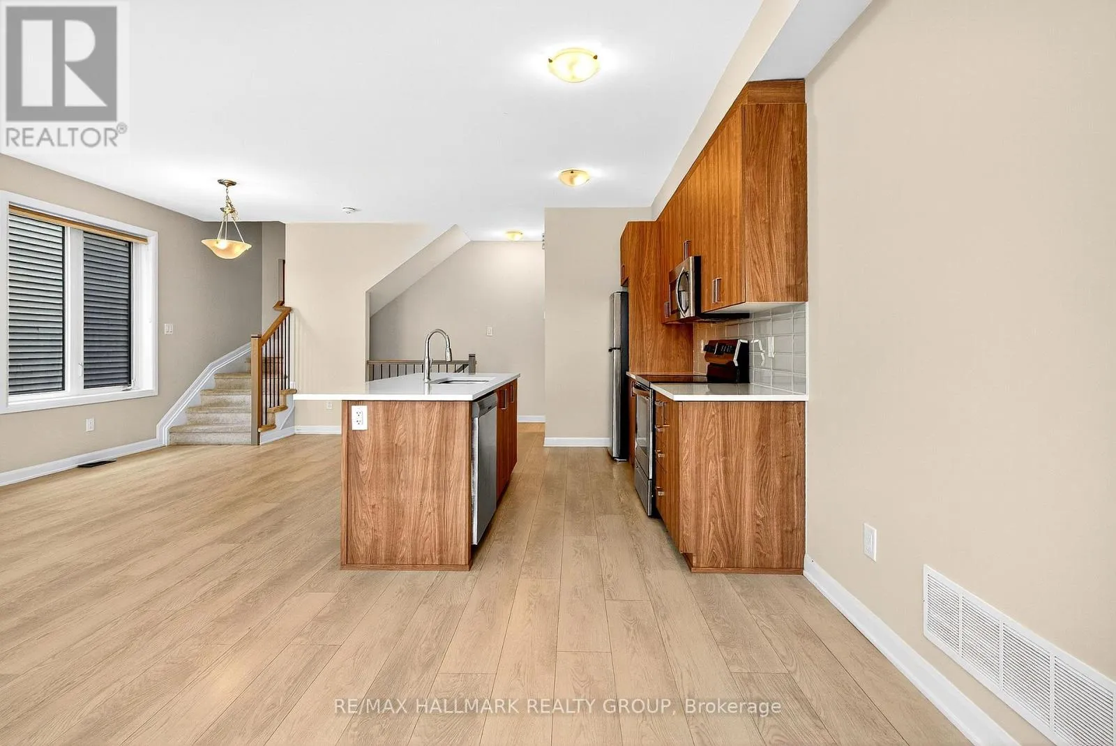 416 heading South, exit at Fallowfield and turn right then left onto Moodie drive, left on Barnsdale Rd, Left on Inver Lane, right on Capamore, left on Lynn Coulter, right on Raheem Court and house is on the left. Stylish and move-in ready, this newly painted 3-bedroom end-unit townhome in Barrhaven's sought-after Half Moon Bay community offers a bright, modern open-concept layout perfect for today's lifestyle. The main level features a welcoming foyer with convenient laundry and storage, while the second level boasts a sun-filled kitchen with a central island, open living and dining areas, a functional balcony, and a 2-piece bath. Upstairs, three comfortable bedrooms and a full bathroom provide ample space for family living. As an end unit, this home enjoys extra natural light, added privacy, and great curb appeal-all in a family-friendly neighborhood close to parks, schools, and amenities. (id:27476)