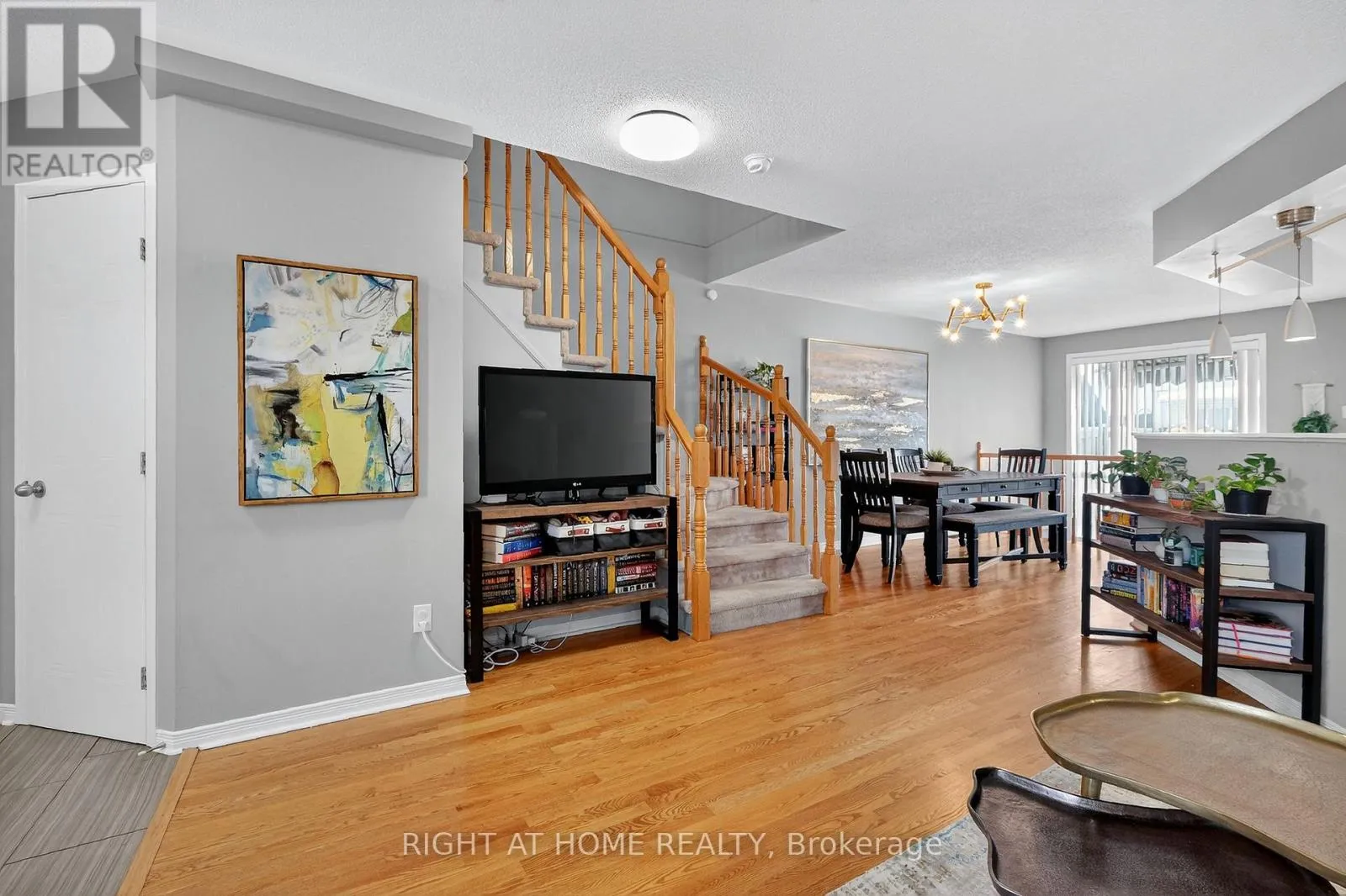 Cross Streets: Portobello and Nesting. ** Directions: East on Innes Rd., left on Portobello Blvd., left on Nesting Way. This home will have you "falling for Fallingbrook"! Located in a quiet Orleans neighbourhood close to Sobey's (groceries), top-notch schools, parks, restaurants, transit, and the Fallingbrook Community Centre, this 3-bed, 3-bath townhouse with 3 parking spots is the perfect blend of comfort and community. Step inside to discover this popular open-concept model. The main floor foyer has garage access, closet space, a convenient powder room, and stylish flooring throughout. Enjoy the separate living and dining rooms with new lighting and backyard access. Did I mention the fenced yard, awning, and the brand-new deck? The kitchen has plenty of storage, double sinks, and a flex space. Maybe use it for an eat-in kitchen, coffee bar, or workspace. All appliances are included. Upstairs, you'll find a spacious primary bedroom with a wall of closets and a cheater door to the fully renovated bathroom... it is a beauty! It has a large tub and shower with glass doors and plenty of vanity storage. No expense was spared on this reno. Two additional bedrooms with newer flooring and a hall closet complete this top level. Wait, there's more! An open-style staircase with floor-to-ceiling windows leads you to the lower-level family room, making it feel so cozy and truly connected to the rest of the home. Enjoy the gas fireplace, newer flooring, a laundry area with tons of storage, and a brand new modern 3-piece bath. Updates: lower-level 3-piece bath, interlock walkway, windows (upstairs & front living room), backyard deck, and freshly steam-cleaned carpets (2025). Washer & Dryer (2024). Second floor 4-piece bath and the garage insulation & workbench (2020). Driveway repaved (2018). Foyer, powder & kitchen tile upgrade (2017). Roof (2014). Don't miss out on this incredible opportunity to make 812 Nesting Way your new home. Schedule a viewing today. 24 hours irrevocable on all offers. (id:27476)