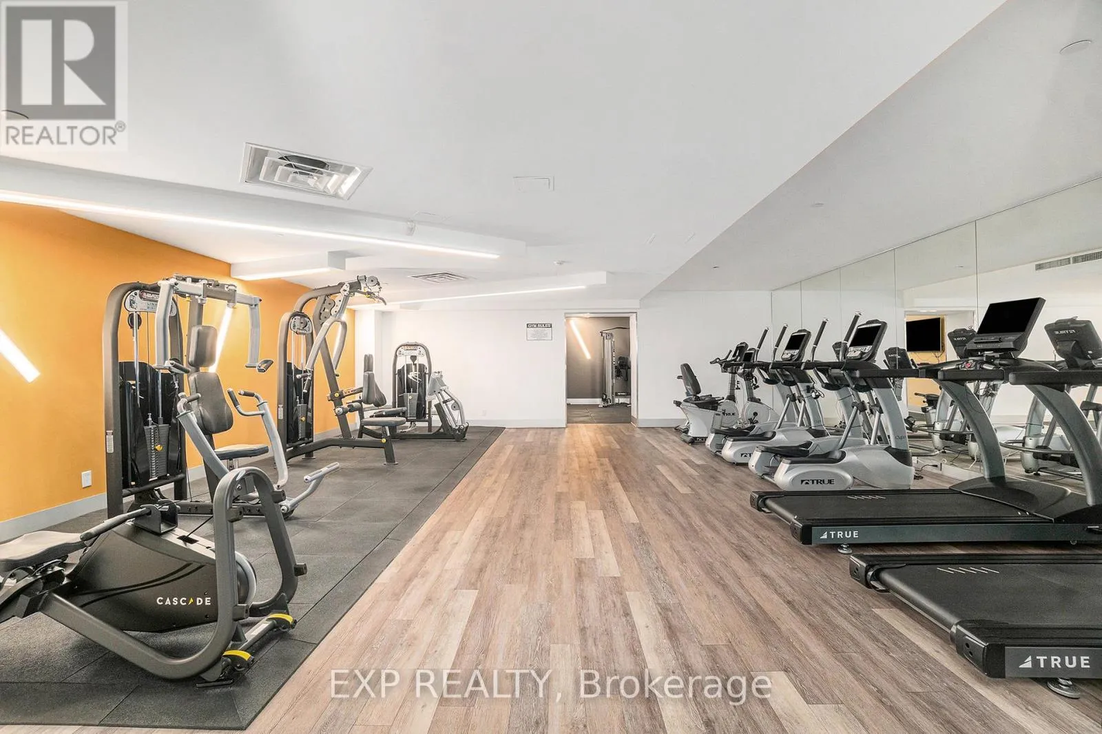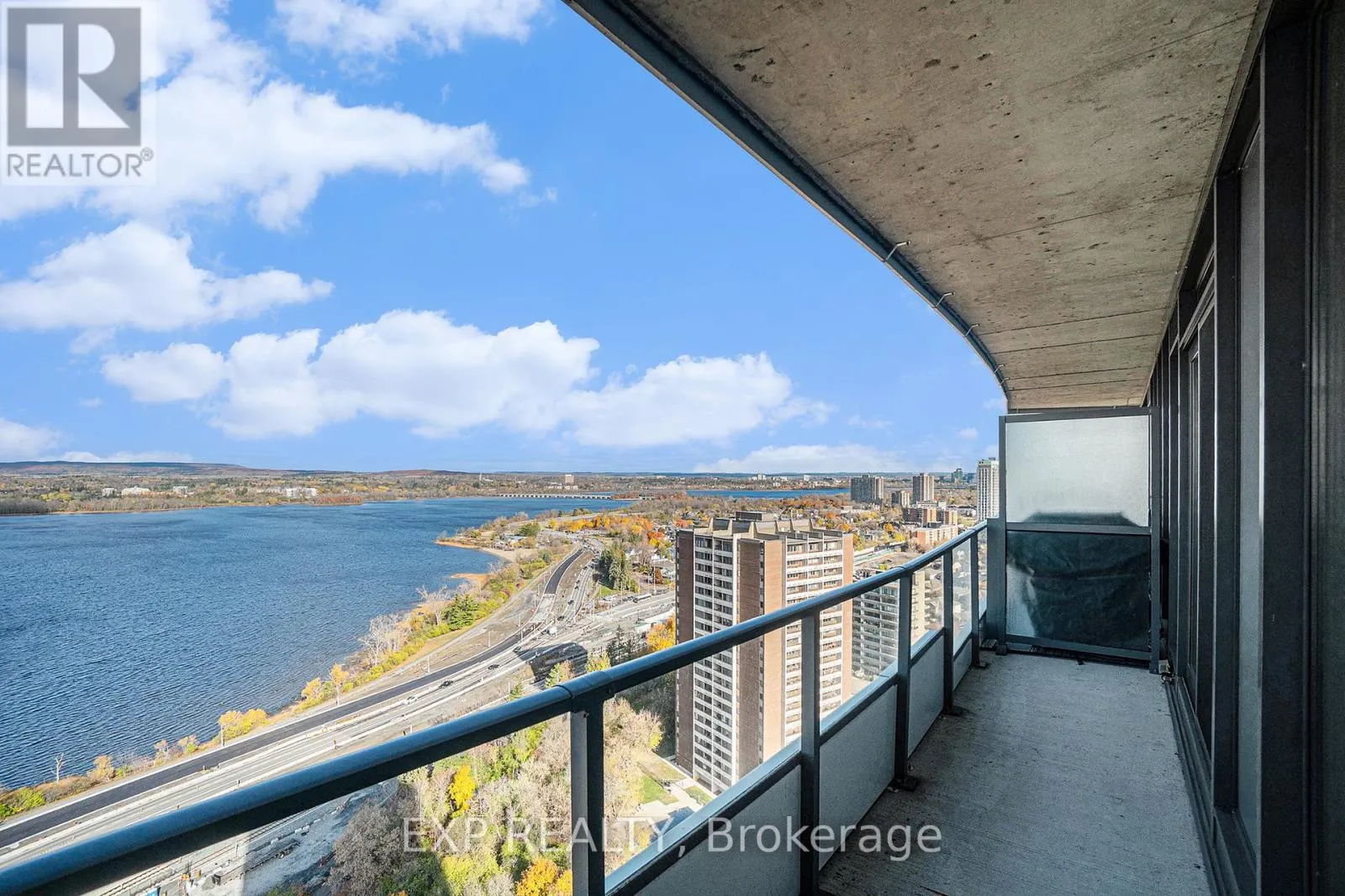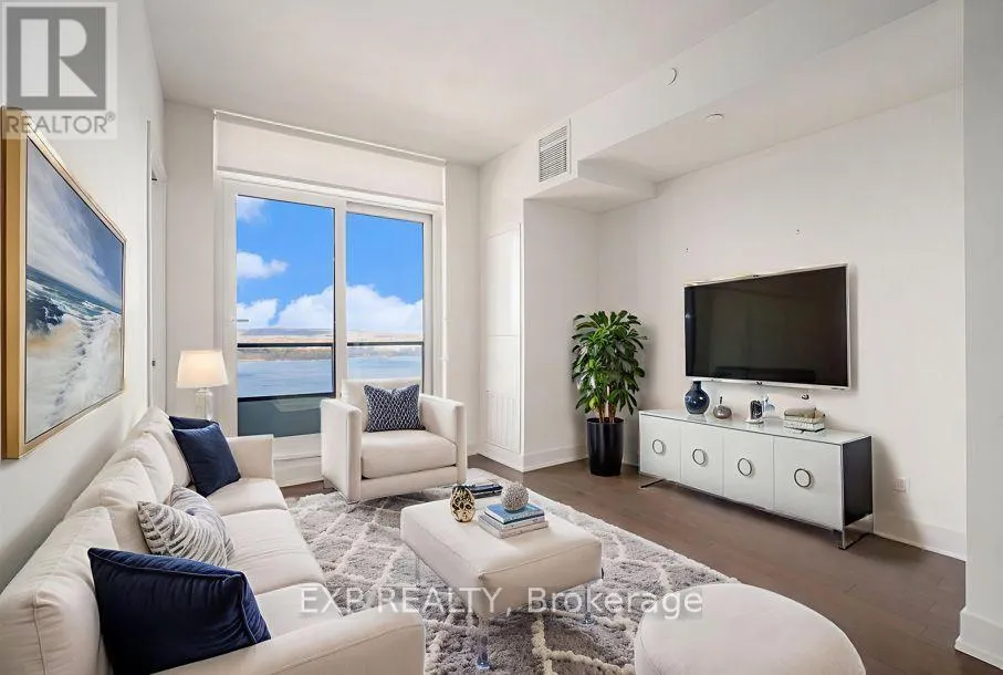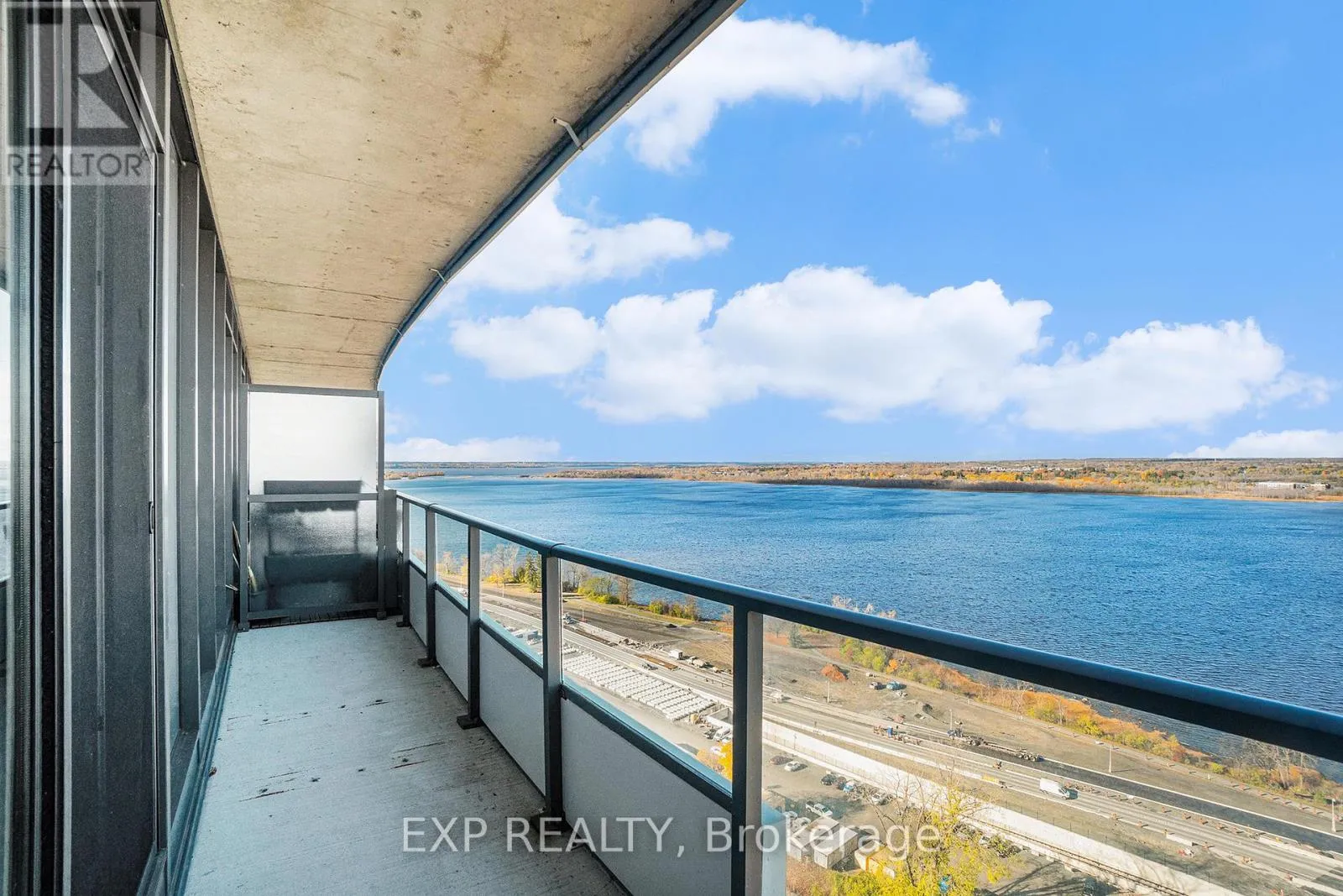 Cross Streets: Richmond Road & Westboro. ** Directions: Drive Richmond Road. Located between Broadview Avenue and Golden Avenue. Welcome to the Penthouse level at UpperWest, a prestigious address in the heart of Westboro! Prepare to be captivated by A SPECTACULAR PANORAMIC VIEW of the Ottawa River and Gatineau Hills from this exquisite 1-bedroom plus den condo. Step inside and immediately notice the 9-foot ceilings and a kitchen featuring an upgraded quartz-topped island and sleek stainless steel appliances. Carpet-free and a convenient in-suite laundry. Den, bedroom and bathroom are all thoughtfully equipped with a pocket door. The 100 sq ft balcony (complete with a natural gas BBQ hookup) allows a 180 degree view of the Ottawa River. LRT Station and Bikepath at your doorstep, Westboro Beach, transit, trendy restaurants, cafes, and all the sought-after amenities Westboro is known for are just a short walk away. Building amenities include a spectacular terrace and outdoor BBQ, an oversized gym and a social party lounge. The "Underground" parking is located on the 4th floor. Some photos are virtually staged. (id:27476)