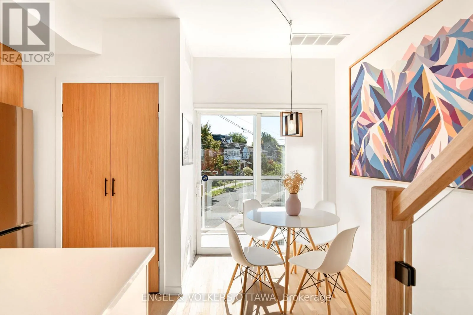 Corner of Sherbrooke and Wellington. Welcome to this unique offering in the heart of Hintonburg! This bright and stylish 2-bedroom 2 storey condo offers stylish and thoughtful updates throughout. The Scandinavian-inspired kitchen features sleek quartz countertops, two-toned cabinetry, an extended island, and a cozy eat-in area that's perfect for everyday meals and easy entertaining. An incredible amount of windows throughout fill the home with natural light. A modern staircase leads to the upper level, where you'll find two generously sized bedrooms and a well-appointed bathroom. Step outside to two private balconies - ideal spots for morning coffee, relaxing in the evening, or taking in the neighbourhood vibes. Just steps from Hintonburg's best restaurants, cafés, galleries, and boutique shops, this home offers true low-maintenance urban living. Enjoy the convenience of in-suite laundry, a dedicated parking at your door and the LRT only minutes away! Don't miss out, this exceptional home is a standout. Book your private showing today! (id:27476)