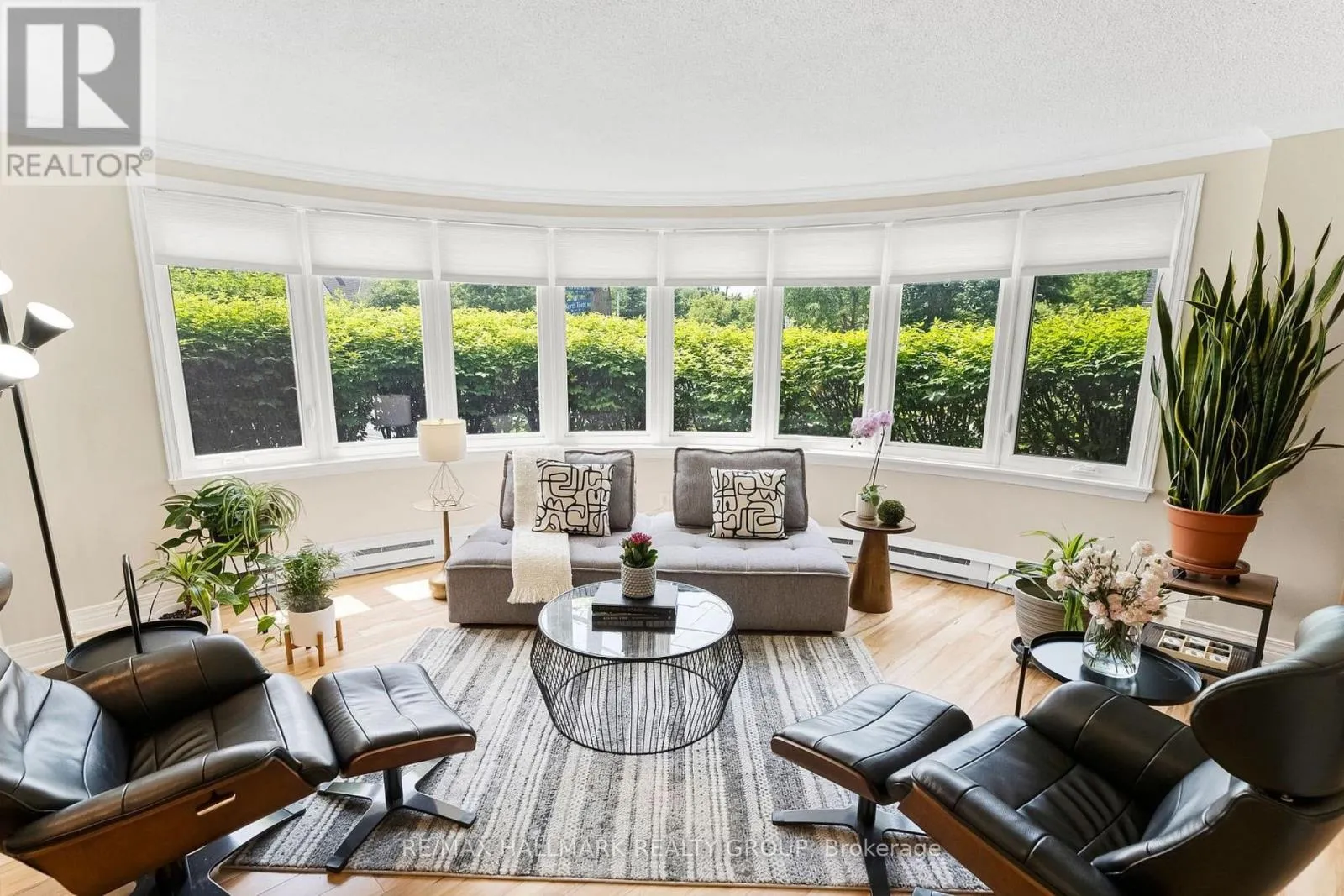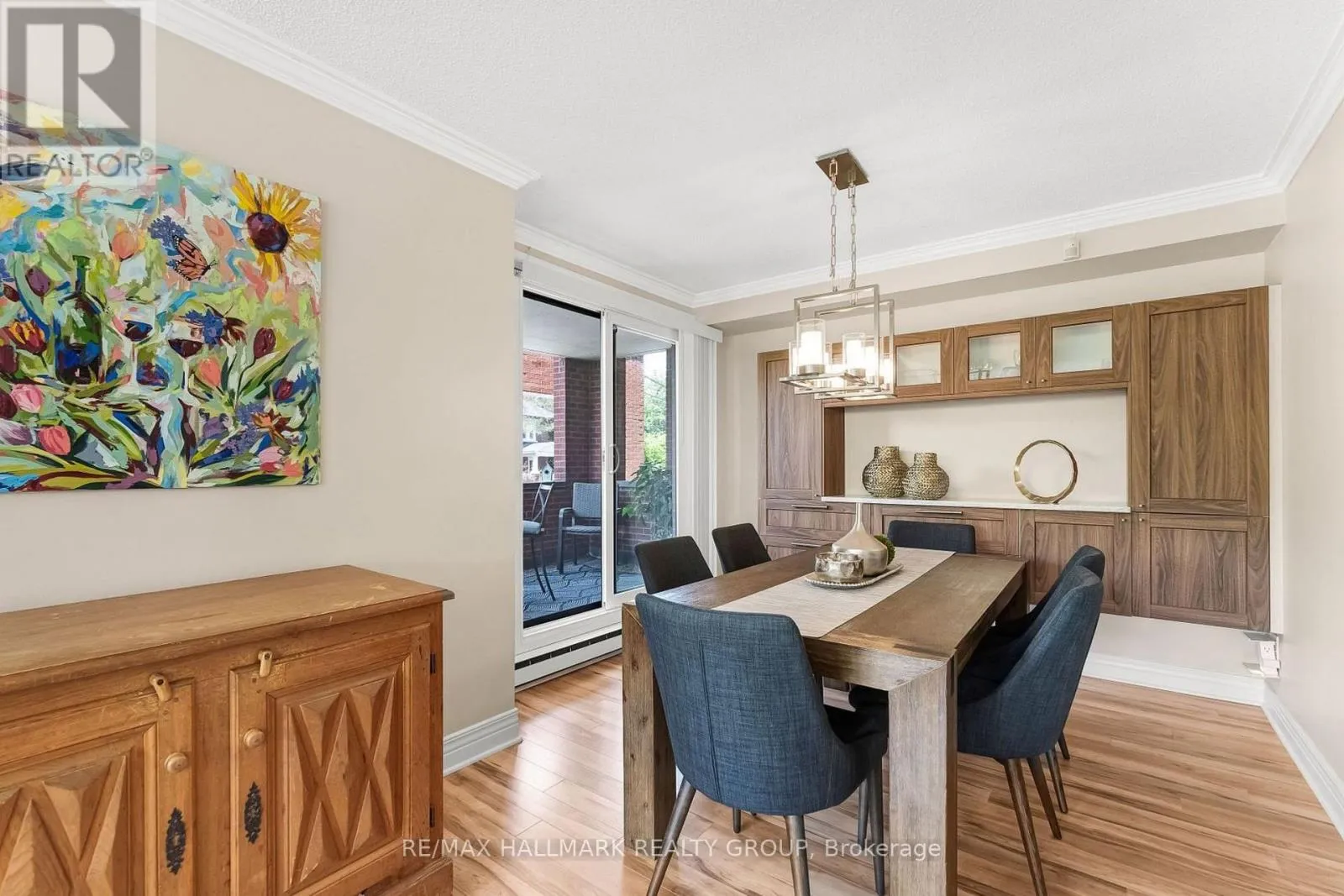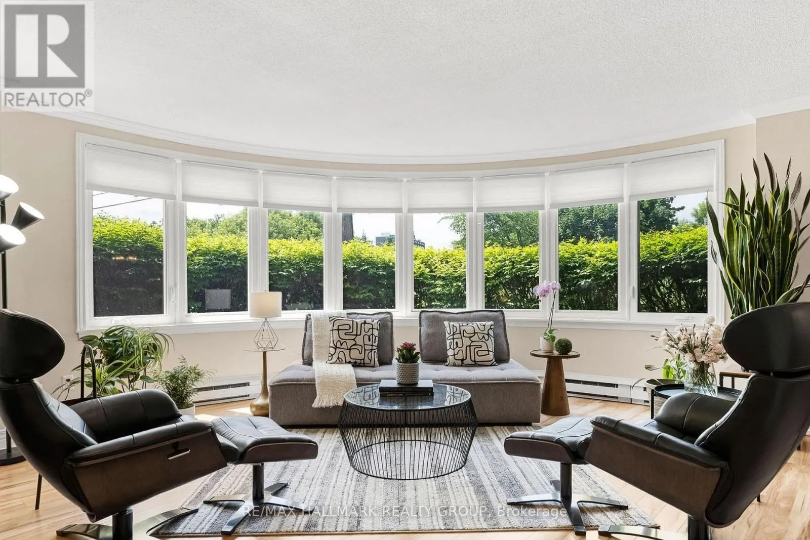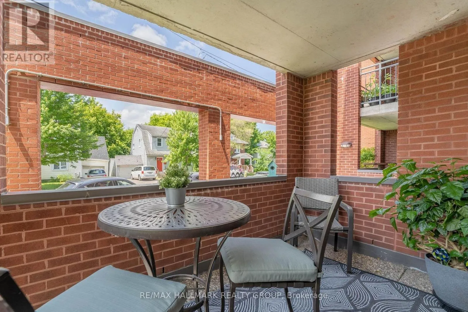 Cross Streets: Donald Street and North River Road. ** Directions: Property is on the corner of North River Rd and Donald St. Welcome to Unit 106 at 969 North River Road, a bright and well-maintained 2-bedroom, 2-bathroom ground-floor condo in a quiet, well-managed building steps from the Rideau River. This spacious layout offers an open living and dining area with large panoramic windows that bring in natural light, while mature landscaping adds privacy. The kitchen flows comfortably into the main living space, and both bedrooms are generously sized. Two full bathrooms have updated glass shower doors and added storage. Recent improvements include fresh paint, newer appliances, an owned hot water tank, and a replaced furnace and A/C system for peace of mind. A standout feature of this home is the private patio, offering a rare amount of outdoor space for a condo in this location. Residents also enjoy access to a quiet inner courtyard cared for by the building's gardening committee. Rideau Gate is known for its strong management, underground parking, secure entry, elevator access, and exclusive storage lockers.This central location offers excellent walkability with quick access to the Rideau Sports Centre, Adà we pedestrian bridge, river pathways, and nearby parks. Transit is close and frequent, and Tremblay Station is about one kilometre away for VIA Rail and O Train service. Shops, restaurants, and everyday amenities are within a short walk. A well-kept home in a connected, convenient setting. Book your showing today. (id:27476)