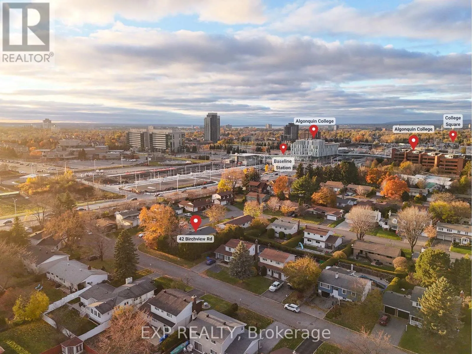 Cross Streets: Birchview Road x Andover Street. ** Directions: Head north on Woodroffe Avenue toward Parkglen Drive. Turn right onto Parkglen, then make another right onto Andover Street. Continue until you reach Birchview Road. Welcome to 42 Birchview Road, a spacious two-unit bungalow in Nepean's Ryan Farm area offering excellent income potential in one of Ottawa's most rentable locations. This legal duplex provides 8 bedrooms and 4.5 baths across two self-contained units and is within walking distance of Algonquin College, the Baseline transit hub, and the shopping and restaurants at College Square. Perfect for investors or owner-occupiers seeking rental income, this home sits on an extra-large private corner lot lined with mature hedges. The main level features 4 generous bedrooms, including a primary with a full ensuite and pass-through closets, 2.5 bathrooms, a bright open living and dining area, and a large eat-in kitchen with gas and electric stove connections and stainless steel appliances. Hardwood and ceramic flooring add comfort throughout. The fully independent lower suite offers 4 additional bedrooms, including one with an ensuite, 2 bathrooms, an open kitchen, and in-unit laundry. Appliances include 36-inch refrigerators, an oven with rangehood, and a 5-element cooktop. Key updates include a finished basement, new main floor kitchen and baths, new roof (2022), new furnace (2025), fresh paint (2024-2025), and full exterior pest-proofing. Additional features include a 74-gallon commercial-grade hot water tank and ESA certification. Development potential adds significant value with coach house infrastructure already installed, including buried water, gas, drainage, and electrical lines, plus the option to add a second driveway on the west side of Birchview Road. The attached garage includes rough-in wiring for a future workshop or home office, and the yard features a large storage shed. Ample parking is available on the wide driveway. 42 Birchview Road is a rare opportunity to own a versatile, income-producing property with future upside on a quiet street close to transit, Algonquin College, shopping, and major amenities. Some photos are virtually staged. (id:27476)