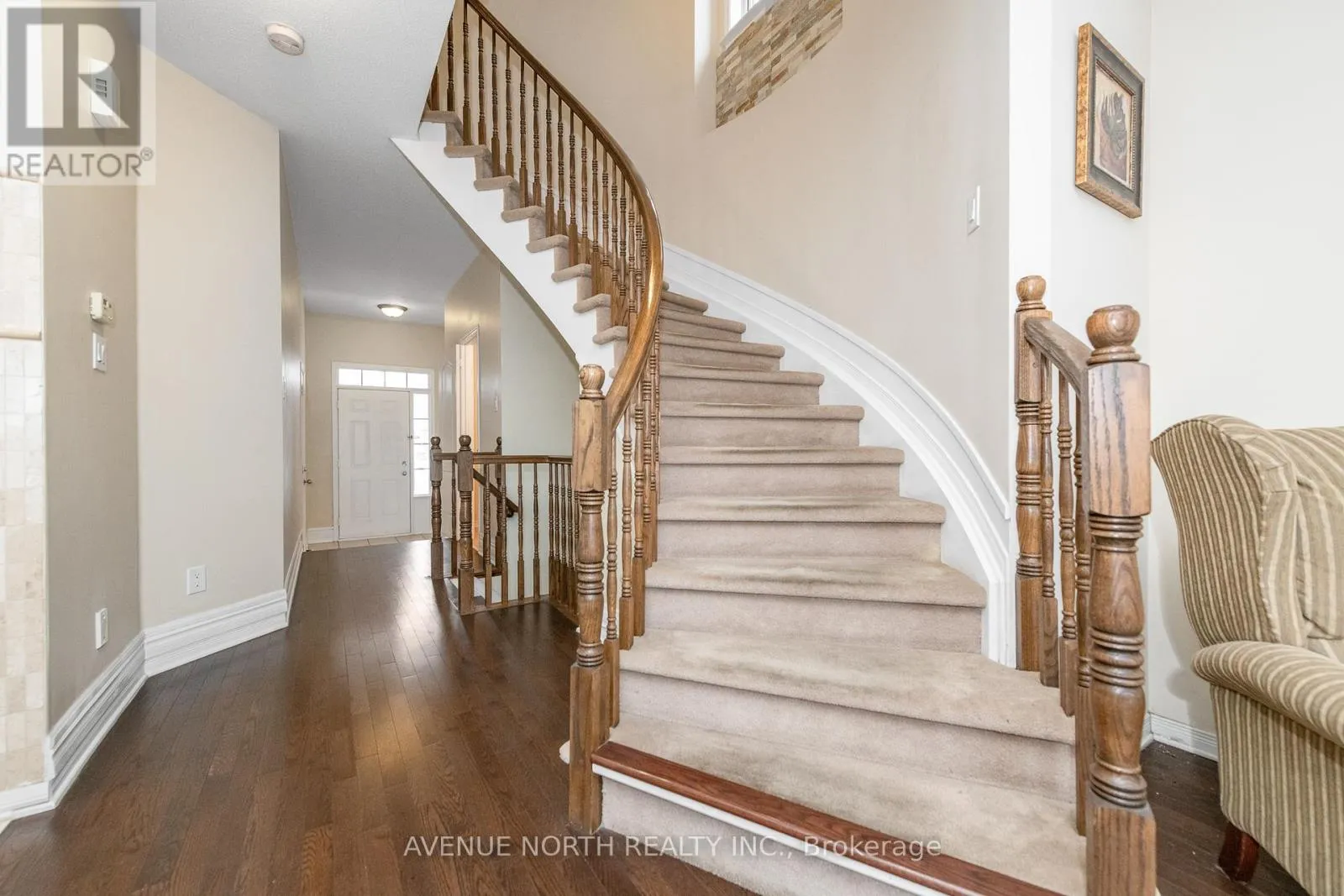 Cross Streets: Canyon Walk & N Bluff. ** Directions: Canyon Walk to Bluff to Royal Fern. Rarely offered end-unit Richcraft Carlisle model! The open-concept main floor showcases rich hardwood floors, 9 ft ceilings, a striking spiral staircase, accent wall, stainless steel appliances, a large walk-in pantry, and oversized windows that bathe the space in natural light. The primary bedroom features a generous walk-in closet and a luxurious 4-piece ensuite with a soaker tub and separate shower. The second level offers two additional spacious bedrooms, a 4-piece bath, and convenient laundry. The finished lower level includes a gas fireplace. (id:27476)
