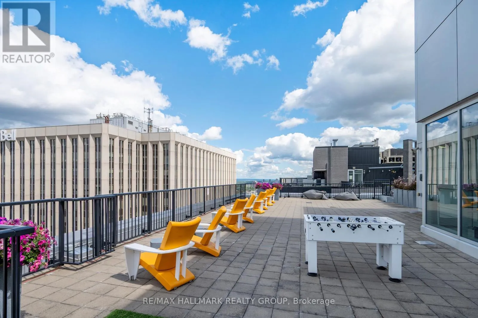 Cross Streets: Metcalfe St. & Nepean St. ** Directions: Corner of Metcalfe Street and Nepean Street. Welcome to The Surrey at Tribeca East! This beautifully maintained 1 Bedroom + Den condo offers 753 sq. ft. of bright, open-concept living space on the 19th floor, showcasing spectacular city views and a smart, functional layout. Freshly painted throughout, the unit features a spacious primary bedroom, a versatile den/home office, and a modern kitchen/living/dining area ideal for entertaining. The sleek kitchen includes granite countertops, stainless steel appliances, and an island. Step out onto your private balcony and enjoy the downtown skyline. This unit comes complete with in-unit laundry and central A/C. Residents enjoy access to exceptional building amenities including a fitness centre, party room, rooftop terrace, indoor pool, and concierge service. Unbeatable downtown location! Farm Boy is right next door, with Parliament Hill, the Rideau Canal, LRT stations, shopping and dining all within walking distance, you may not need the one underground parking spot included! Perfect for professionals, downsizers, or investors seeking the best of urban living in one of Ottawas most prestigious addresses. Don't miss this opportunity! CONDO FEES INCLUDE: HEAT, WATER, A/C, Building Insurance, Garbage Removal, Reserve Fund Allocation, Building Maintenance. (id:27476)