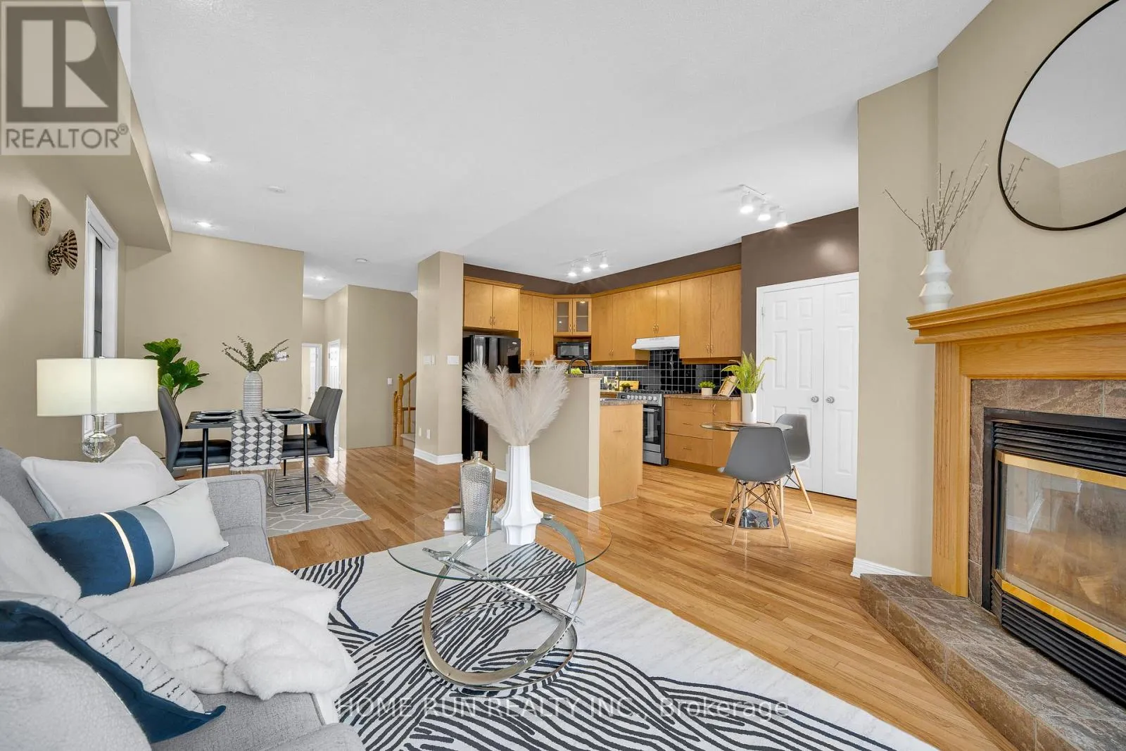 Cross Streets: Findlay Creek Dr. ** Directions: Findlay Creek Dr to Devonwood Cir. Welcome to this elegant 3-bedroom, 2.5-bathroom end-unit townhouse, situated in the highly desirable community of Findlay Creek. The home features hardwood flooring on both the main and second levels, complemented by 9-foot ceilings on the main floor and a conveniently located laundry room upstairs.The main level offers a versatile den/office, a spacious dining room, a modern kitchen, and an inviting living room complete with a cozy fireplace. A beautiful staircase leads to the second level, where you will find a generous primary suite with a walk-in closet and a private ensuite, along with two additional well-sized bedrooms and a full bathroom.The fully finished lower level includes a large recreation room, ideal for family gatherings or entertaining. Perfectly located near top-rated schools, shopping, parks, and scenic walking trails, this home is move-in ready and an exceptional opportunity. Additional highlights include an owned hot water tankno rental fees required. Dont miss your chance to call this property your new home. (id:27476)