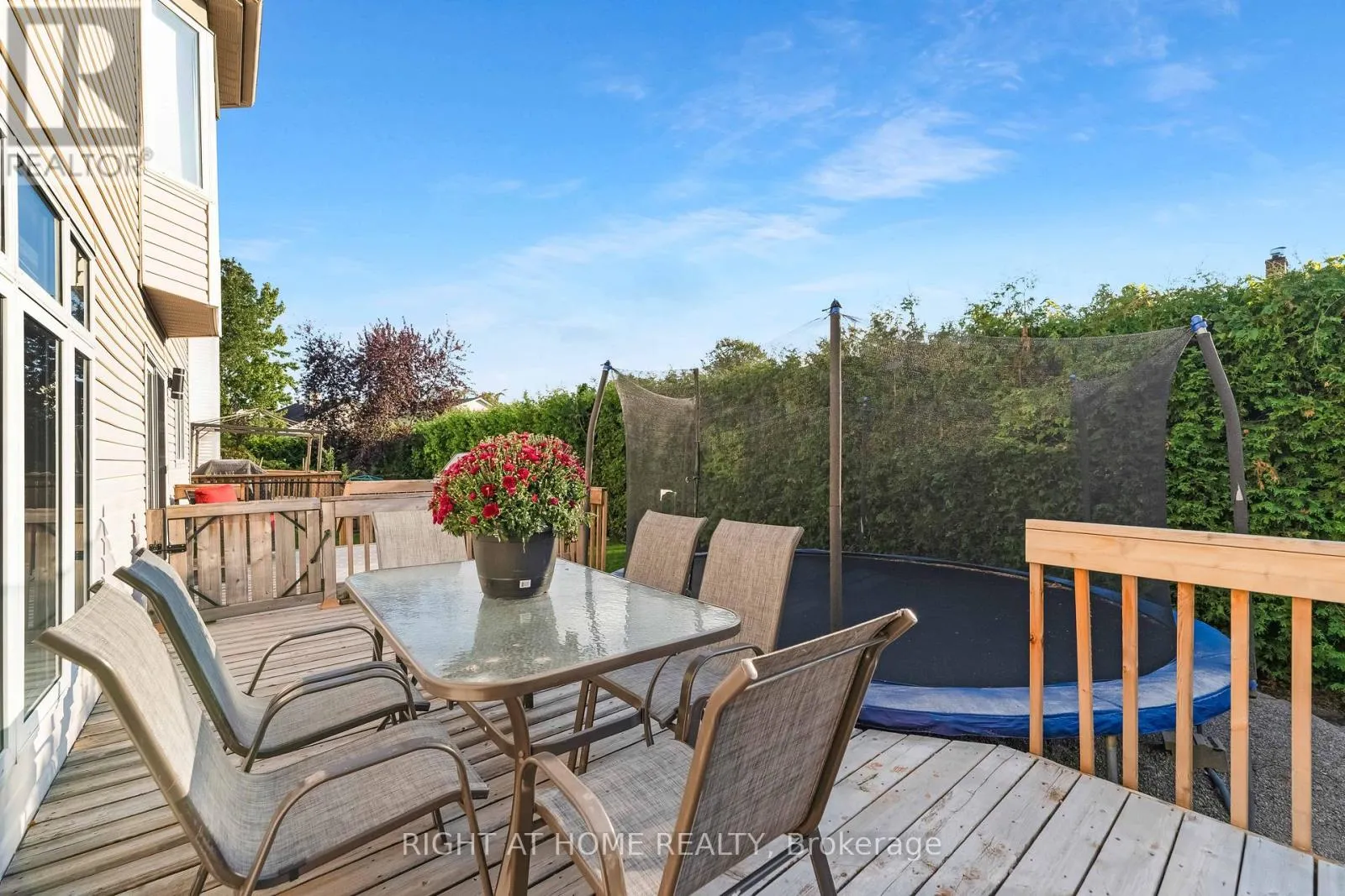 Cross Streets: Ravine Way & Eastport Dr. ** Directions: Jeanne-d'Arc Blvd to Voyageur Dr, Eastport Dr to Ravine Way, Right on Ravine Way. Fantastic opportunity to own in one of Orléans most desirable neighbourhoods! This home offers 4 large bedrooms, including a spacious master suite, and a main-floor office perfect for working from home. The open-concept kitchen with eat-in area overlooks the inviting family room, while a formal dining room provides space for entertaining. A custom mudroom with built-in cabinetry adds everyday convenience and style. The finished lower level expands your living space with a games room, gym, storage, laundry, and a TV room with room for a large sectional ideal for family gatherings or movie nights. Step outside to a private fenced backyard, where a mature cedar hedge creates a serene retreat. A spacious deck with wrap-around trampoline access is perfect for entertaining and outdoor fun. Practical and well-designed, this home also features a double car garage with room for two full-sized vehicles. Located within walking distance to transit, river bike paths, schools, shopping, and the future LRT station, it offers both comfort and unmatched convenience, all just a quick 10-minute drive to downtown Ottawa. Thoughtfully updated and move-in ready, this is a special opportunity in a highly desirable community. (id:27476)
