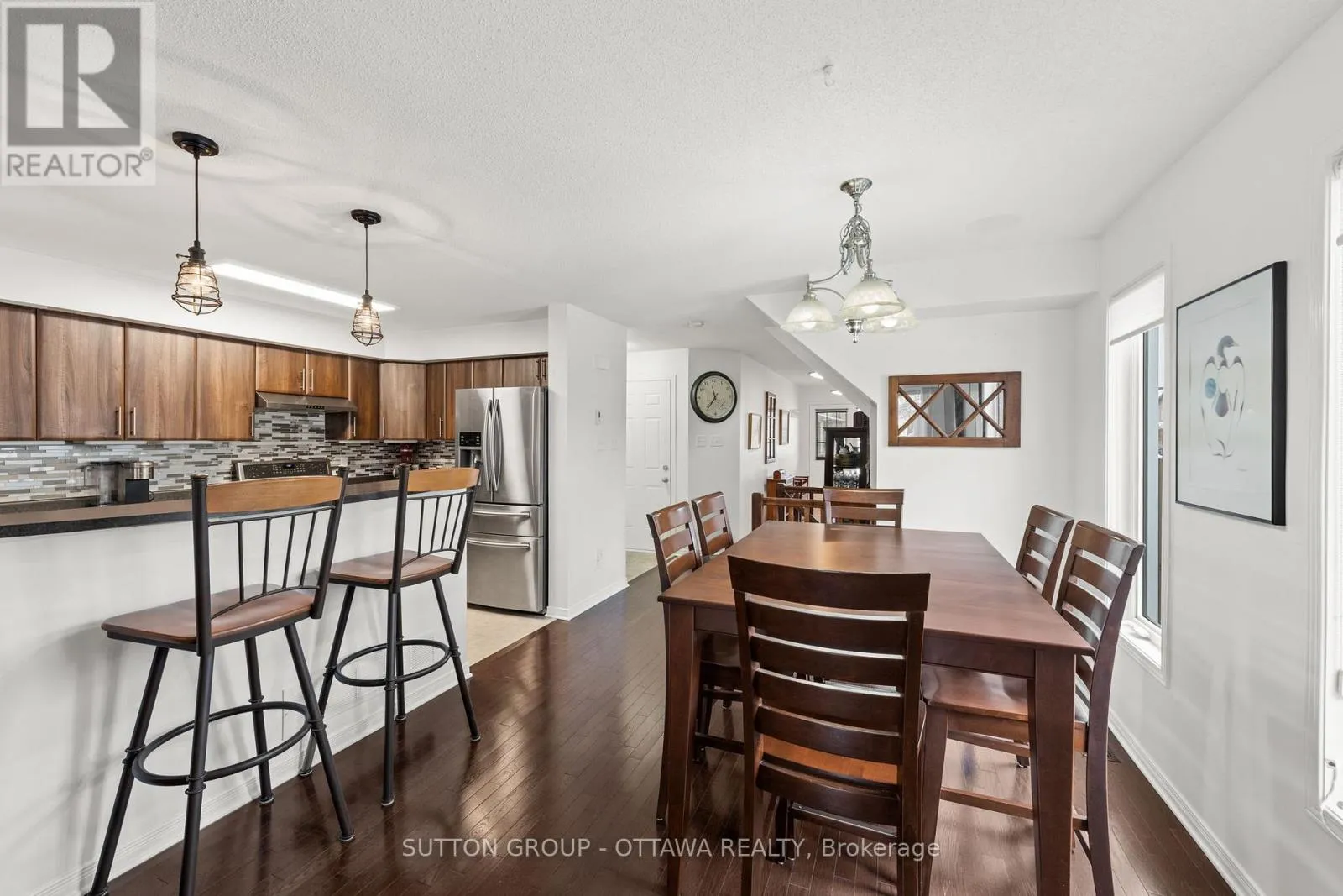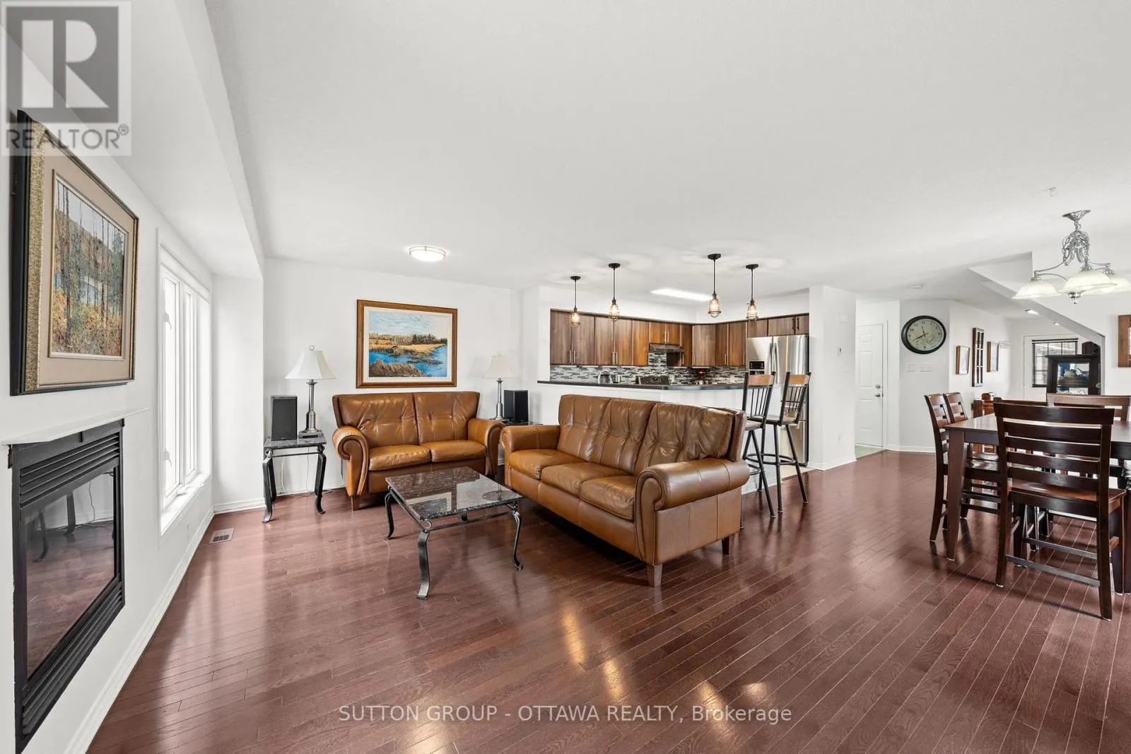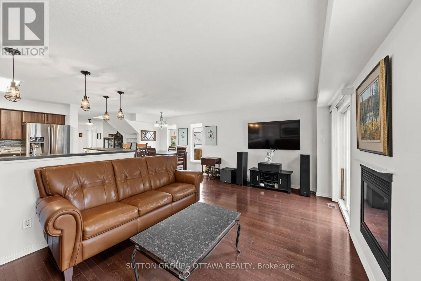 Cross Streets: Vision Street and Summerhill Street. ** Directions: From the Vimy Memorial Bridge turn right onto River Road, then left onto Summerhill Street, then your first right onto Vision Street. Sophisticated and sun-filled 3-bedroom, 4-bathroom end unit townhome ideally positioned on a premium corner lot in sought-after Riverside South. The largest of the Claridge models, it offers approximately 2,270 sq. ft. of thoughtfully designed living space that blends elegance with everyday functionality. A newly paved driveway (2024) and interlock walkway create a refined first impression, providing parking for up to four vehicles. Inside, the main level showcases hardwood and tile flooring and a bright, open-concept kitchen and under-cabinet lighting, stainless steel appliances, and a walk-in pantry (2017). Elegant lighting highlights the dining area, while a raised gas fireplace anchors the inviting living room-perfect for relaxing evenings at home. Main level also includes 4 ceiling speakers. Upstairs features soft broadloom, a convenient laundry room, and three generous bedrooms. The primary suite offers a walk-in closet and a luxurious ensuite with upgraded tile and fixtures. Secondary bedrooms share a tastefully updated, main bath designed with modern materials and thoughtful detail. The fully finished lower level adds exceptional living space with a large recreation room, full 3-piece bath (2021), and ample storage. It's wired for ceiling surround sound speakers and includes electric baseboard heaters, ideal for a media room, gym, or guest retreat. Notable updates: John Wood Proline 60-gal hot water tank (2024, owned), Goodman furnace (2017), rear deck (2018, fully permitted), natural gas BBQ line (2019), fencing (2020 & 2023), upgraded toilets (2018), patio stone walkway (2019), and gutter drainage to dry wells (2019). An impeccably maintained, move-in-ready home just minutes from Claudette Cain Park and the future Riverside South LRT Station-a perfect blend of comfort, quality, and location. (id:27476)